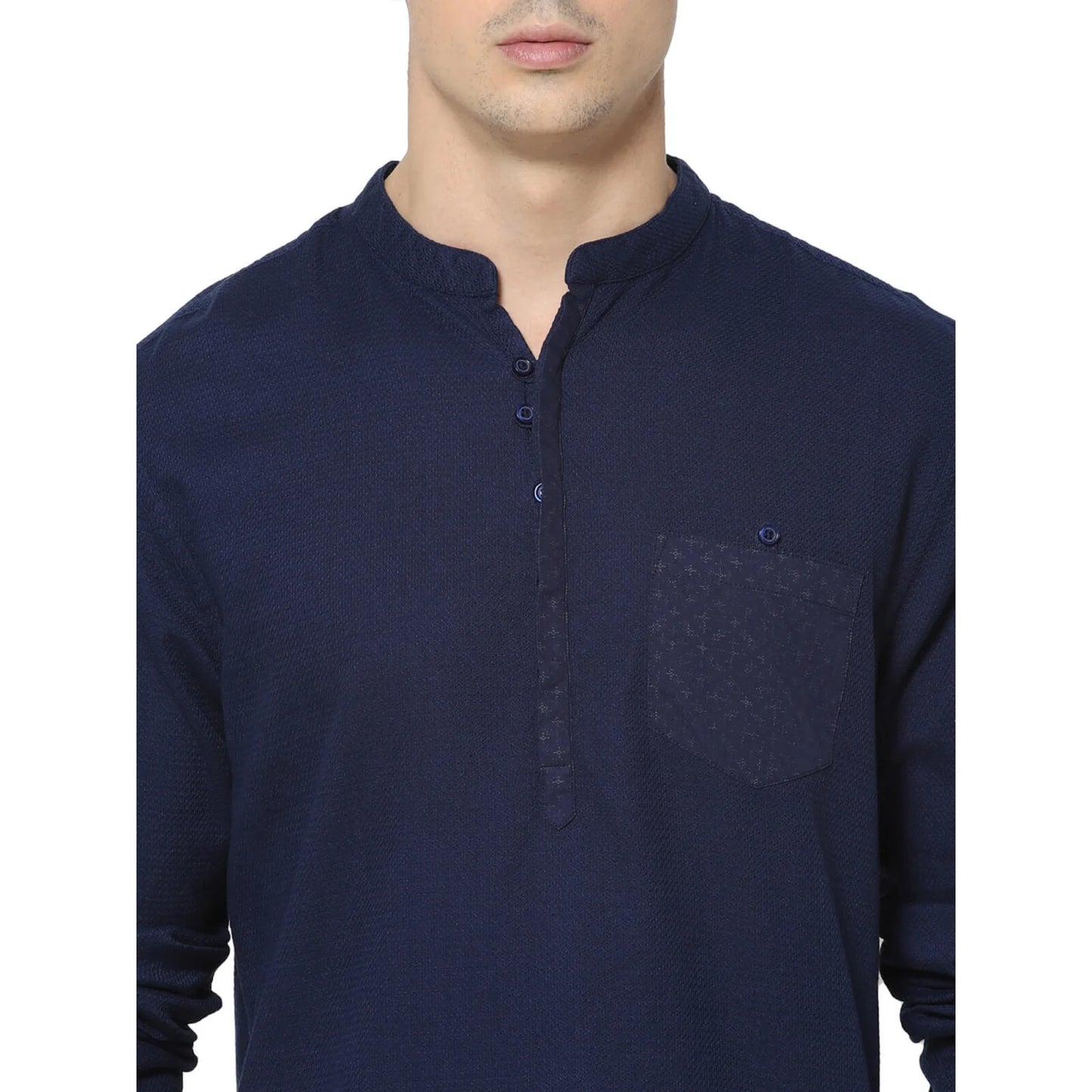 Celio* Textured Regular Fit Cotton Navy Blue Shirt