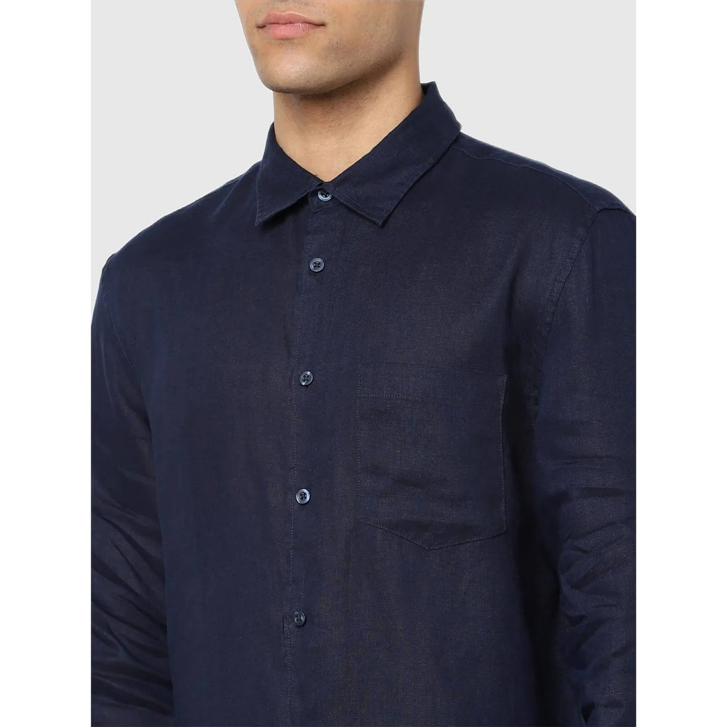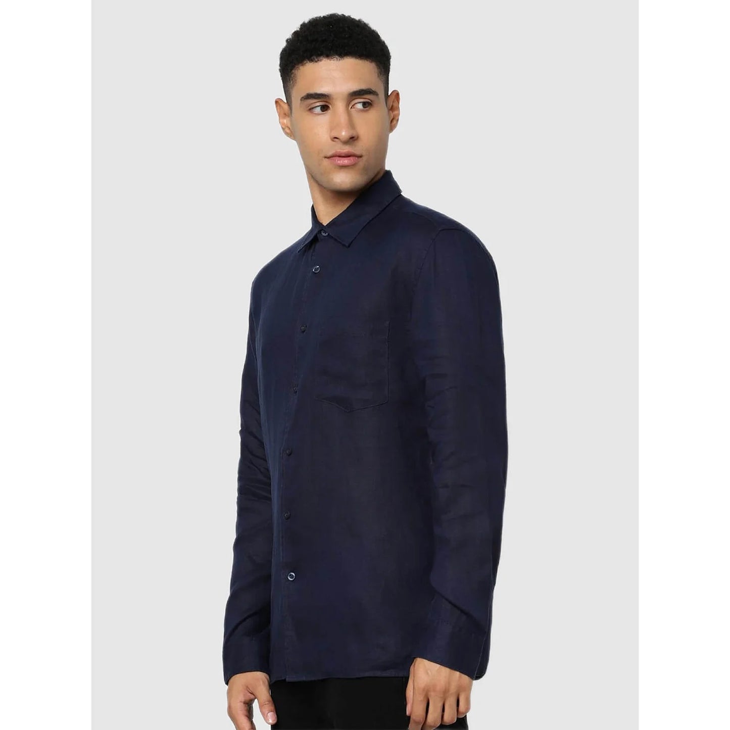 Celio* Solid Regular Fit Linen Navy Blue Shirt