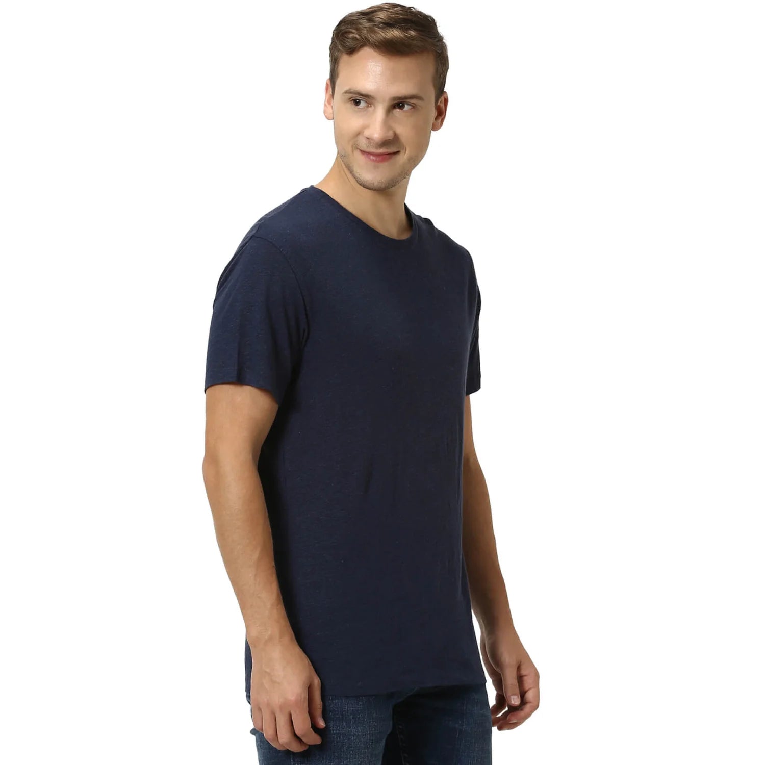 Celio* Solid Regular Fit Linen Navy Blue T-Shirt