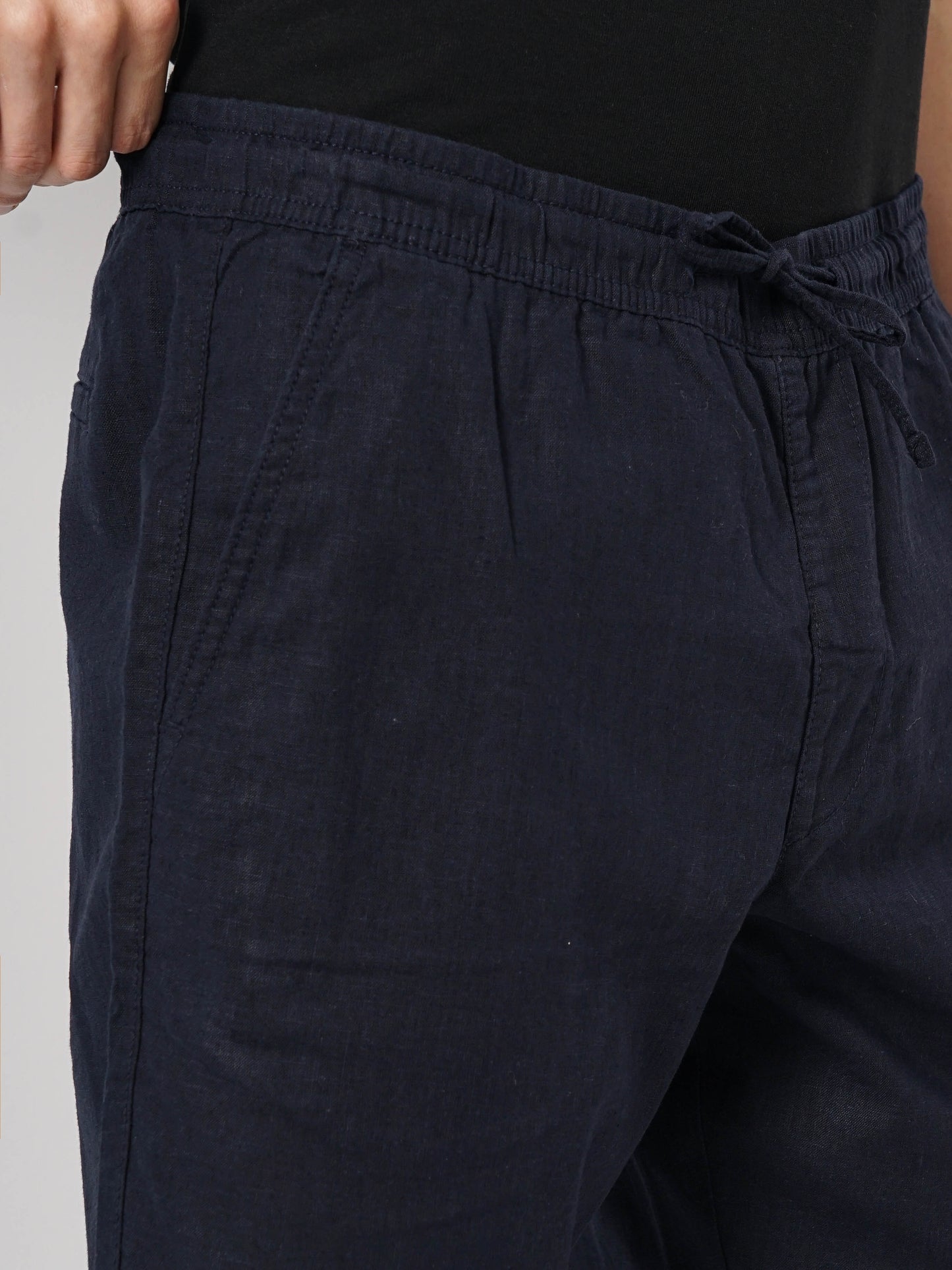 Explore comfort in the Celio Men Solid Loose Fit Linen Casual Shorts. Crafted from breathable linen, these Navy Blue shorts are perfect for casual occasions. Disclaimer: All other items in the image are only for display purposes and will not be a part of the delivery content. Product colour may slightly vary due to photographic lighting sources. Country of Origin - India.