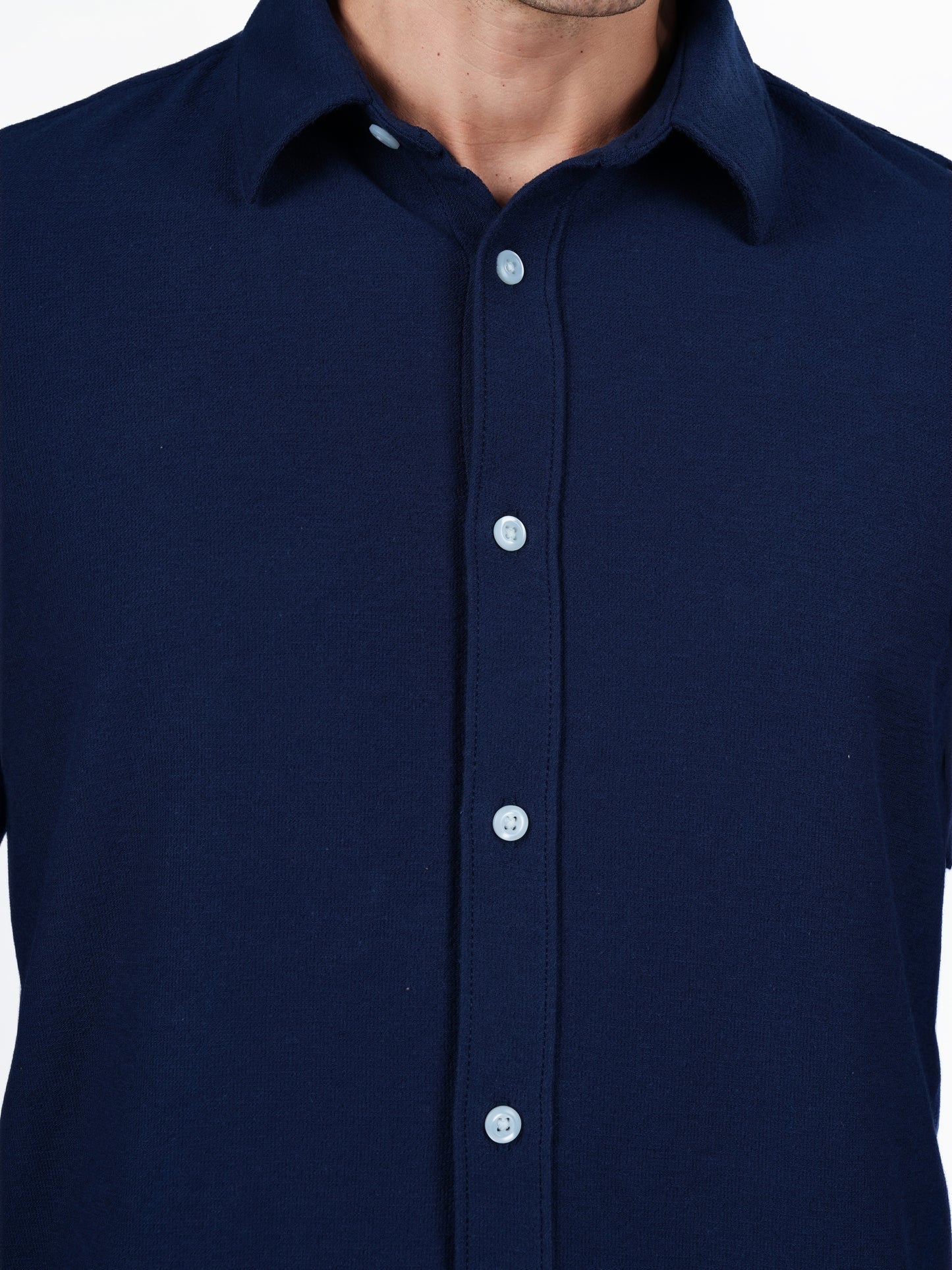 Celio* Solid Regular Fit Poly-Cotton Navy Blue Shirts