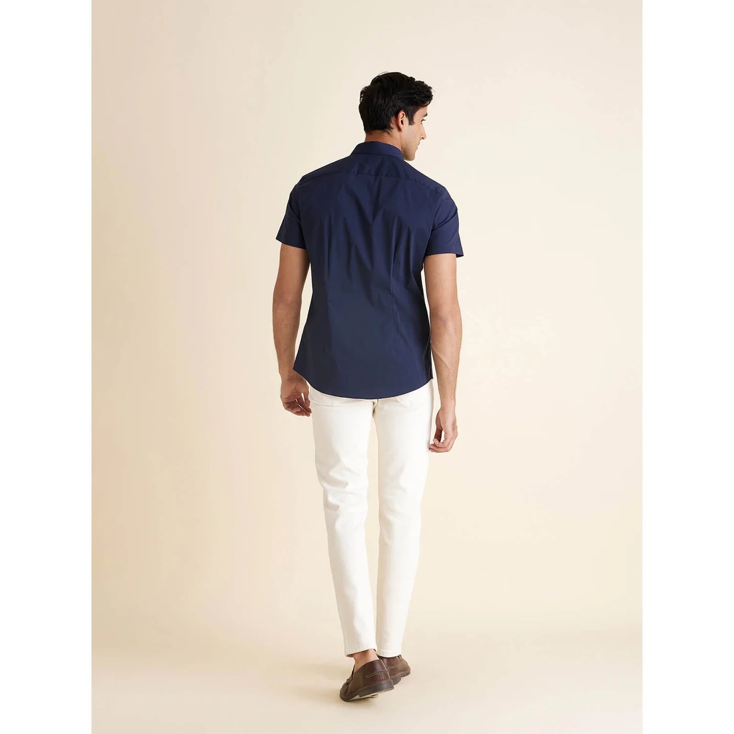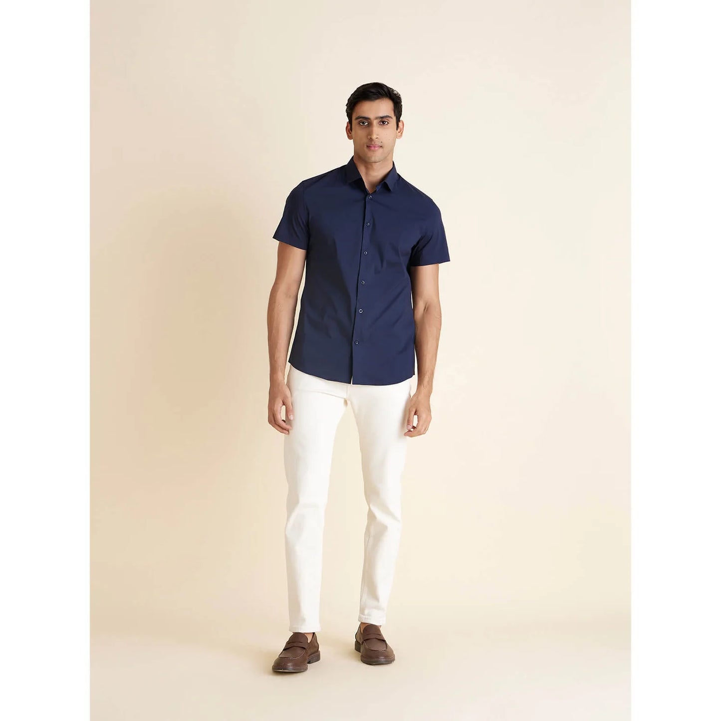Elevate your casual wardrobe with the Celio Men Solid Blue Short Sleeve Shirt. This navy blue, polycotton shirt offers comfort and style for every casual occasion. Disclaimer: All other items in the image are only for display purposes and will not be a part of the delivery content. Product colour may slightly vary due to photographic lighting sources. Country of Origin - India.