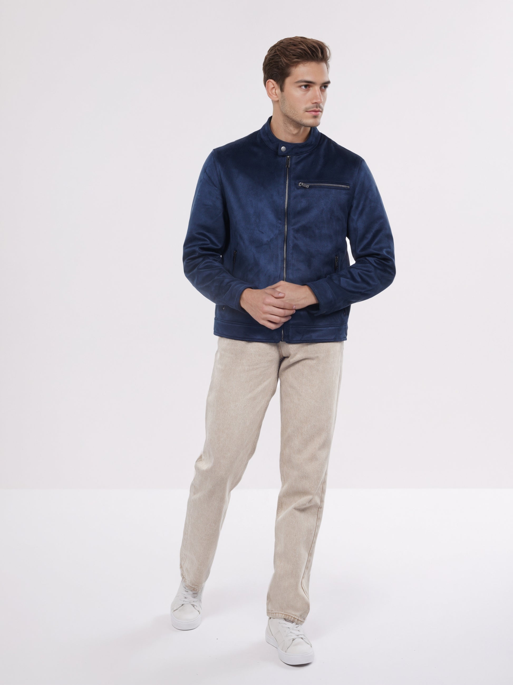 Shop the Celio Men Navy Blue Solid Regular Fit Jacket, crafted from durable polyester. Perfect for casual outings, it features long sleeves for added comfort and style. Disclaimer: All other items in the image are only for display purposes and will not be a part of the delivery content. Product colour may slightly vary due to photographic lighting sources. Country of Origin - India.