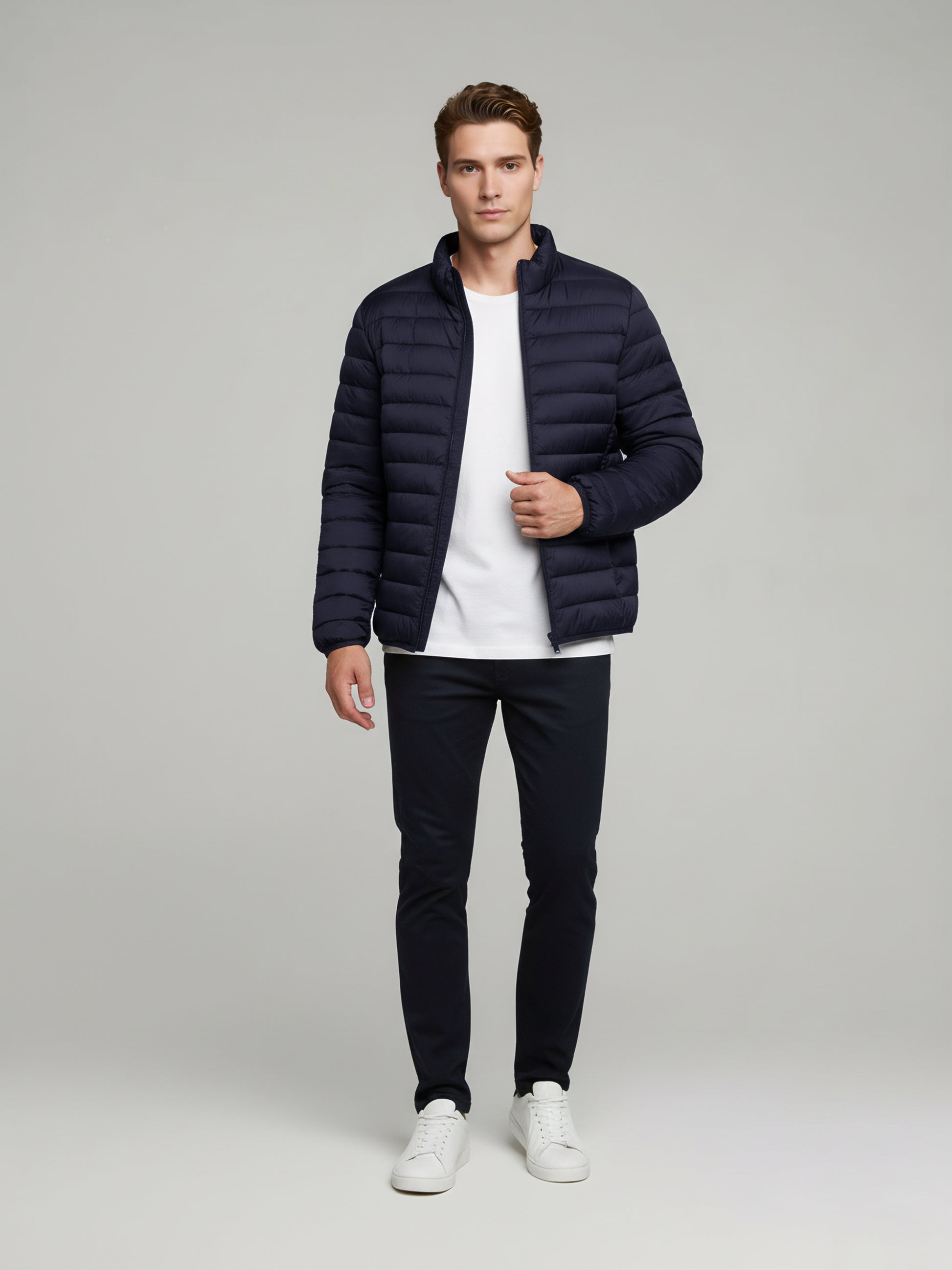 Discover the Celio Men Navy Blue Jacket, crafted from durable polyester. This regular fit design features long sleeves, perfect for casual occasions. Disclaimer: All other items in the image are only for display purposes and will not be a part of the delivery content. Product colour may slightly vary due to photographic lighting sources. Country of Origin - India.