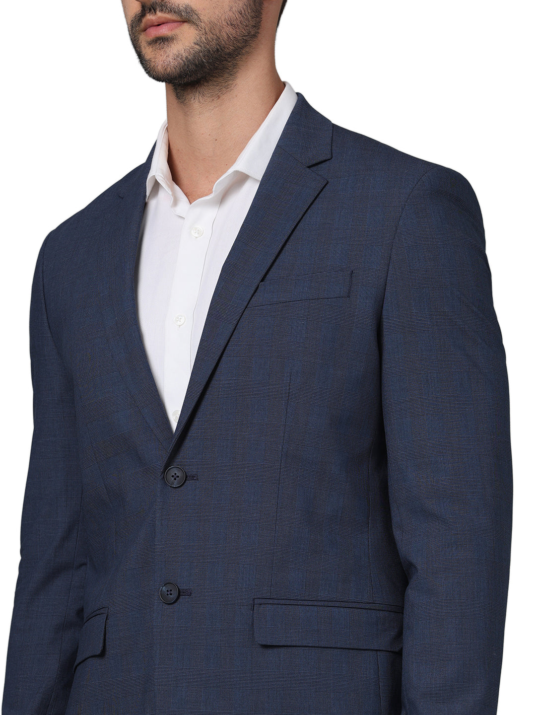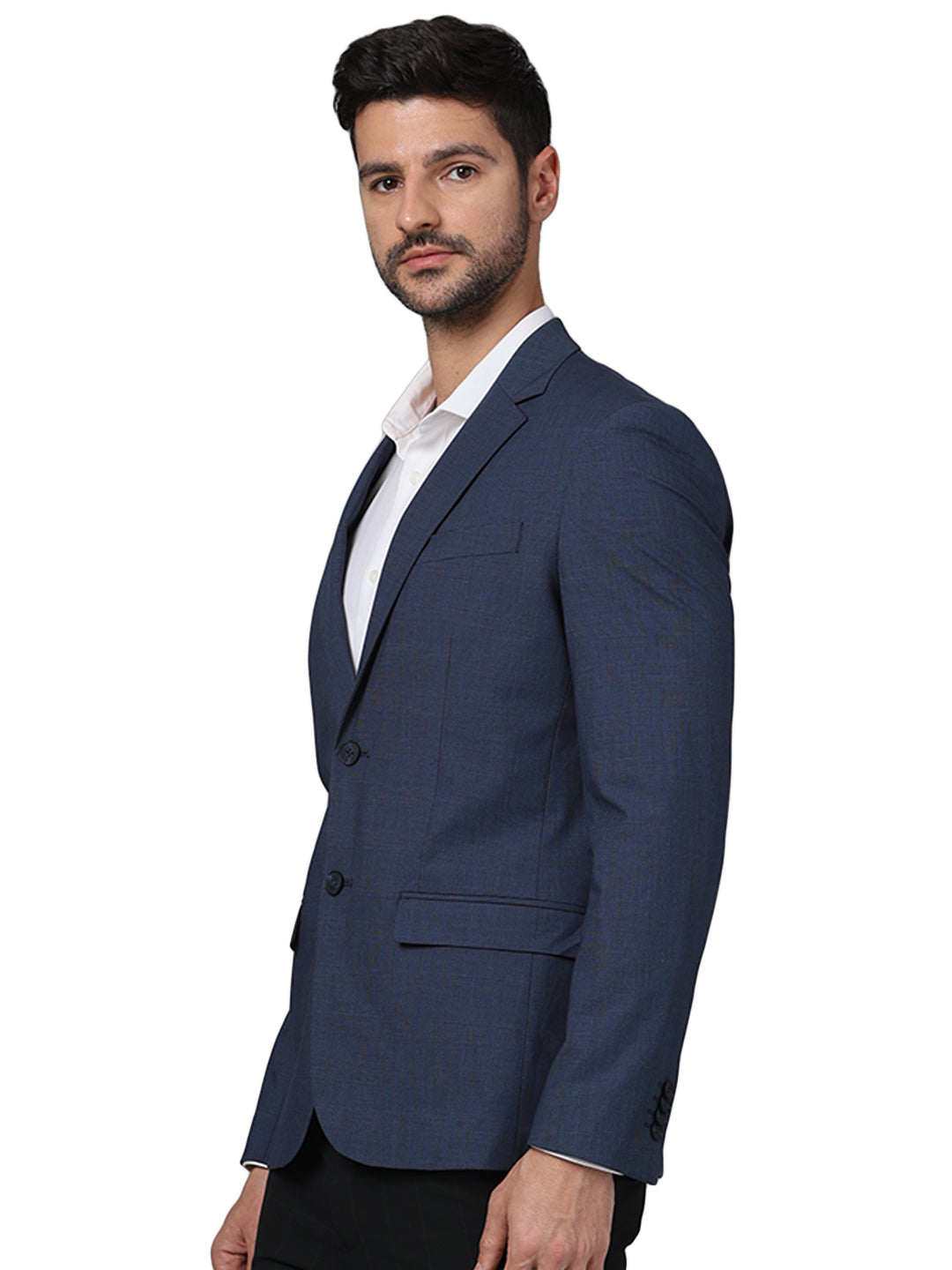 Celio* Solid Slim Fit Polyester Navy Blue Blazer