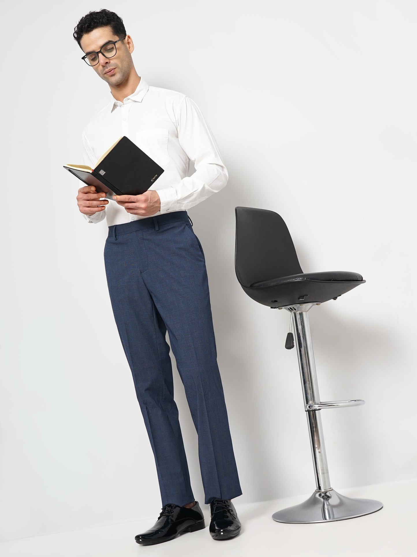 Celio* Formal Polyester Slim Fit Navy Blue Trouser