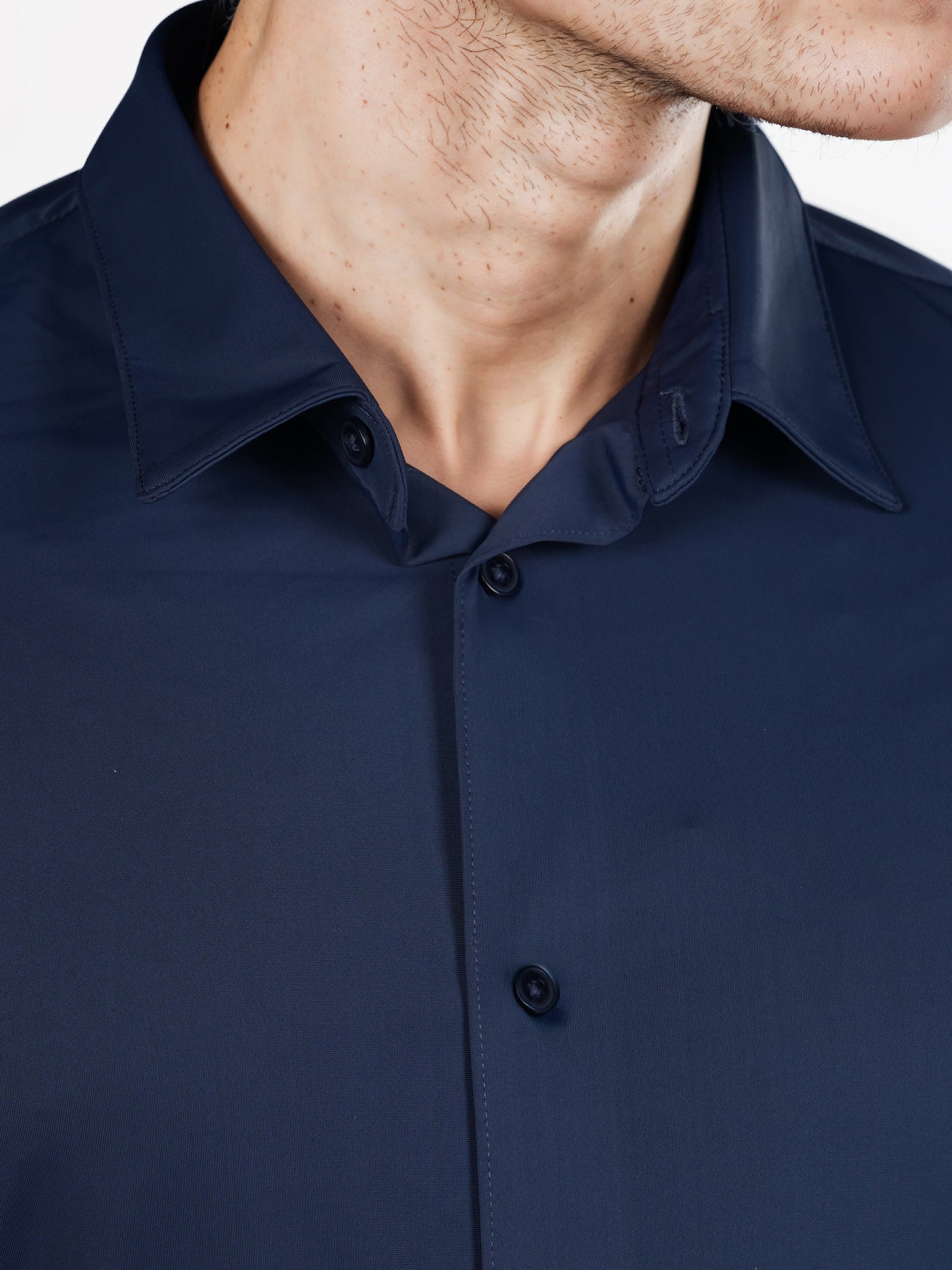 Celio* Solid Slim Fit Polyester-Blend Navy Blue Shirts