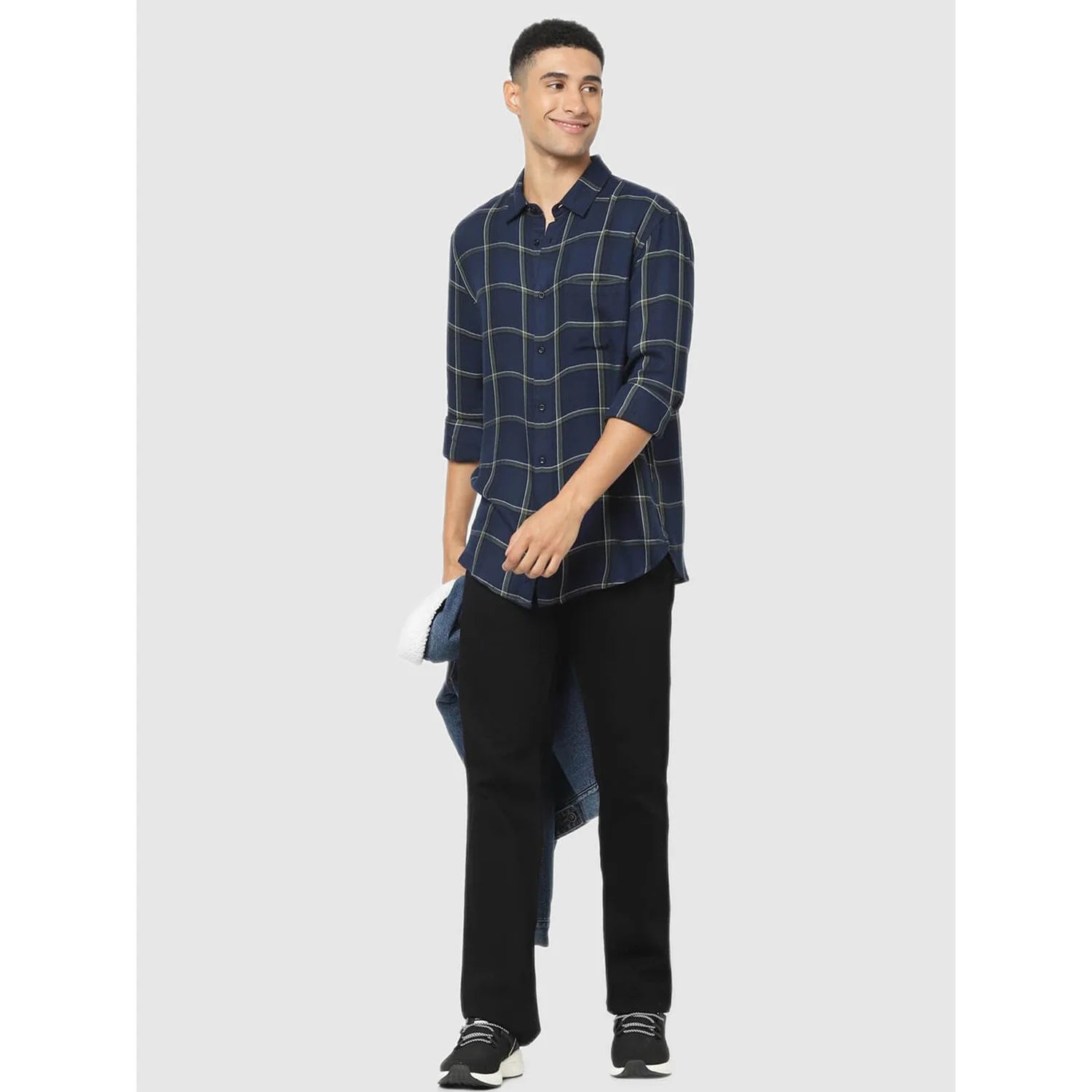 Celio* Checked Regular Fit Viscose Navy Blue Shirt