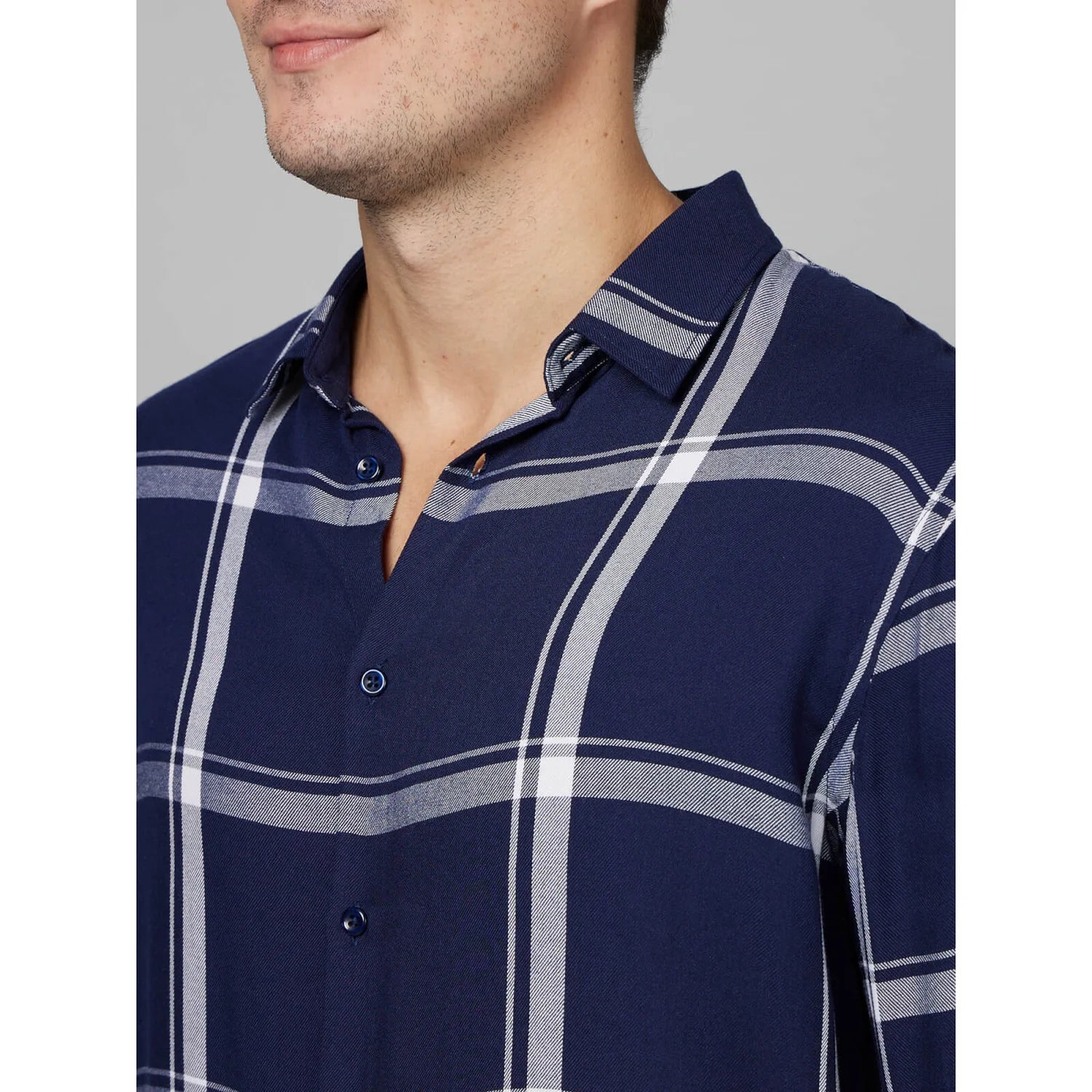 Celio* Checked Regular Fit Viscose Navy Blue Shirt