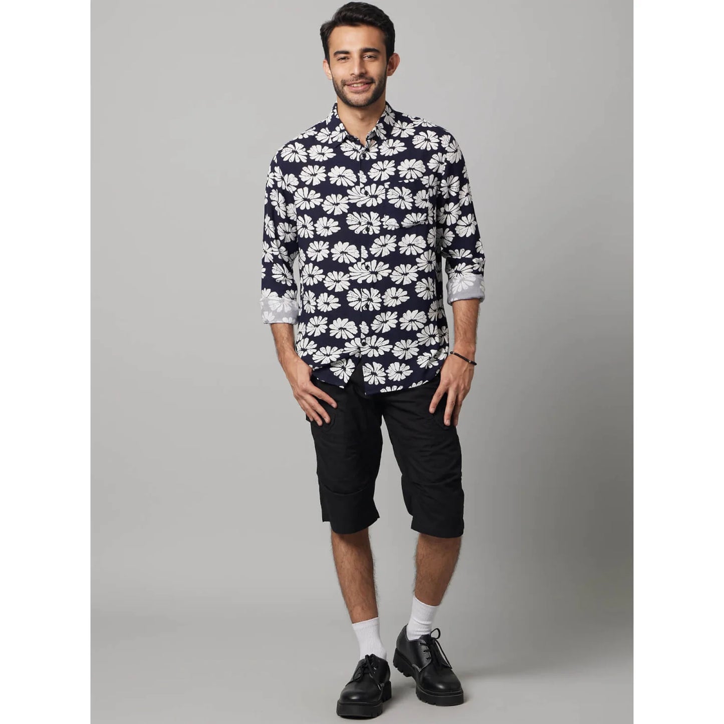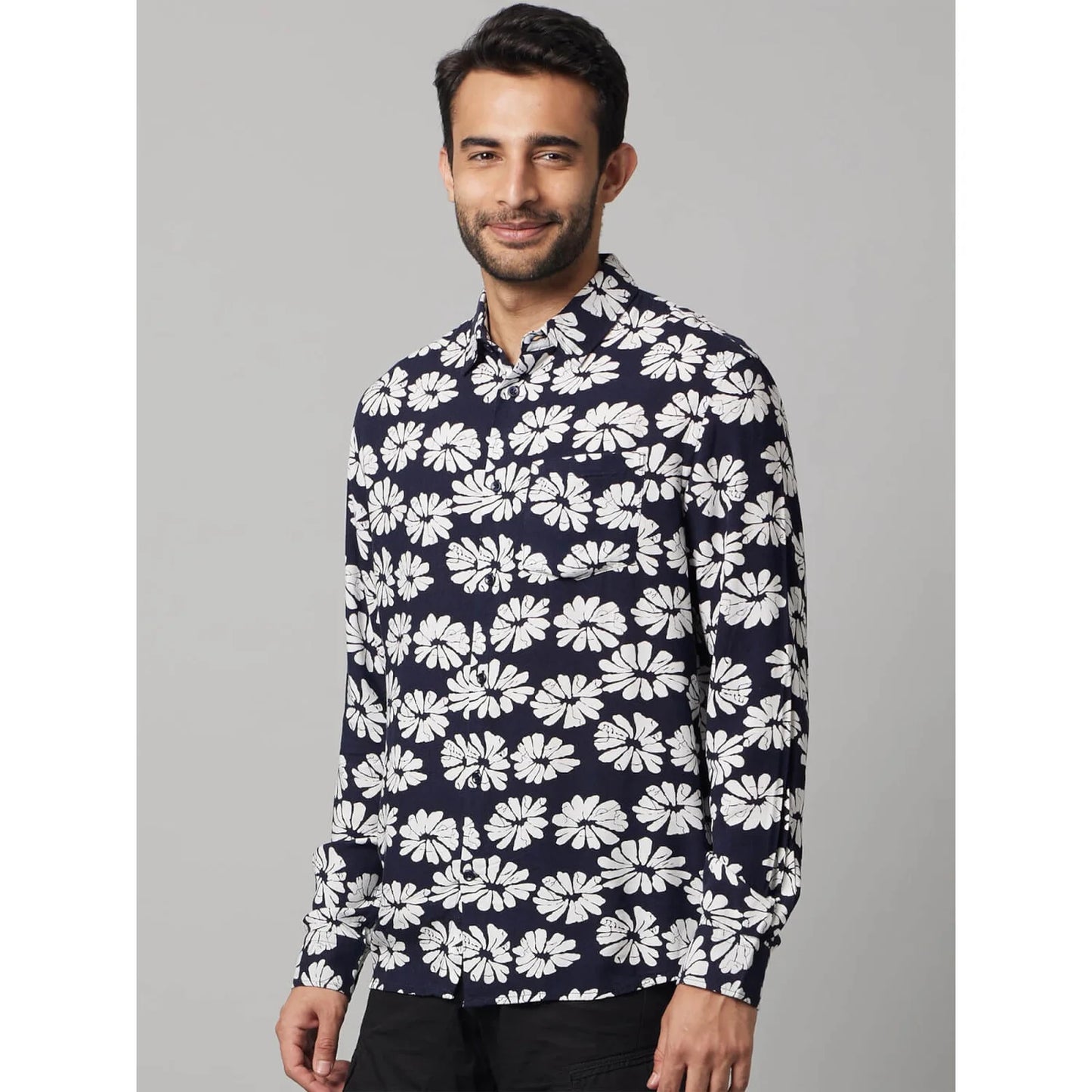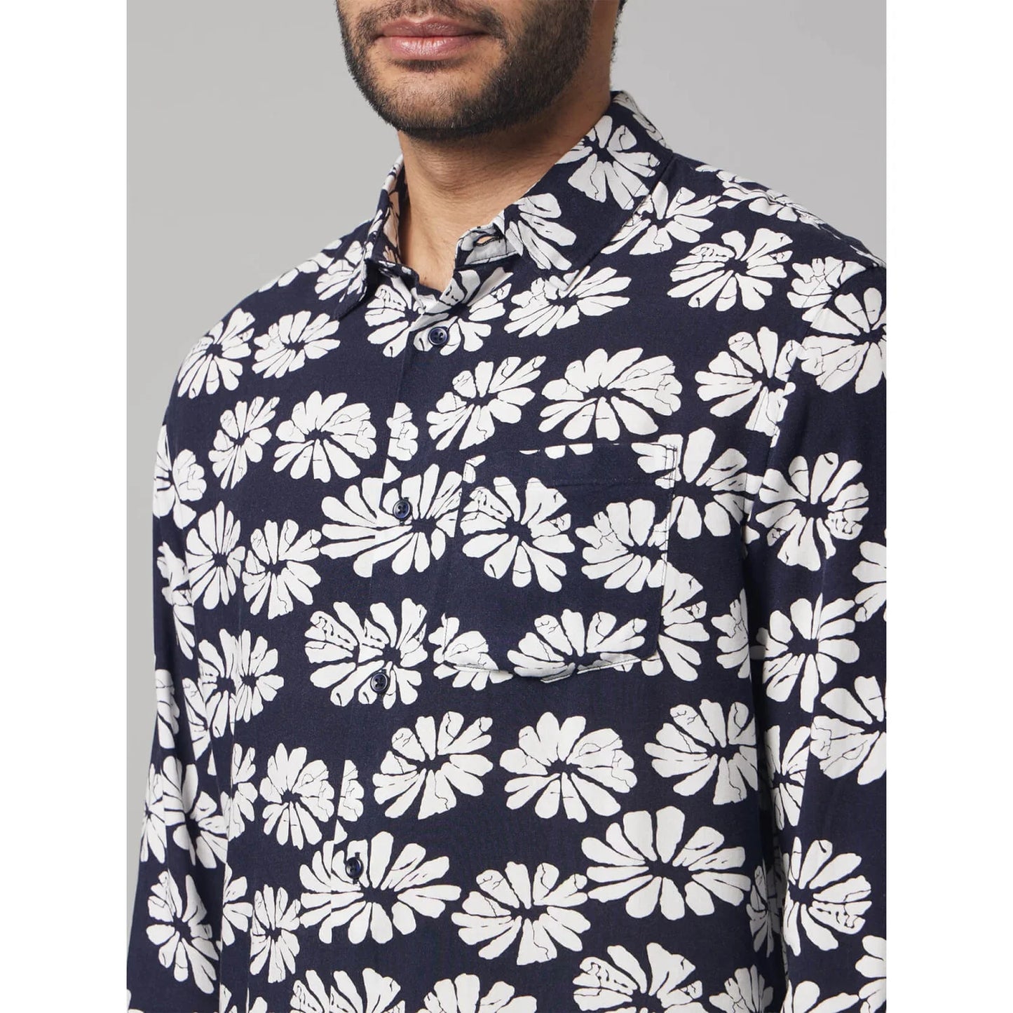 Celio* Floral Regular Fit Viscose Navy Blue Shirt