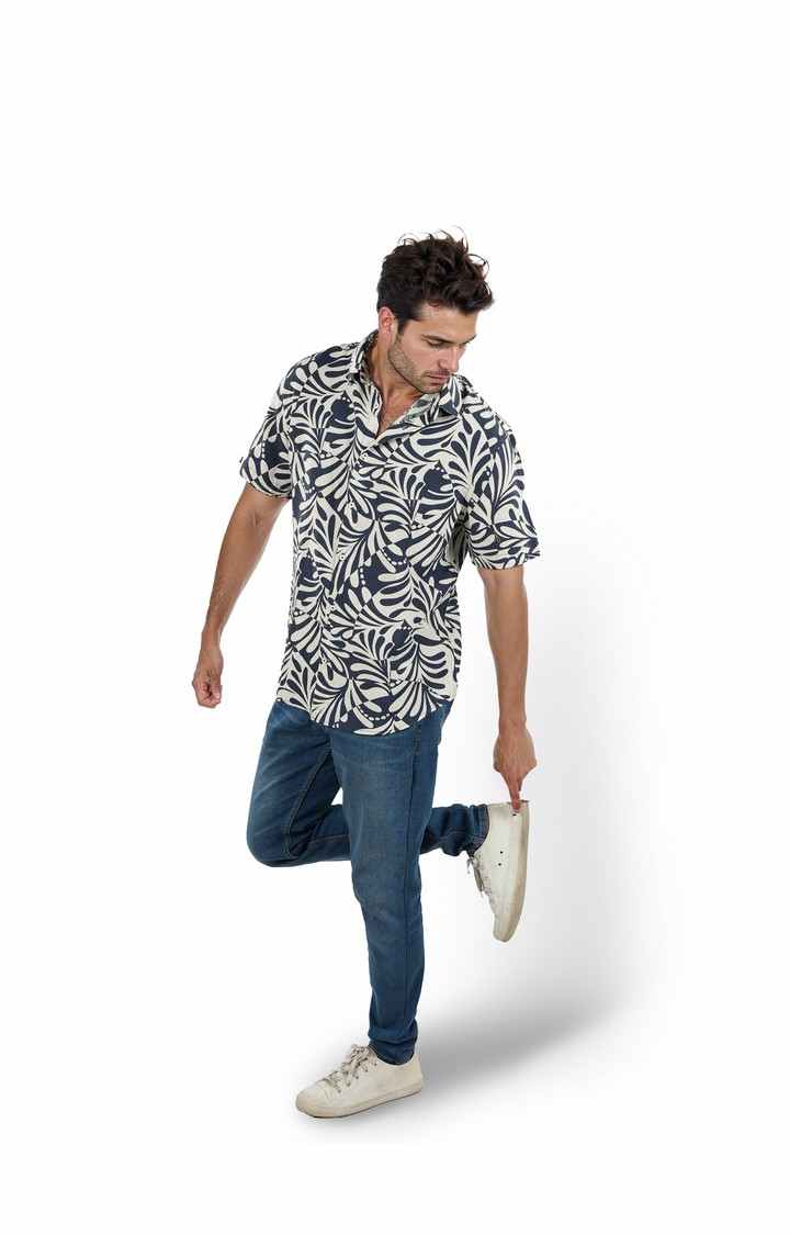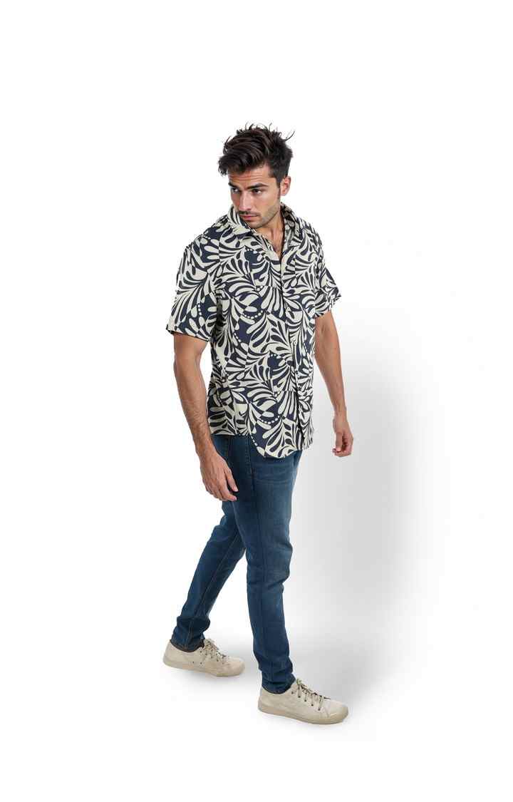 Elevate your casual wardrobe with this navy blue printed short sleeve shirt from Celio. Made from soft viscose rayon, it offers a comfortable regular fit for any occasion. Disclaimer: All other items in the image are only for display purposes and will not be a part of the delivery content. Product colour may slightly vary due to photographic lighting sources. Country of Origin - India.