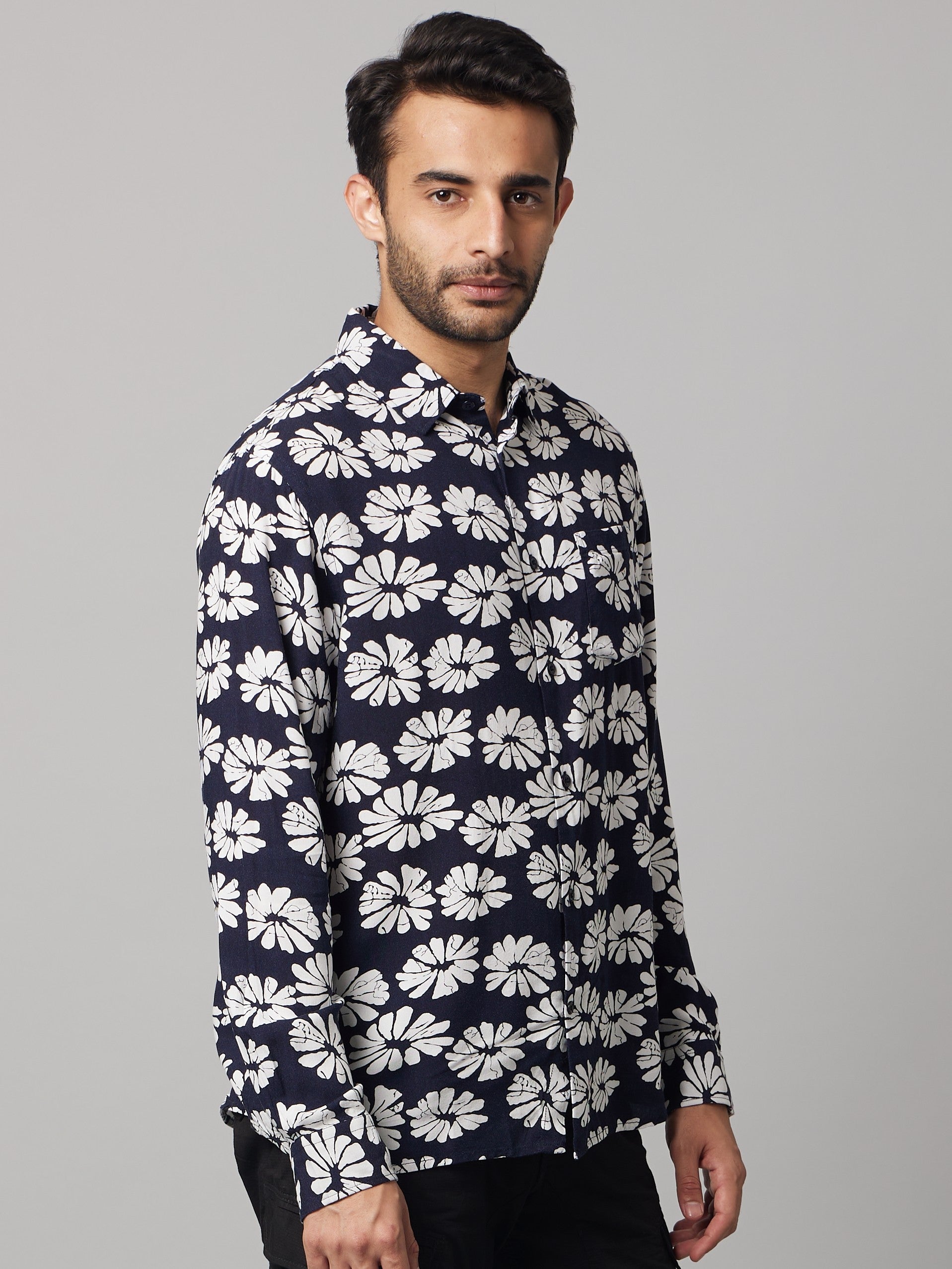 Celio Men Navy Blue Printed Regular Fit Viscose Shirts