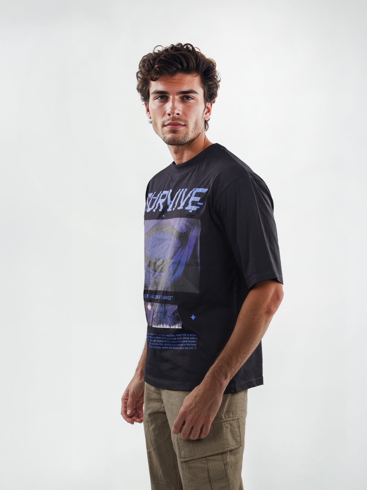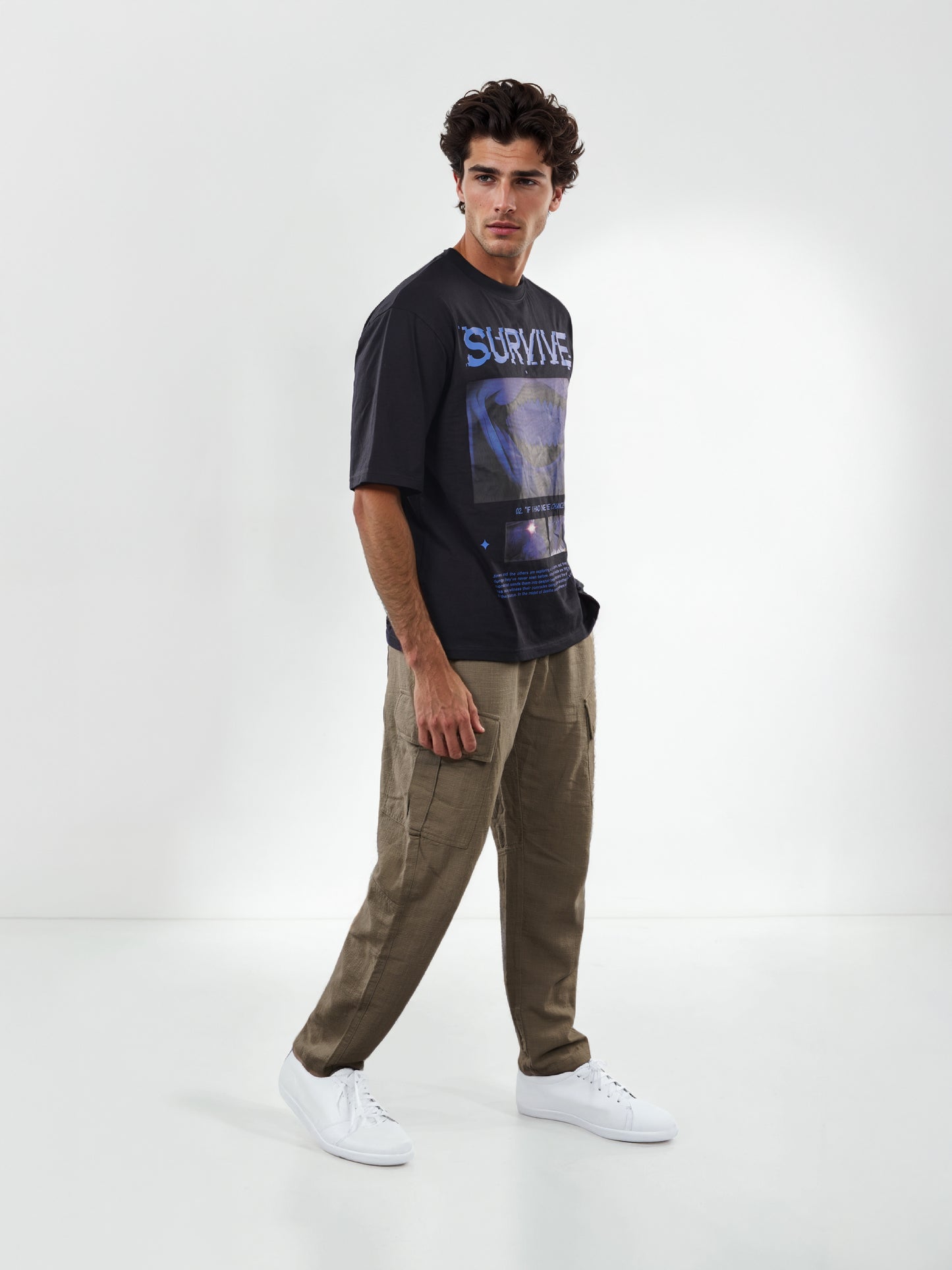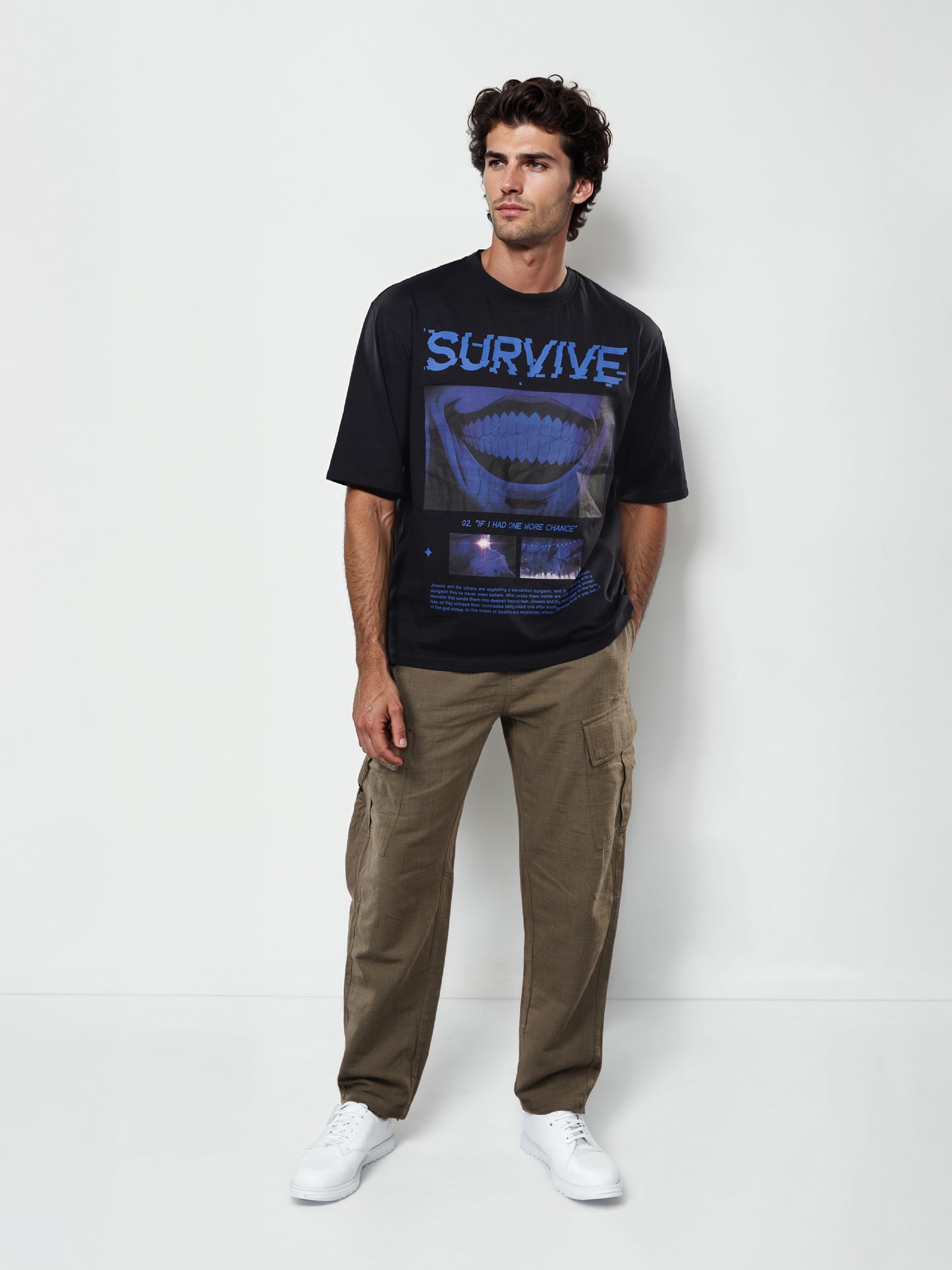 Celio* Men Noir Printed Oversized Cotton Solo Levelling Tshirts