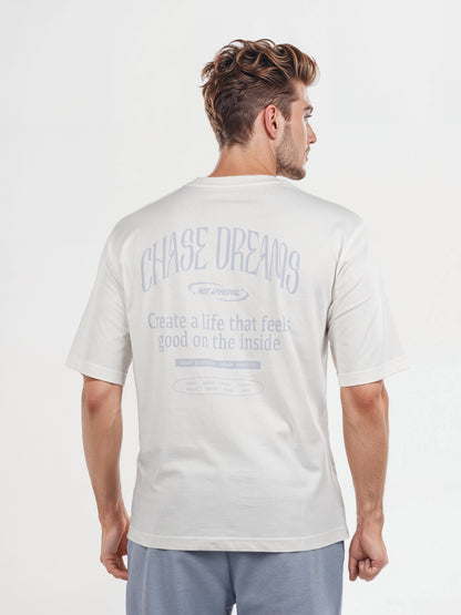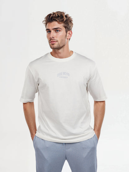 Celio* Printed Oversized Cotton Off White T-Shirts