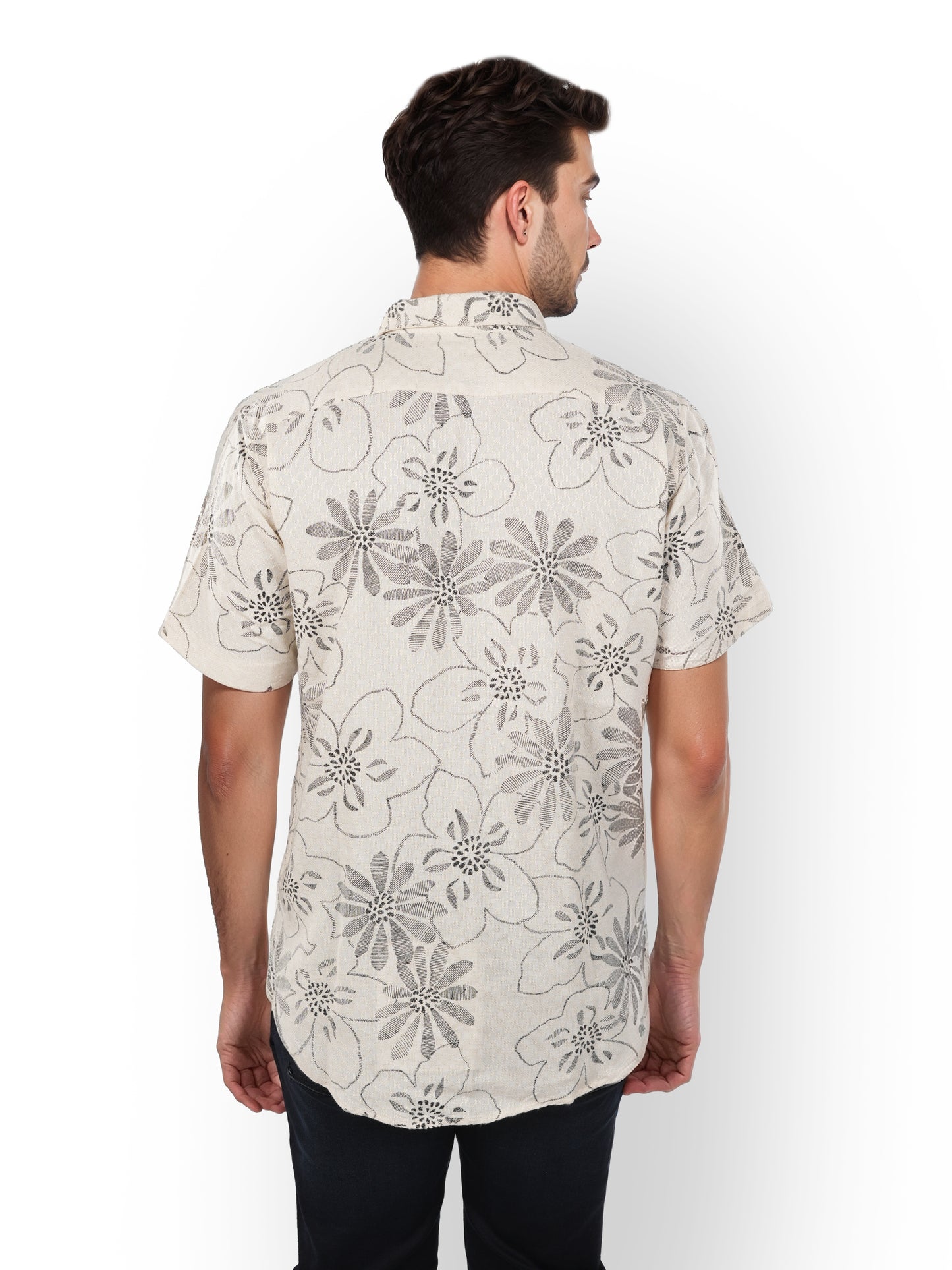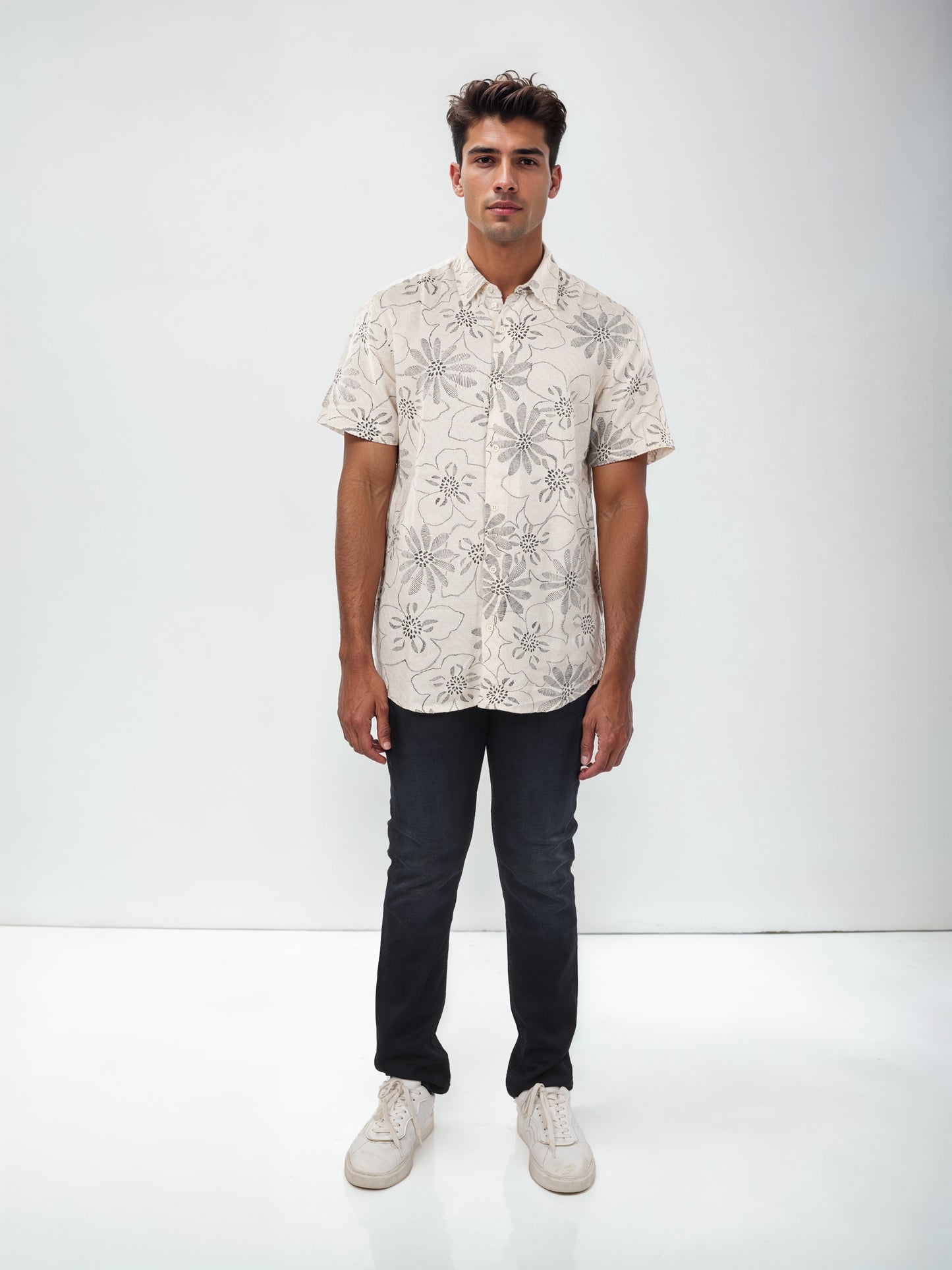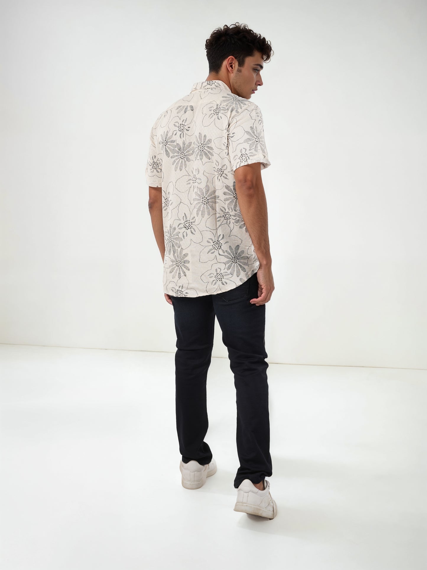 Celio* Printed Regular Fit Cotton Off White Shirt