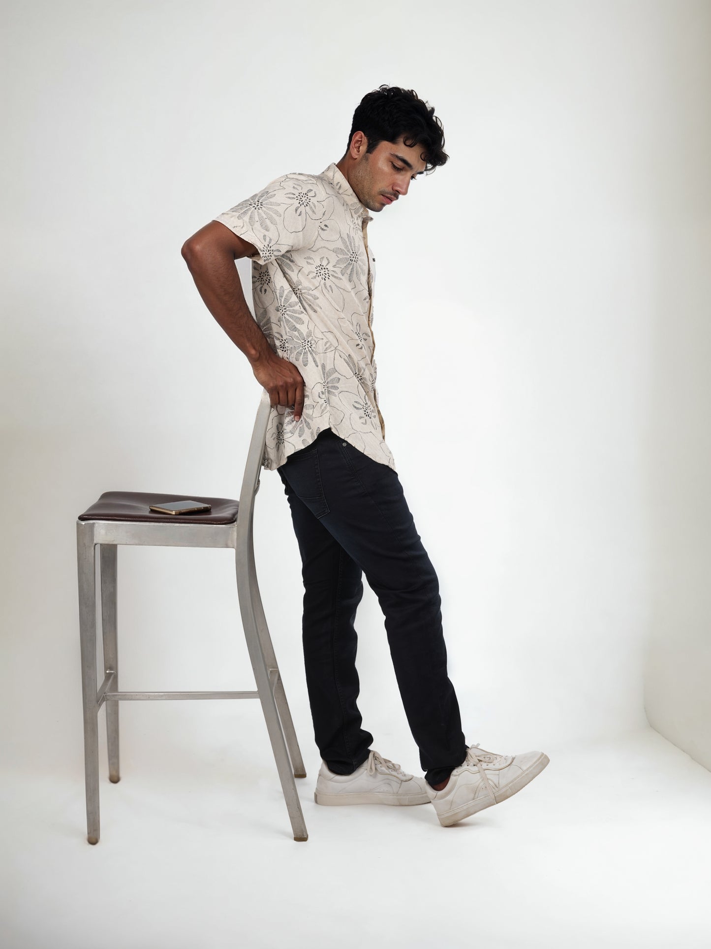 Elevate your casual wardrobe with this Men Off White Spread Collar Shirt by Celio. Crafted from soft touch cotton, it features short sleeves, perfect for relaxed outings. Disclaimer: All other items in the image are only for display purposes and will not be a part of the delivery content. Product colour may slightly vary due to photographic lighting sources. Country of Origin - India.