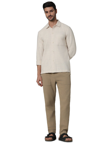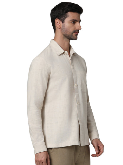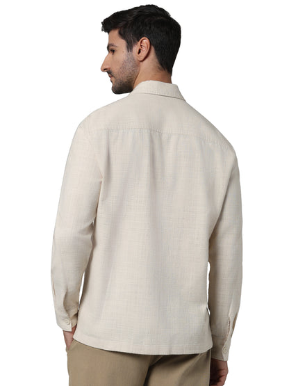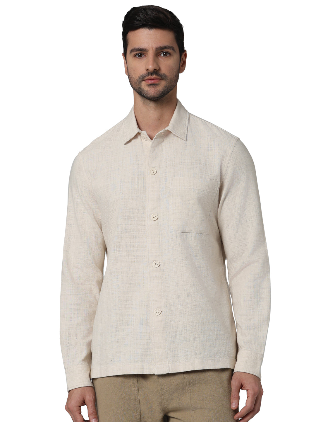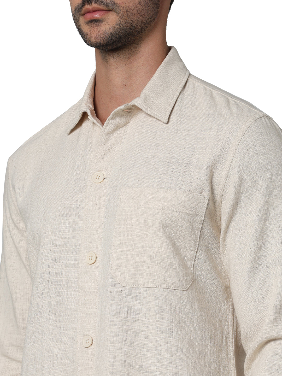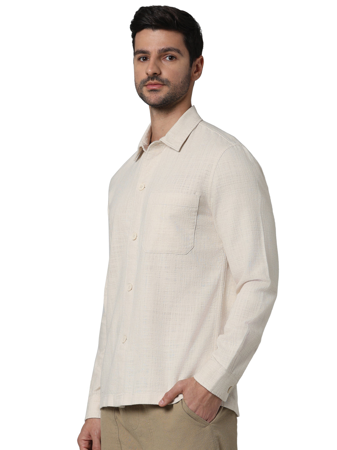 Elevate your casual style with the Celio Men Off White Spread Collar Oversized Cotton Shirt. Featuring long sleeves and a French collar, it's perfect for any relaxed occasion. Disclaimer: All other items in the image are only for display purposes and will not be a part of the delivery content. Product colour may slightly vary due to photographic lighting sources. Country of Origin - India.