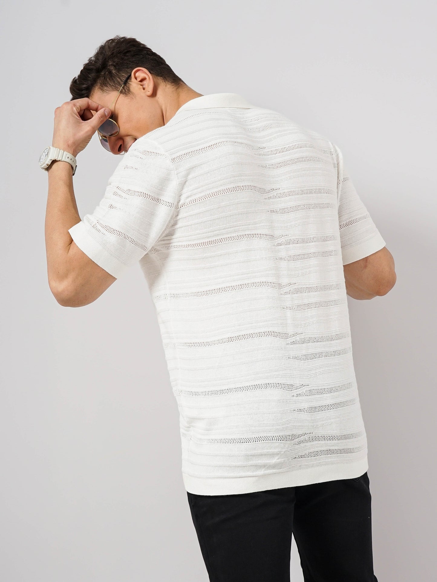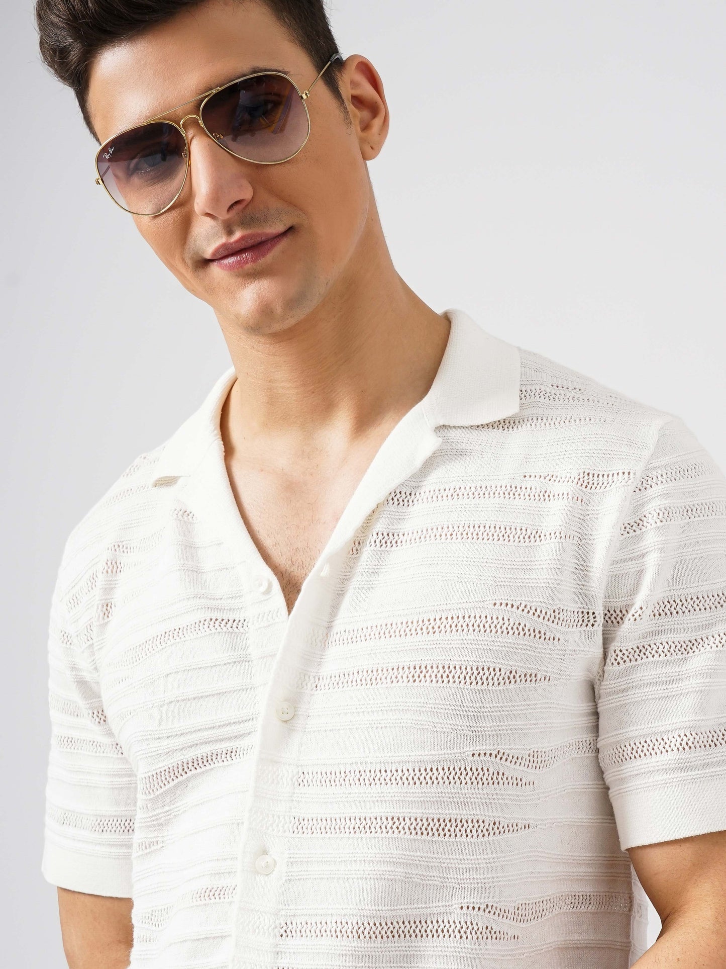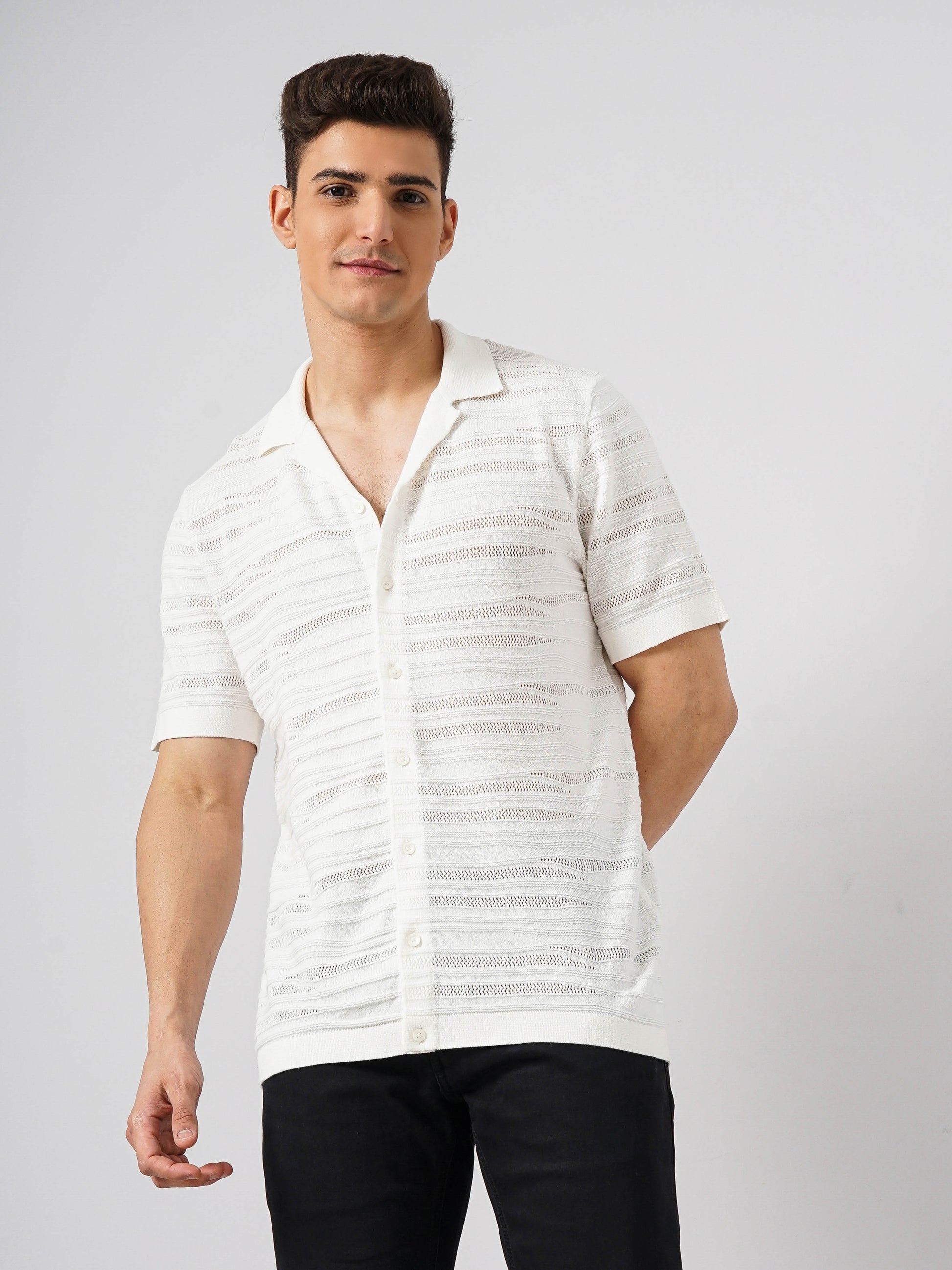 Celio* Solid Regular Fit Cotton Off White Shirt