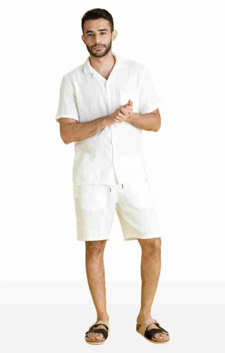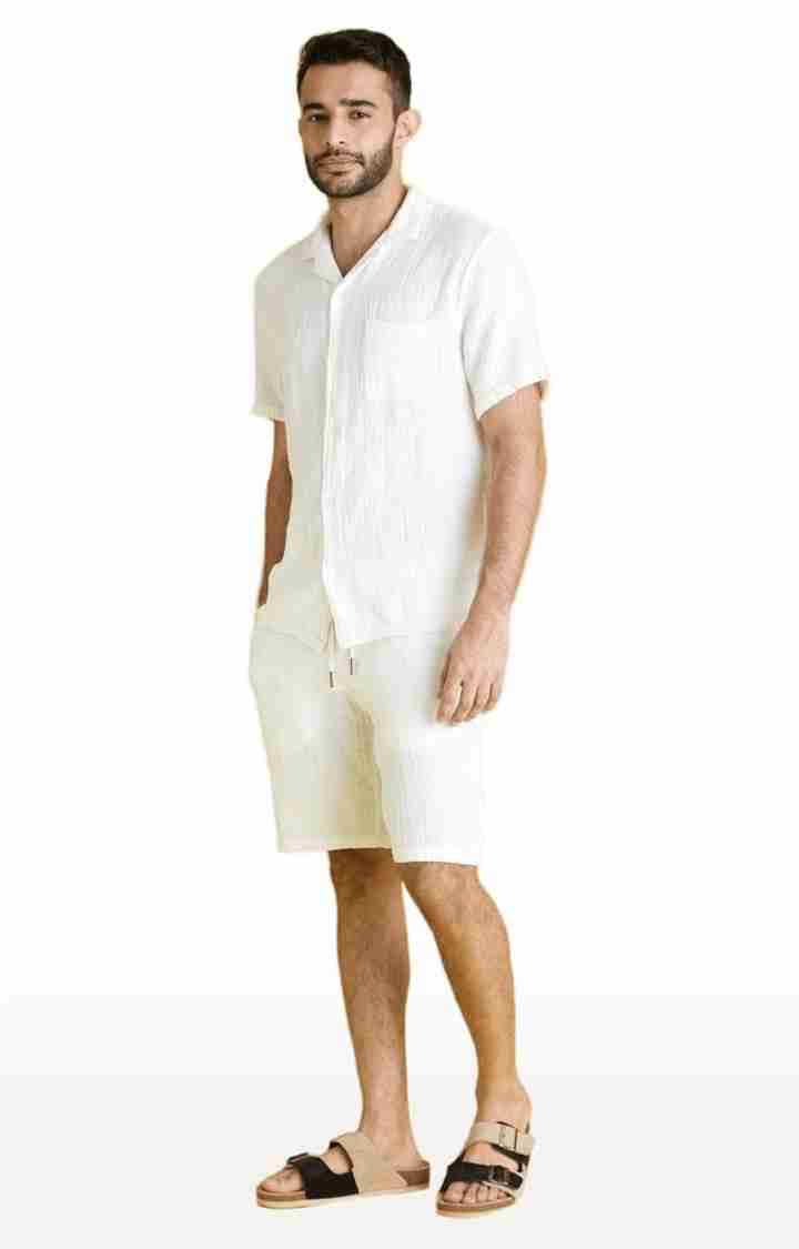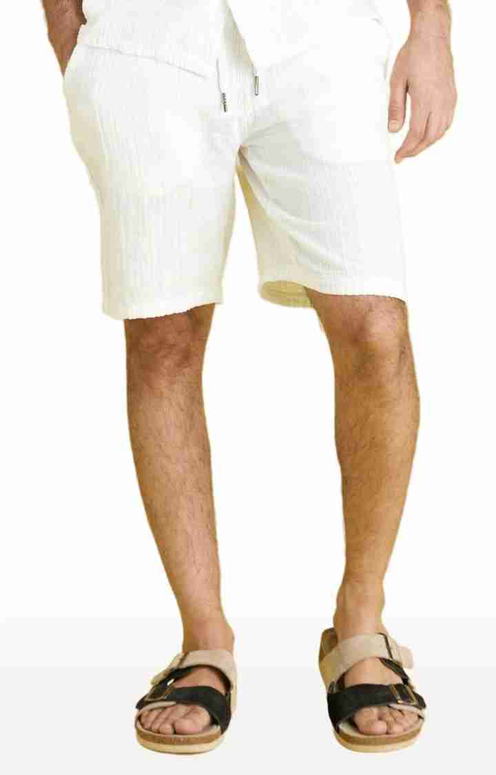 Explore comfort with Celio Men Solid Off-White Shorts. Crafted from soft cotton, these casual shorts are perfect for laid-back outings, offering a stylish touch to your wardrobe. Disclaimer: All other items in the image are only for display purposes and will not be a part of the delivery content. Product colour may slightly vary due to photographic lighting sources. Country of Origin - India.
