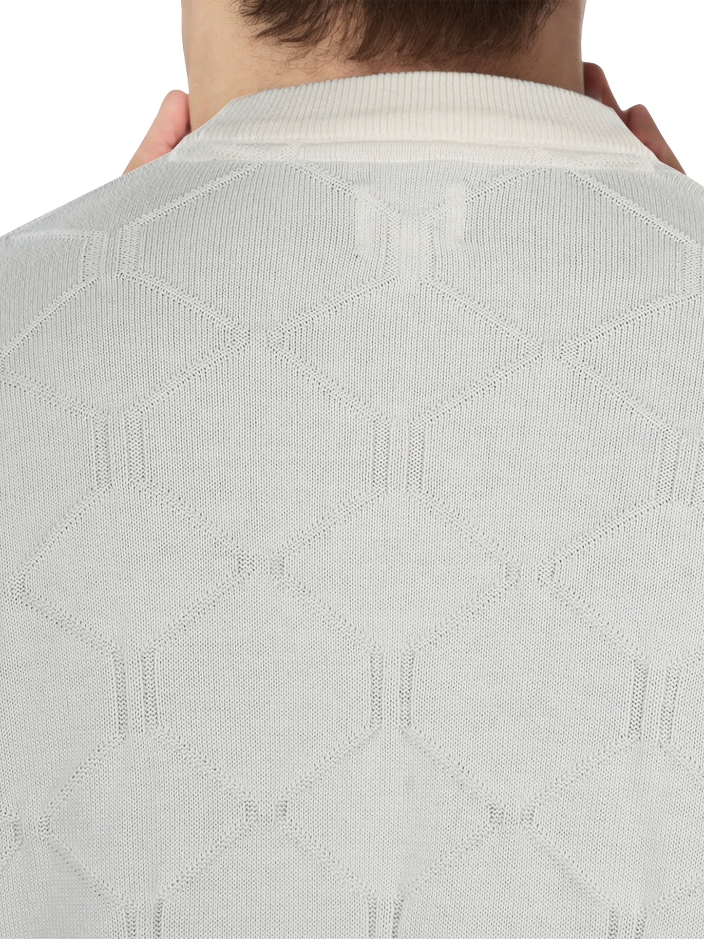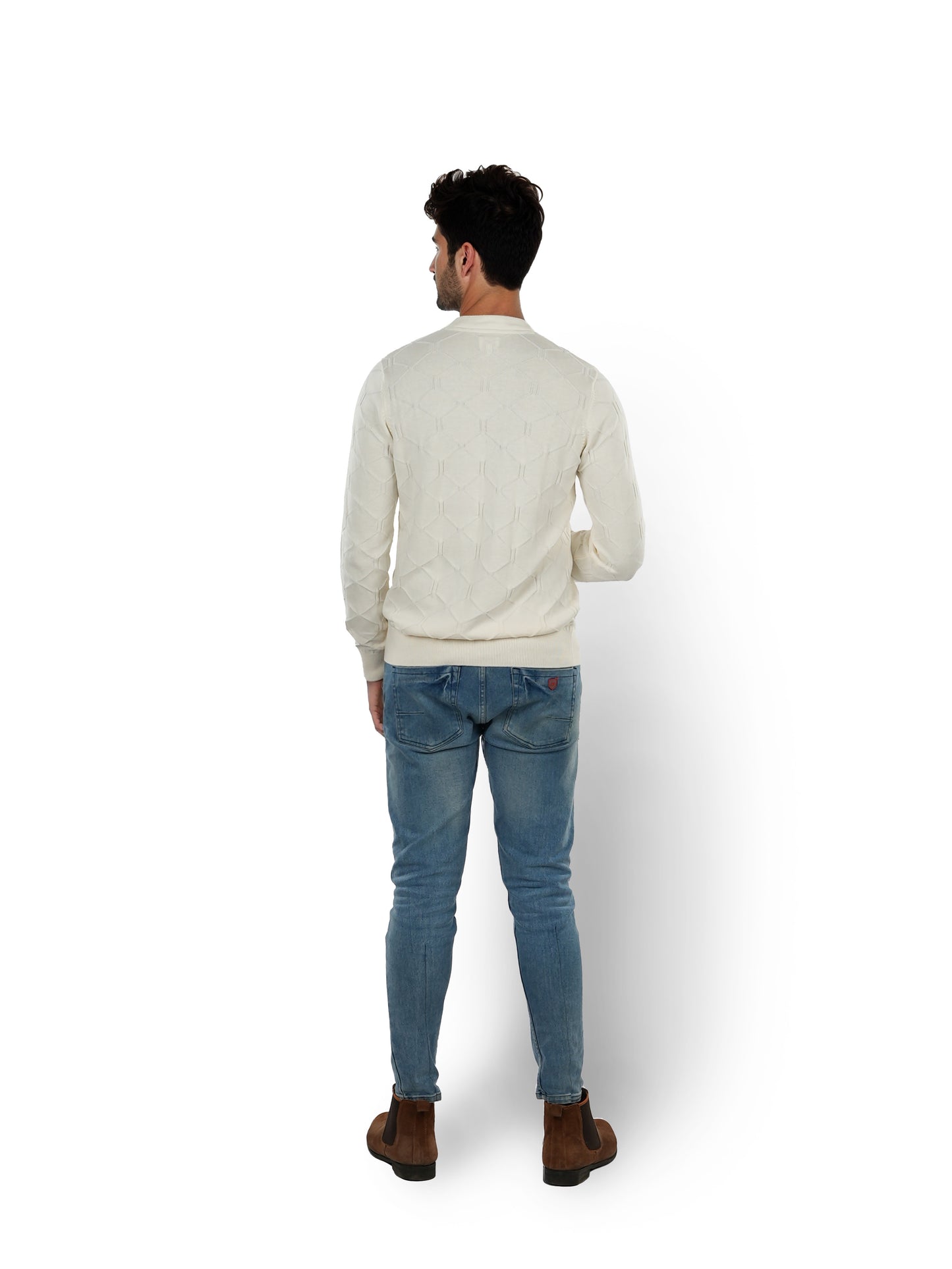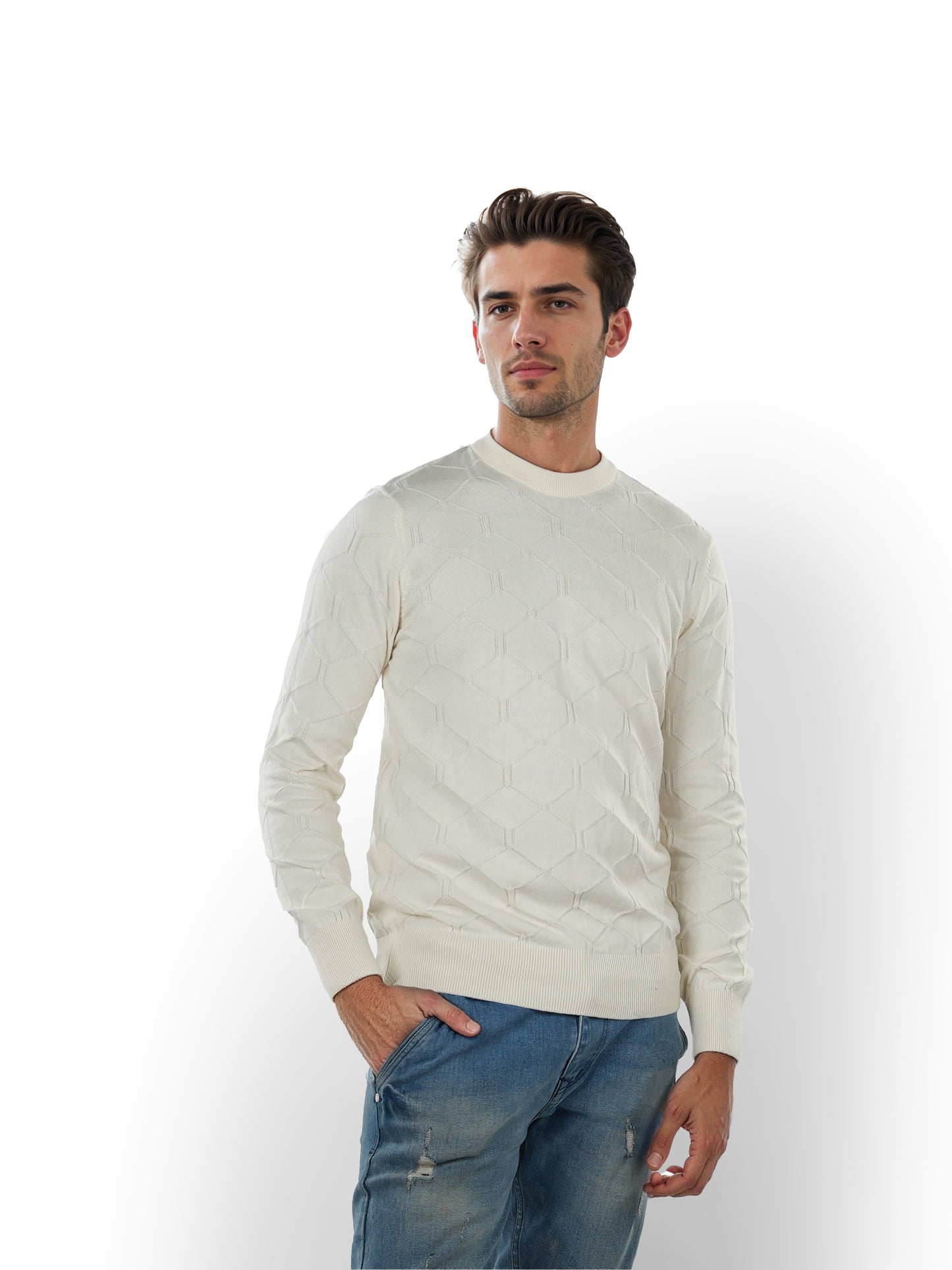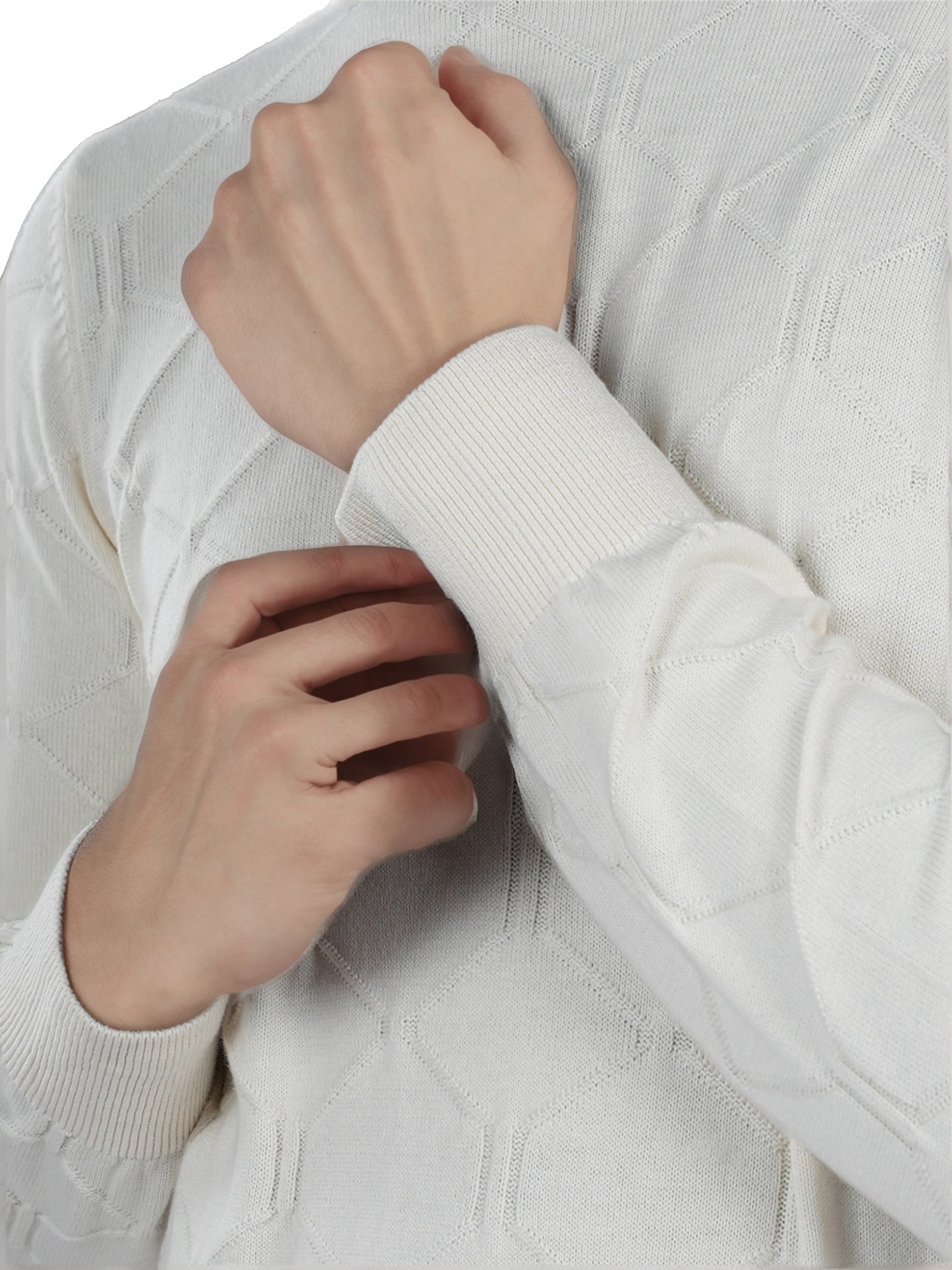 Celio* Solid Regular Fit Cotton Off White Sweater