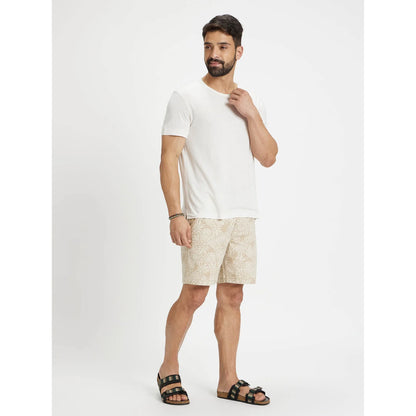 Celio* Solid Regular Fit Linen-Blend Off White T-Shirt