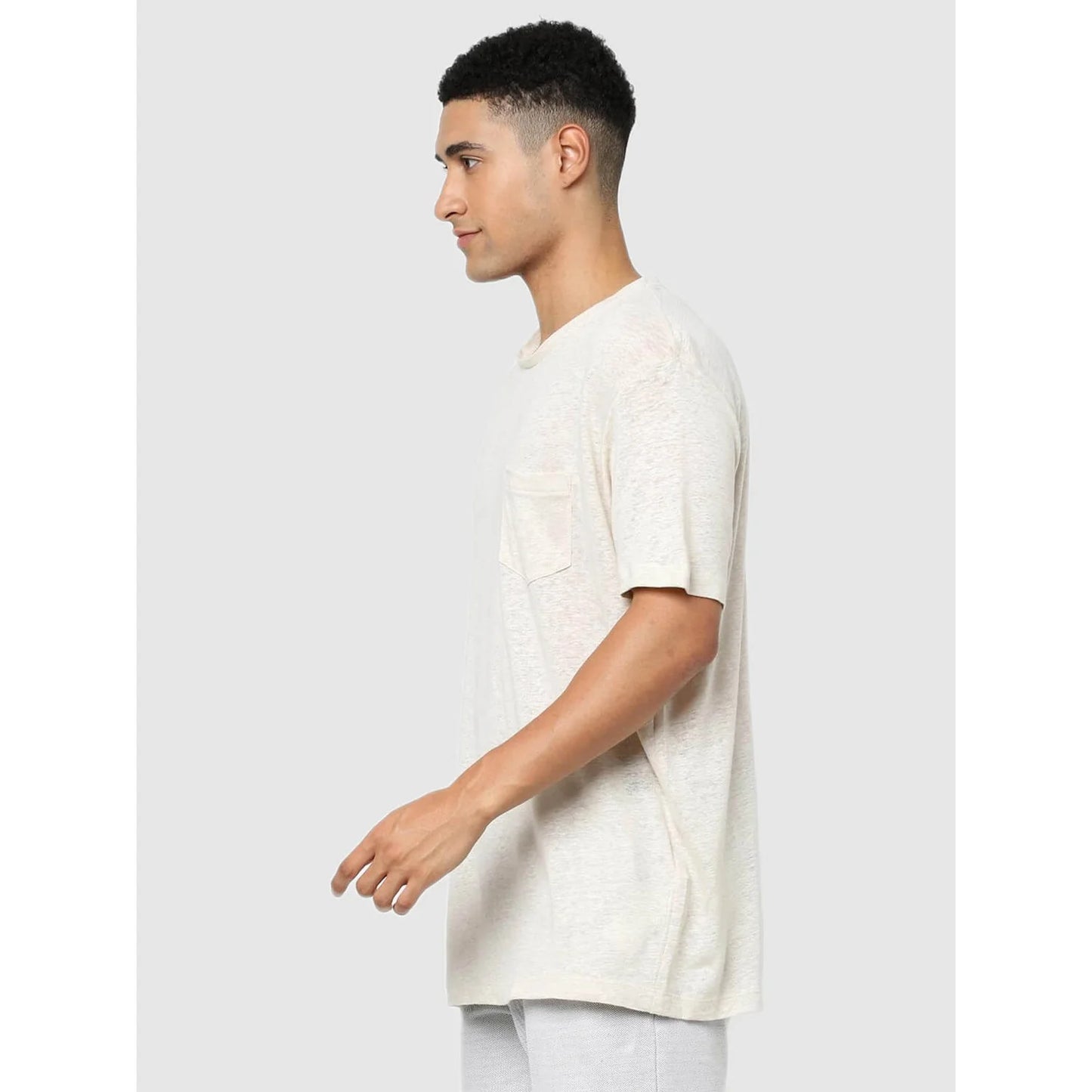 Celio* Solid Regular Fit Linen Off White T-Shirt