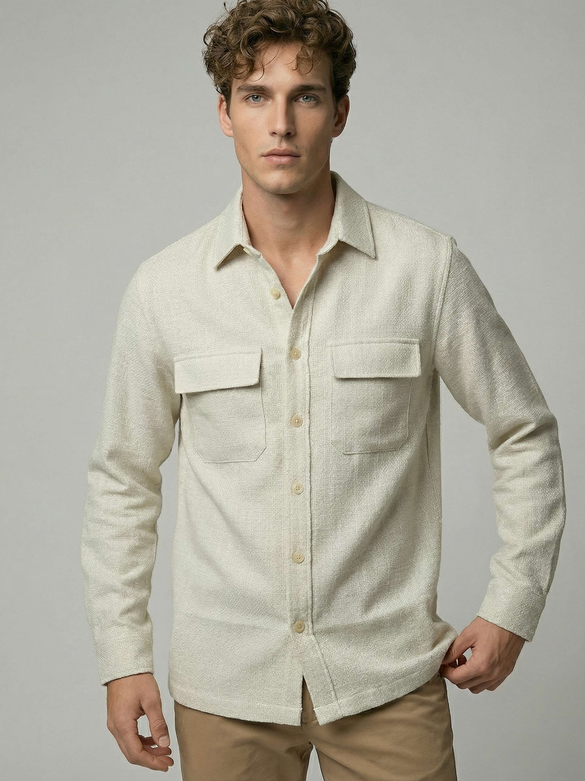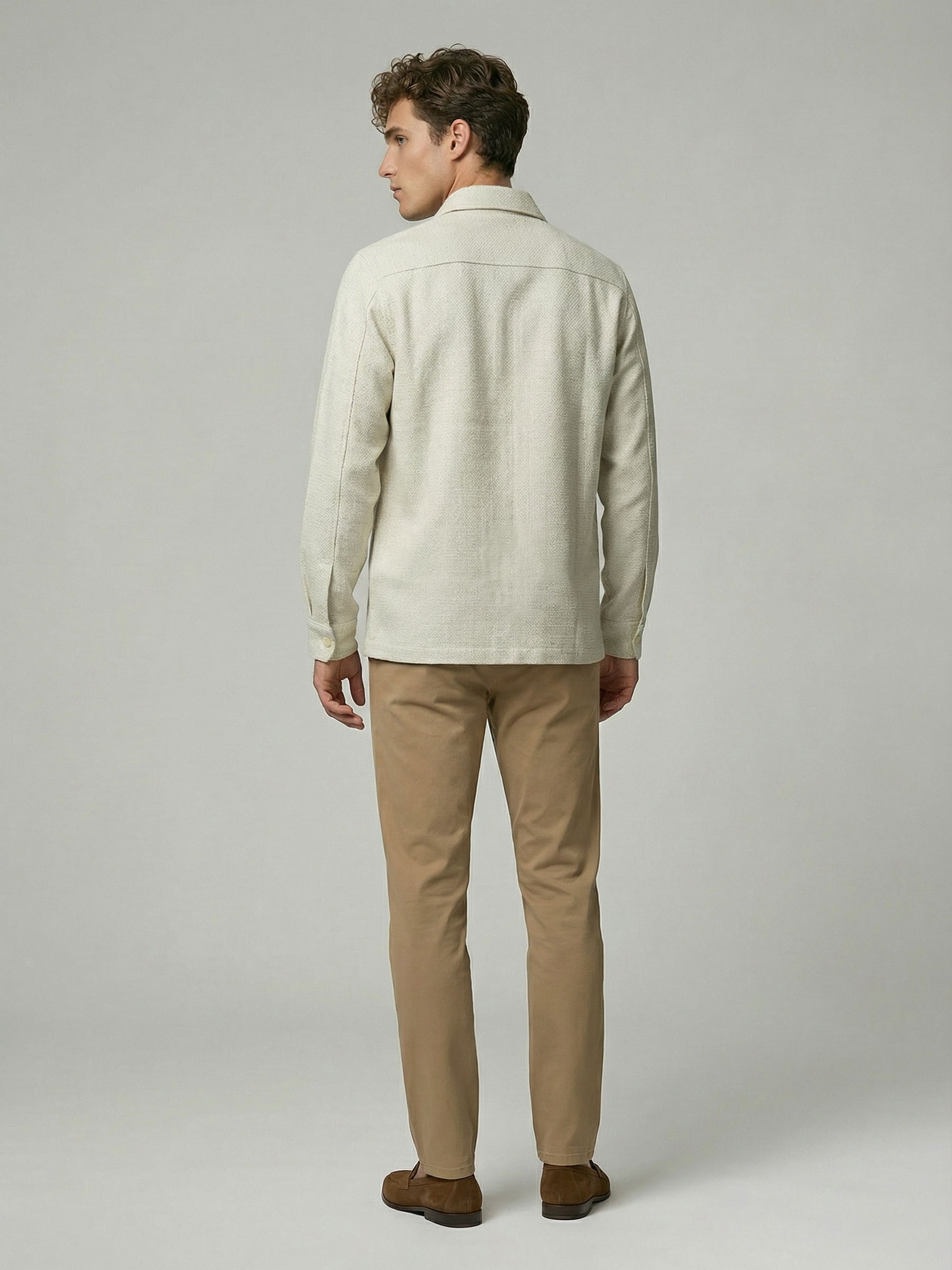 This Celio off-white polyester overshirt for men features long sleeves and is perfect for casual occasions. A versatile addition to your wardrobe. Disclaimer: All other items in the image are only for display purposes and will not be a part of the delivery content. Product colour may slightly vary due to photographic lighting sources. Country of Origin - India.
