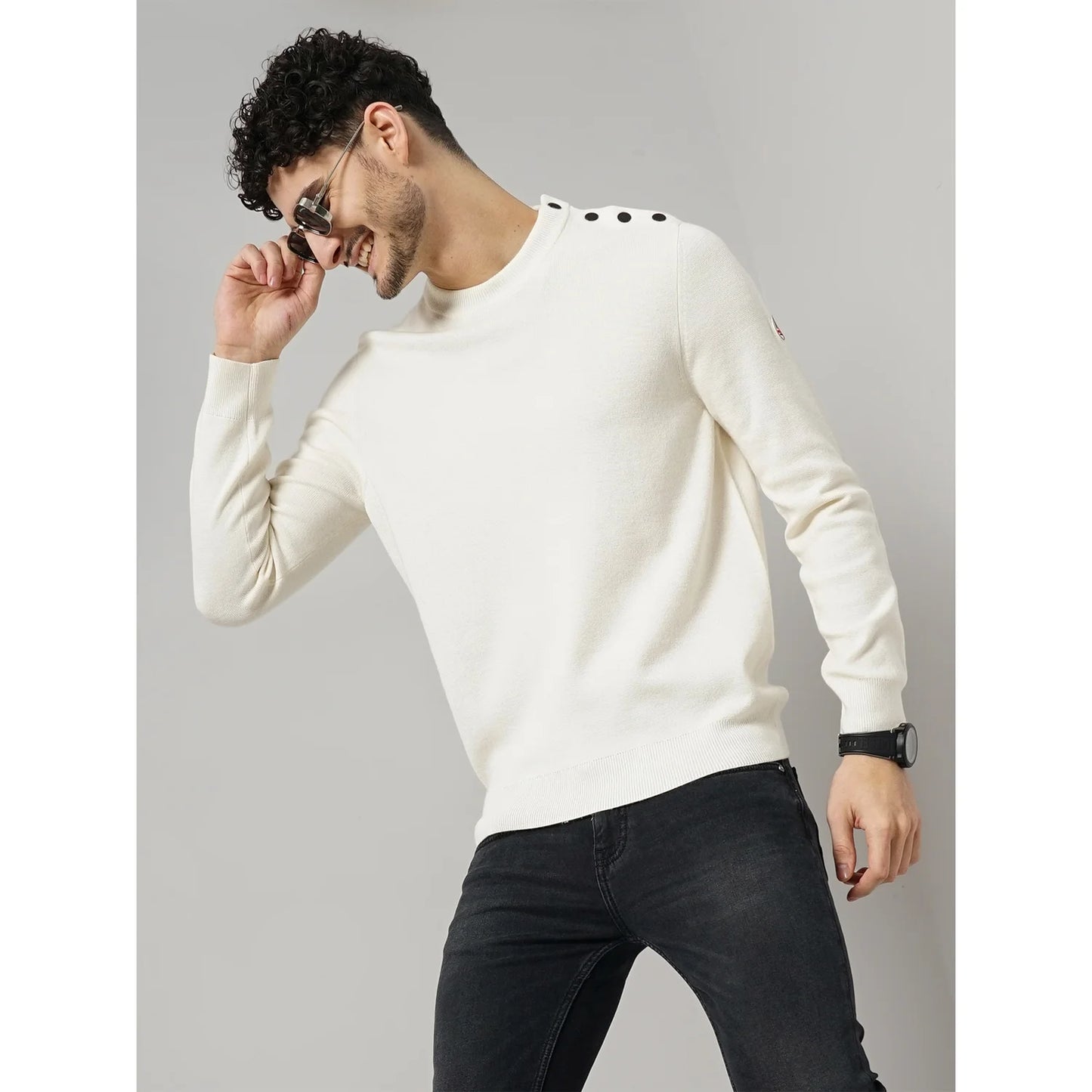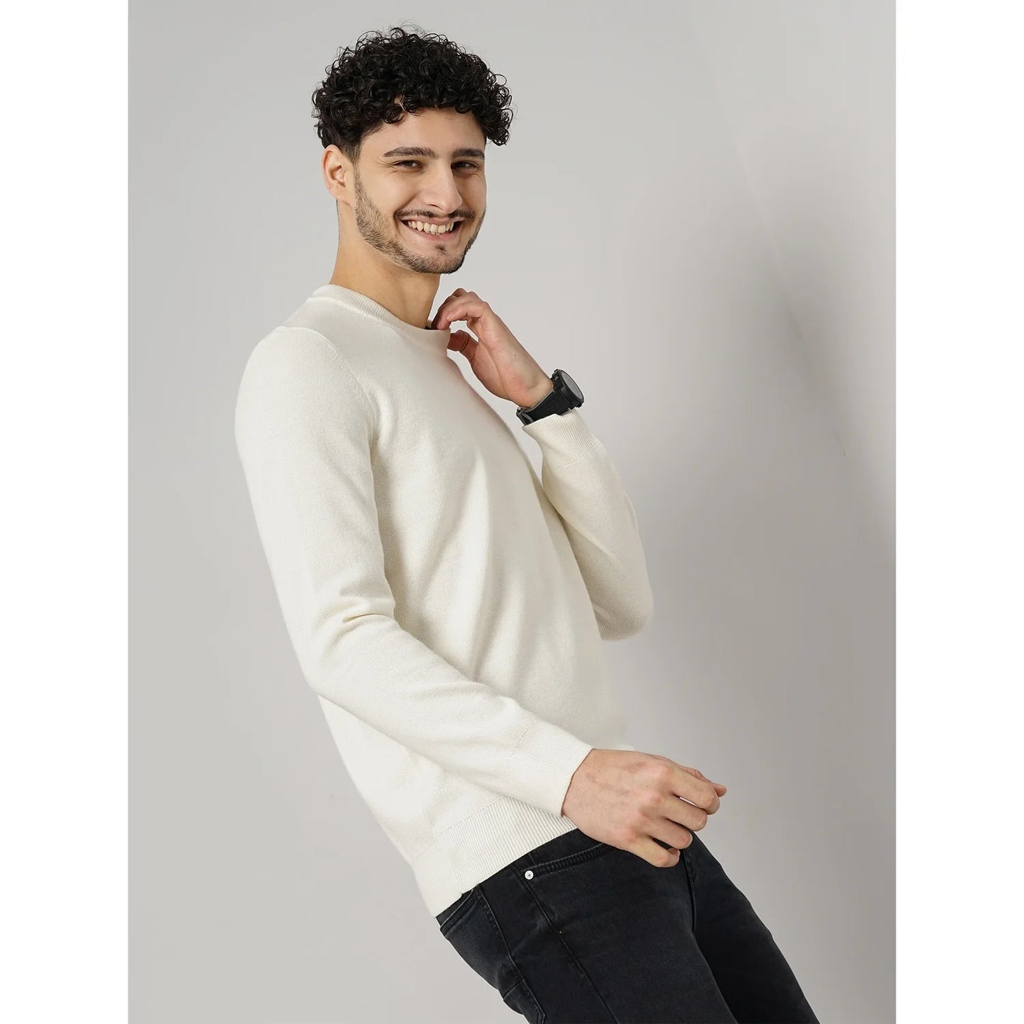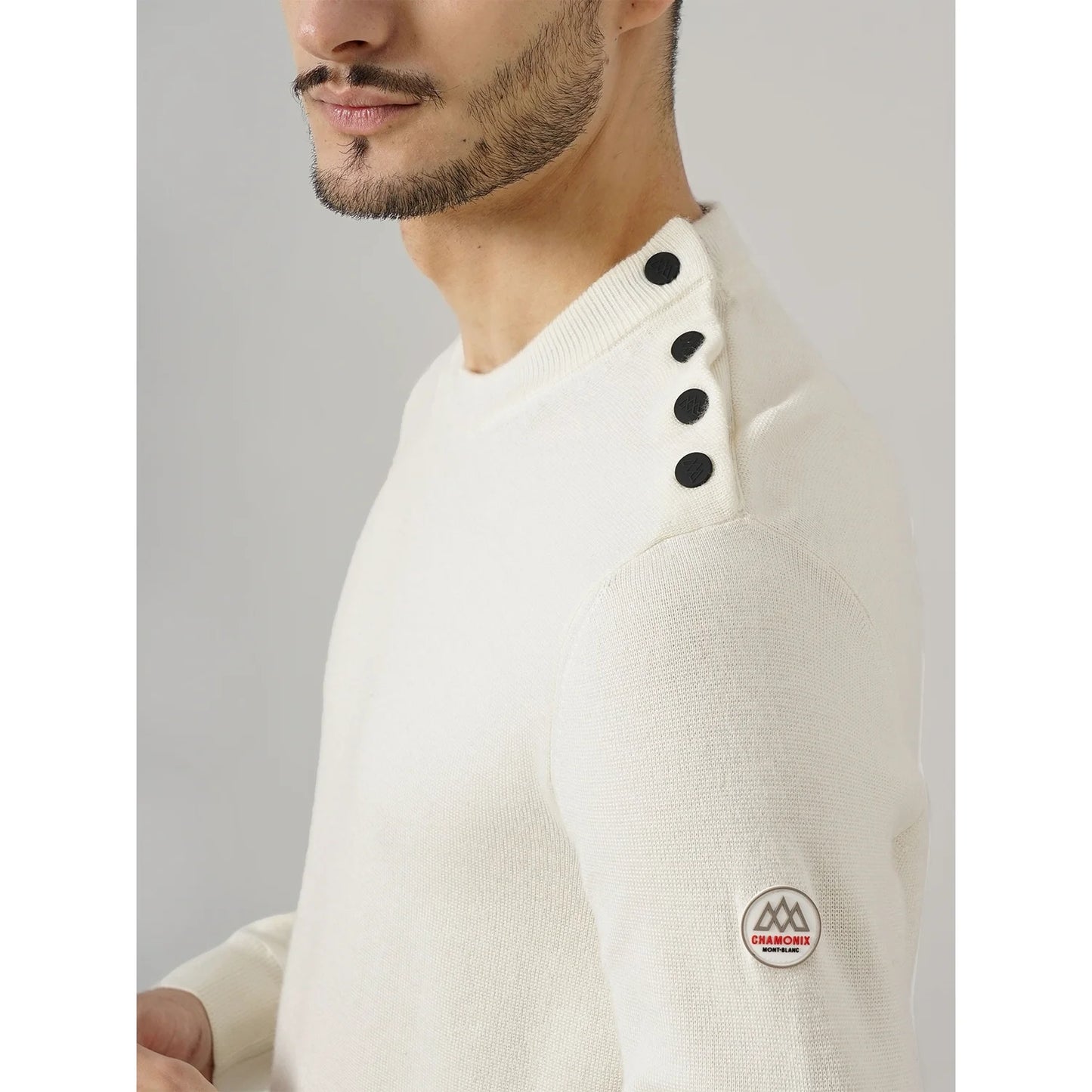 Elevate your everyday style with the CHAMONIX Off White Wool Blend Sweatshirt. Designed for men who appreciate both comfort and sophistication, this sweatshirt is crafted from a soft, cozy wool blend that provides warmth without sacrificing breathability. Its versatile off-white color and solid pattern make it a minimalist classic, effortlessly complementing any casual outfit. With a regular fit, long sleeves, and a timeless crew neckline, the CHAMONIX sweatshirt is perfect for layering or wearing solo. The full-length sleeves add an extra touch of warmth, making it ideal for cooler days, while the breathable fabric ensures comfort year-round. This off-white sweatshirt seamlessly adapts to various settings, whether you're out for a weekend stroll or meeting up with friends. Pair it with jeans or joggers for a relaxed yet polished look. The CHAMONIX Wool Blend Sweatshirt combines style, comfort, and functionality, making it a must-have addition to any wardrobe. Disclaimer: All other items in the image are only for display purposes and will not be a part of the delivery content. Product colour may slightly vary due to photographic lighting sources. Country of Origin - India.