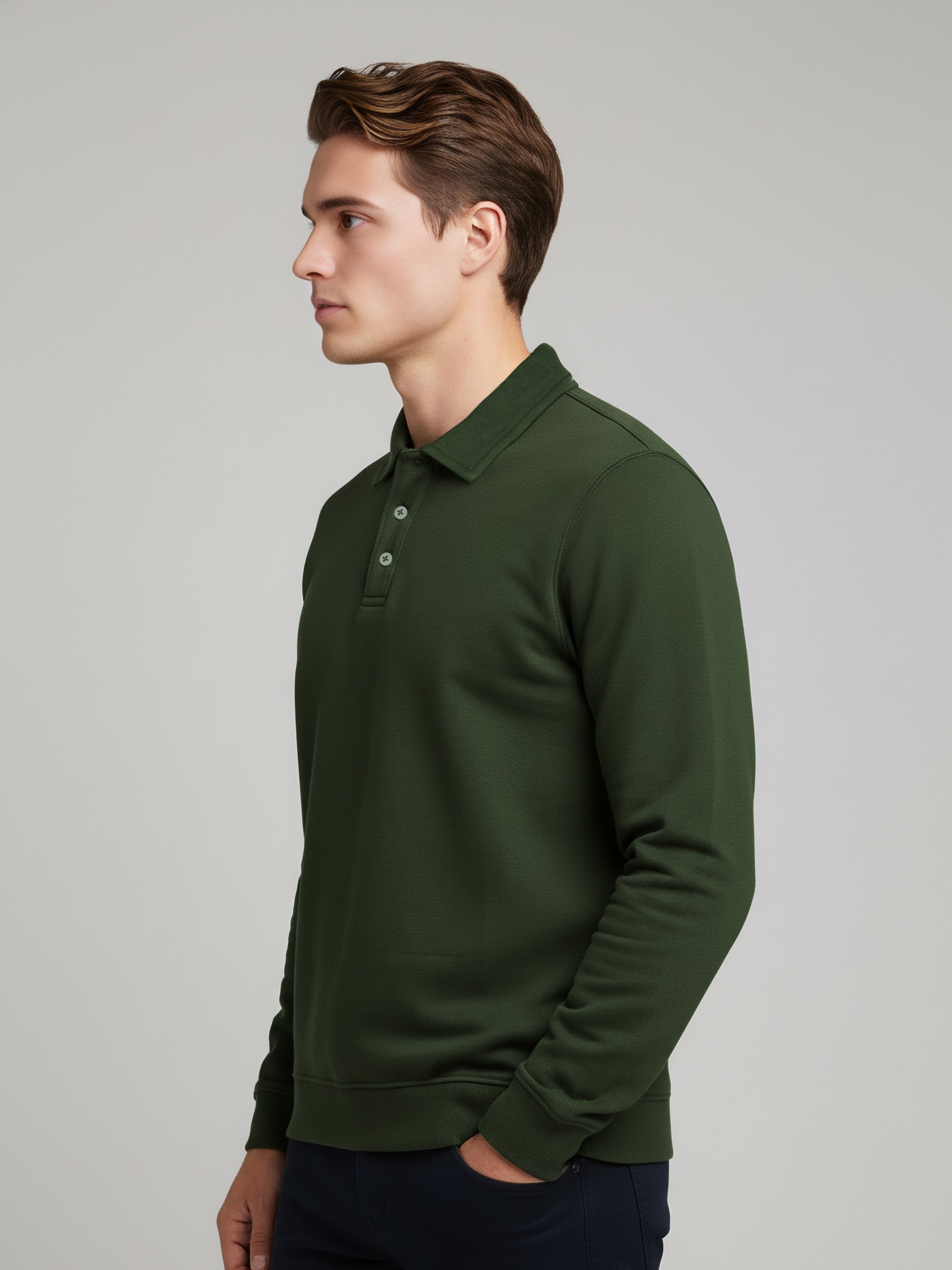 Shop the Celio Men Olive Solid Sweatshirt, designed for casual wear. Made from a comfortable cotton-poly-blend, it features long sleeves and a regular fit, perfect for any occasion. Disclaimer: All other items in the image are only for display purposes and will not be a part of the delivery content. Product colour may slightly vary due to photographic lighting sources. Country of Origin - India.