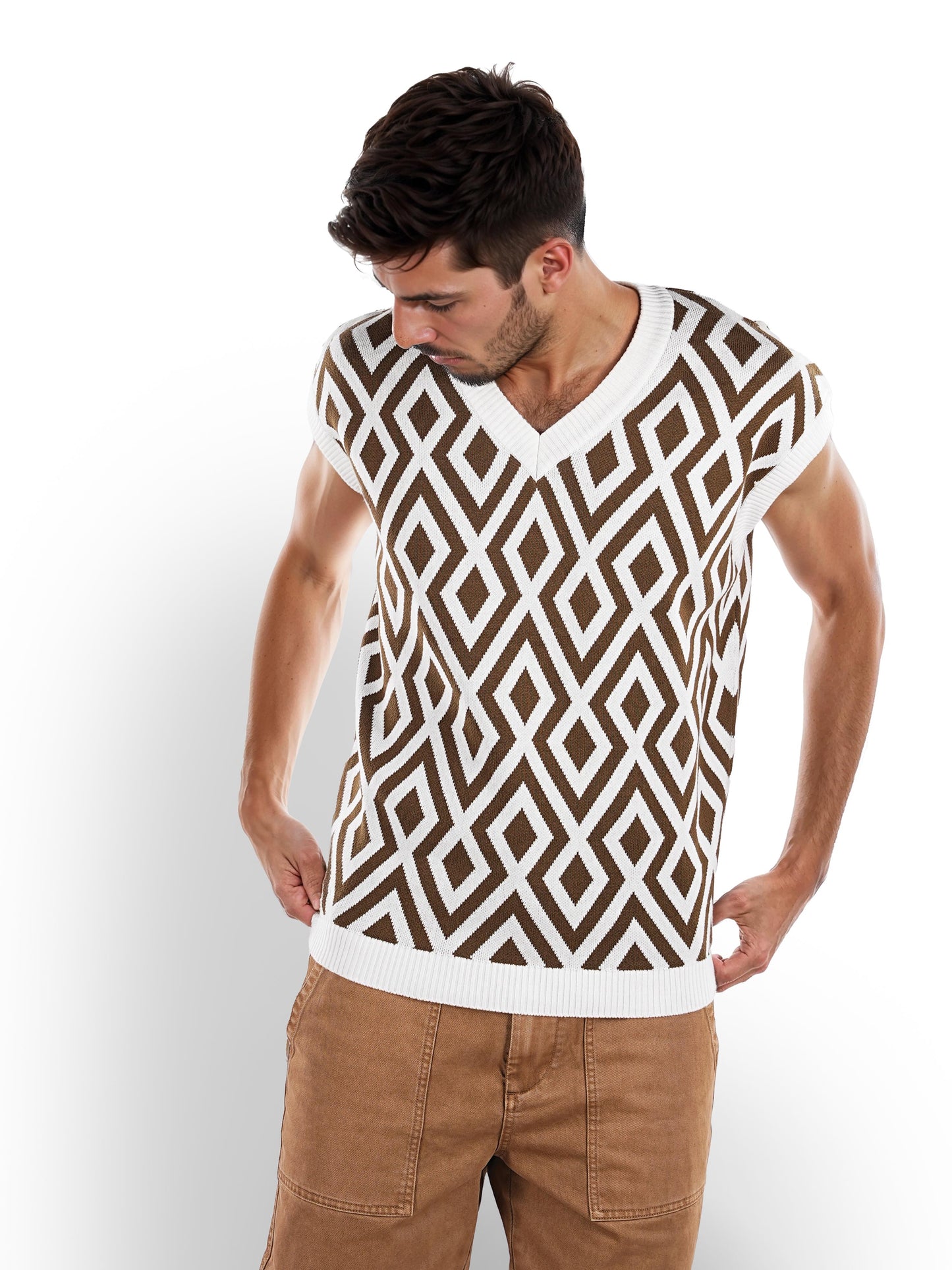 Elevate your casual look with the Celio Men's Olive V-Neck Printed Structured Sweater. Crafted from cotton, this stylish piece features short sleeves for a relaxed fit. Disclaimer: All other items in the image are only for display purposes and will not be a part of the delivery content. Product colour may slightly vary due to photographic lighting sources. Country of Origin - India. JELESS