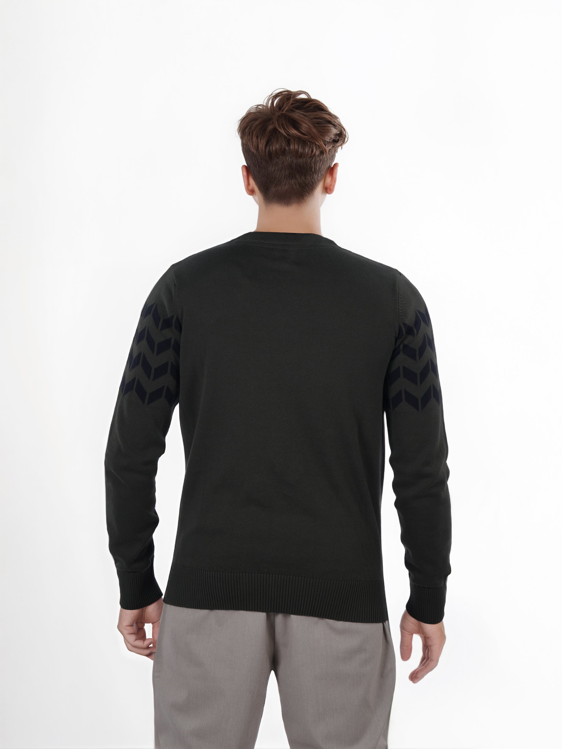 Celio* Men Olive Printed Regular Fit Cotton Sweater