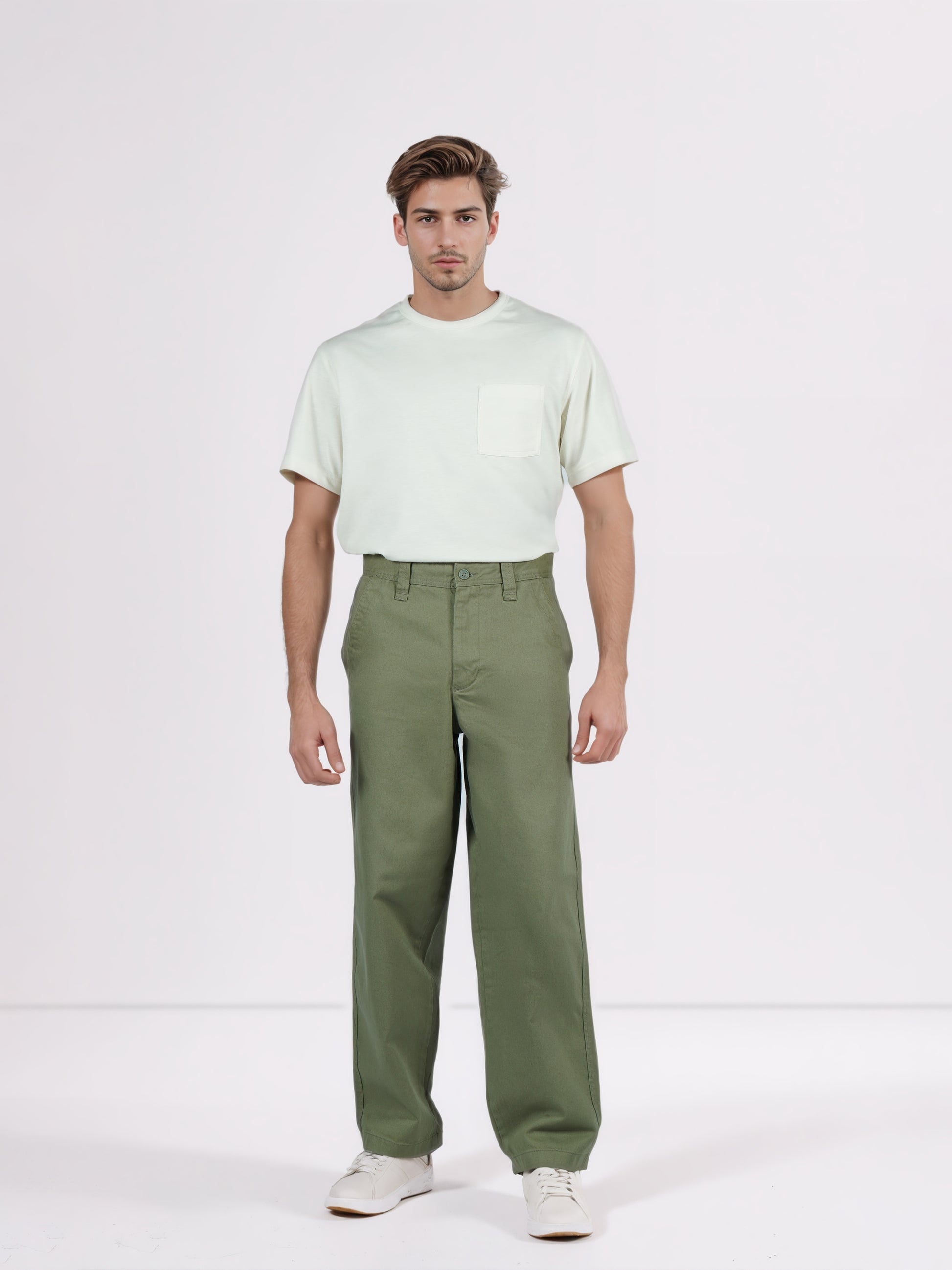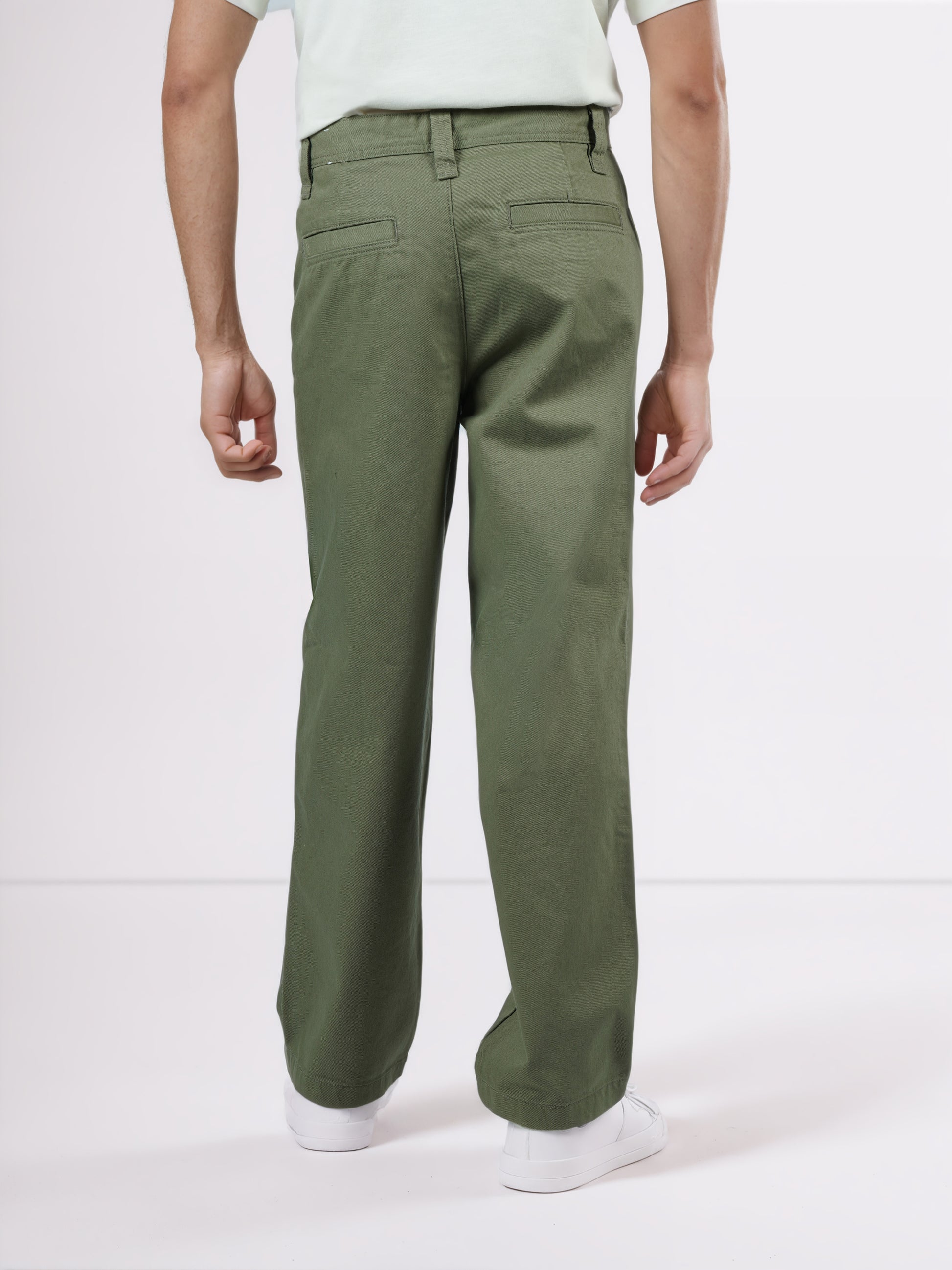 Celio* Men Olive Solid Baggy Fit Cotton Trousers