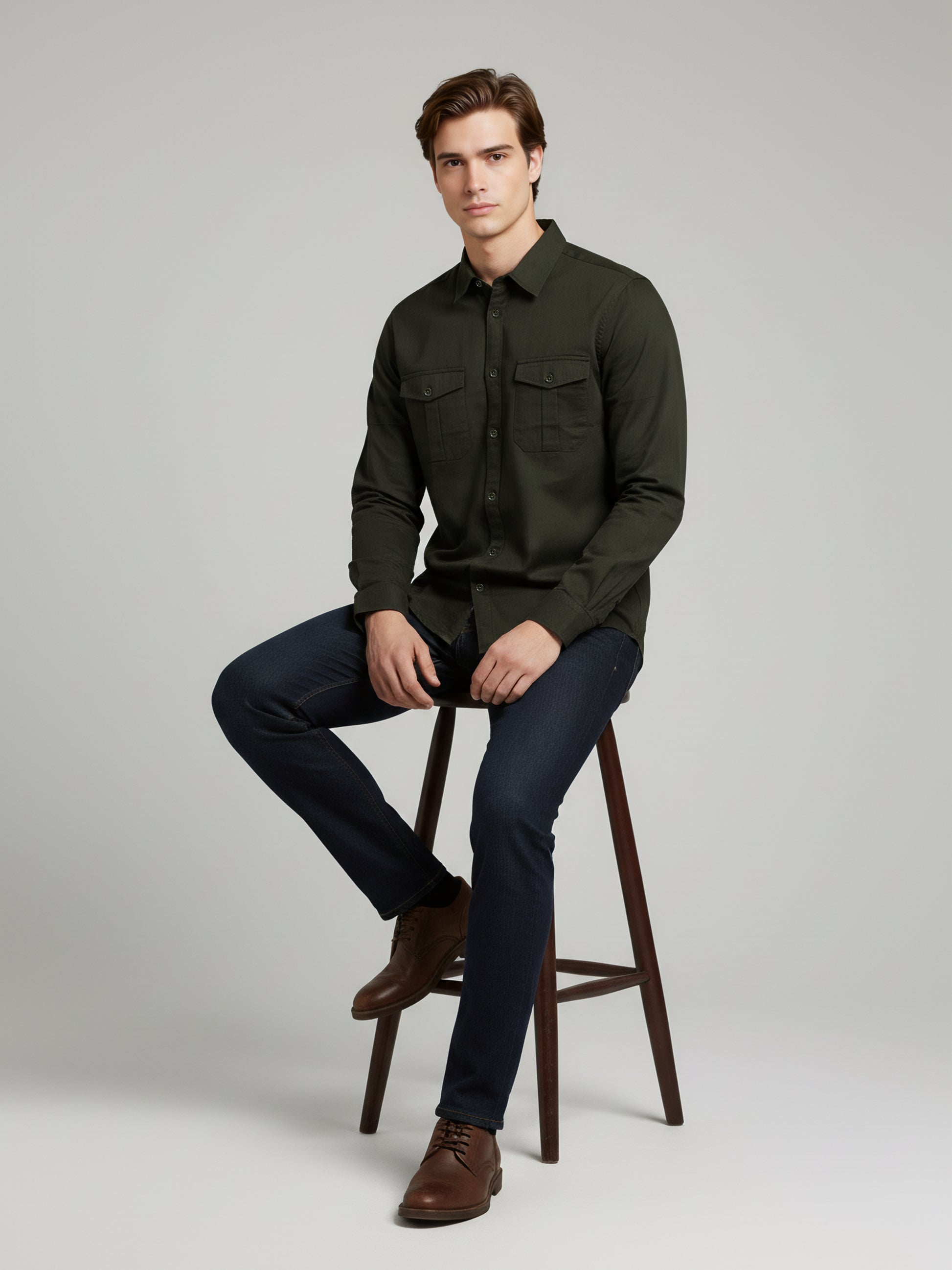 The Celio Men Olive Solid Shirt is crafted from cotton linen, featuring a regular fit and long sleeves, perfect for casual occasions. Disclaimer: All other items in the image are only for display purposes and will not be a part of the delivery content. Product colour may slightly vary due to photographic lighting sources. Country of Origin - India.