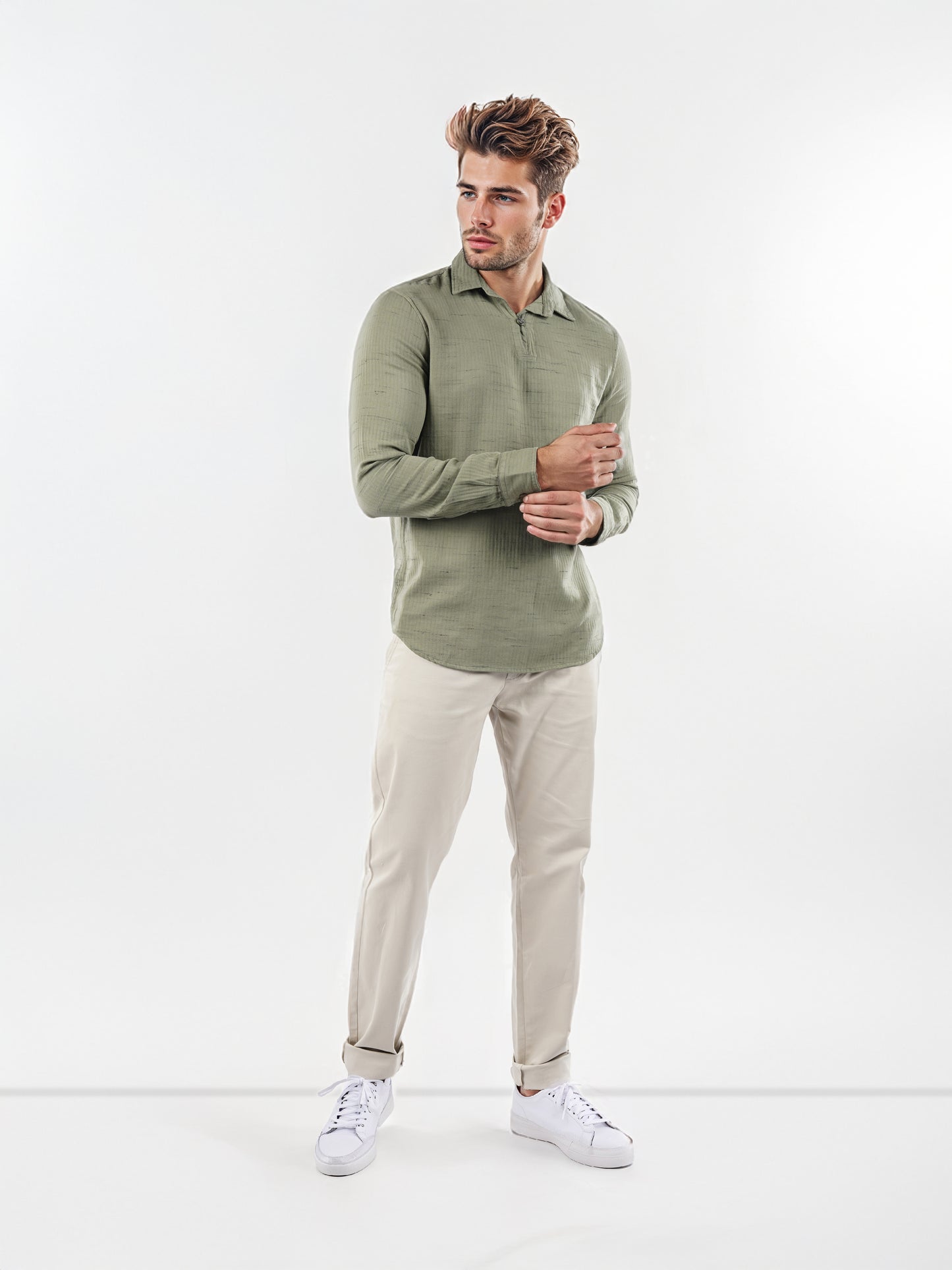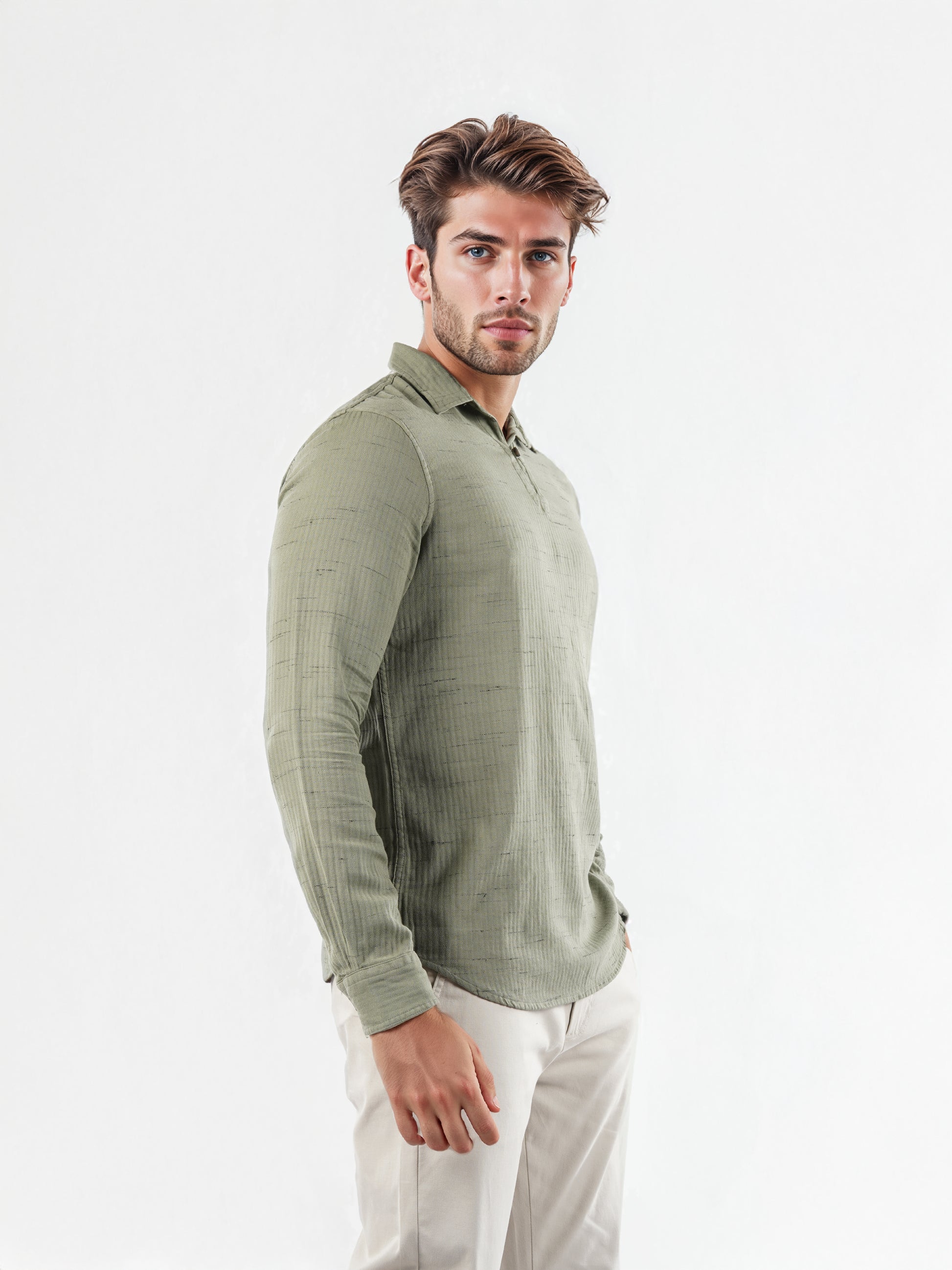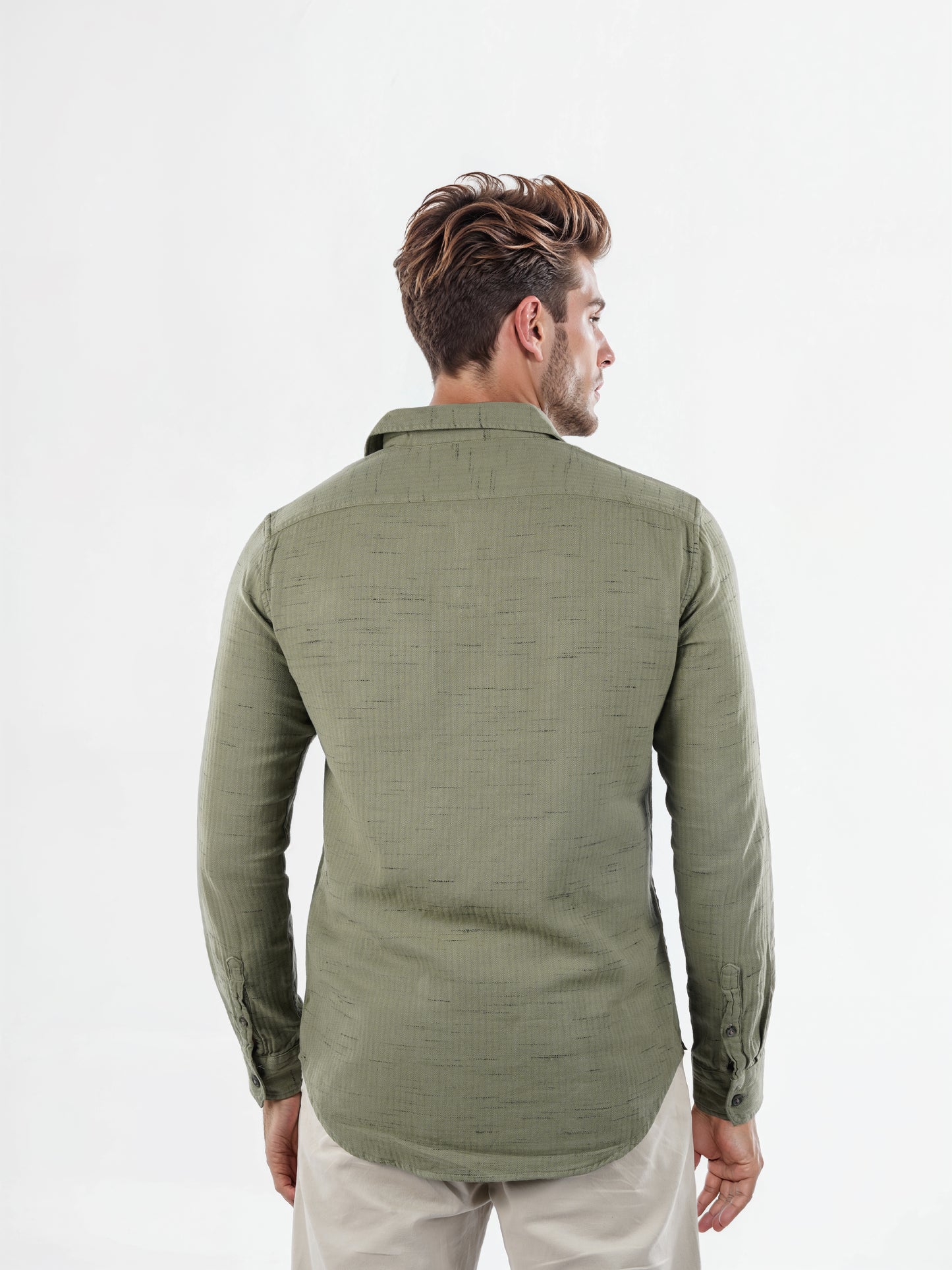 Shop the Celio Men Olive Solid Shirt made from comfortable cotton, perfect for casual occasions. This regular fit shirt features long sleeves for a stylish look. Disclaimer: All other items in the image are only for display purposes and will not be a part of the delivery content. Product colour may slightly vary due to photographic lighting sources. Country of Origin - India.