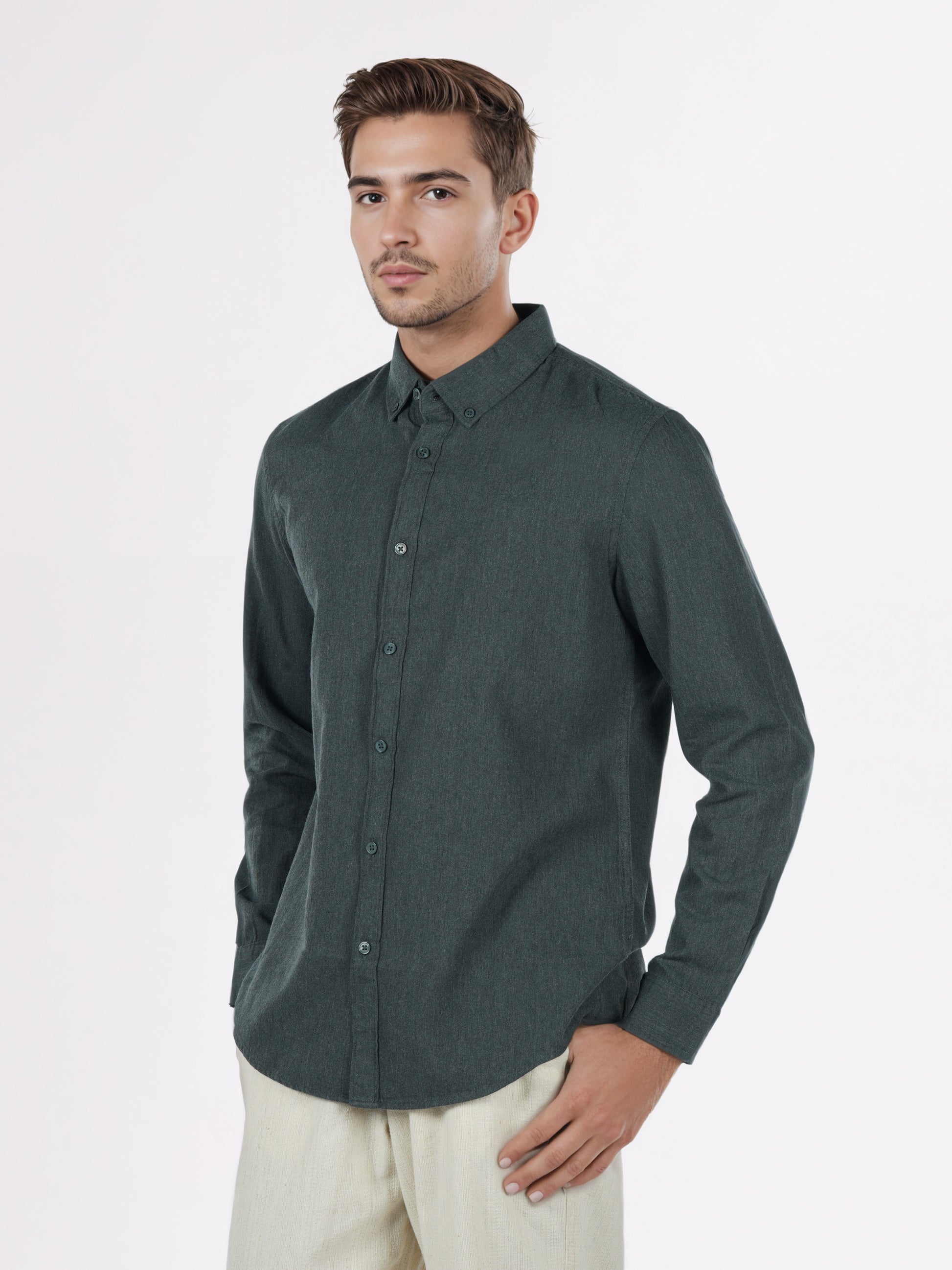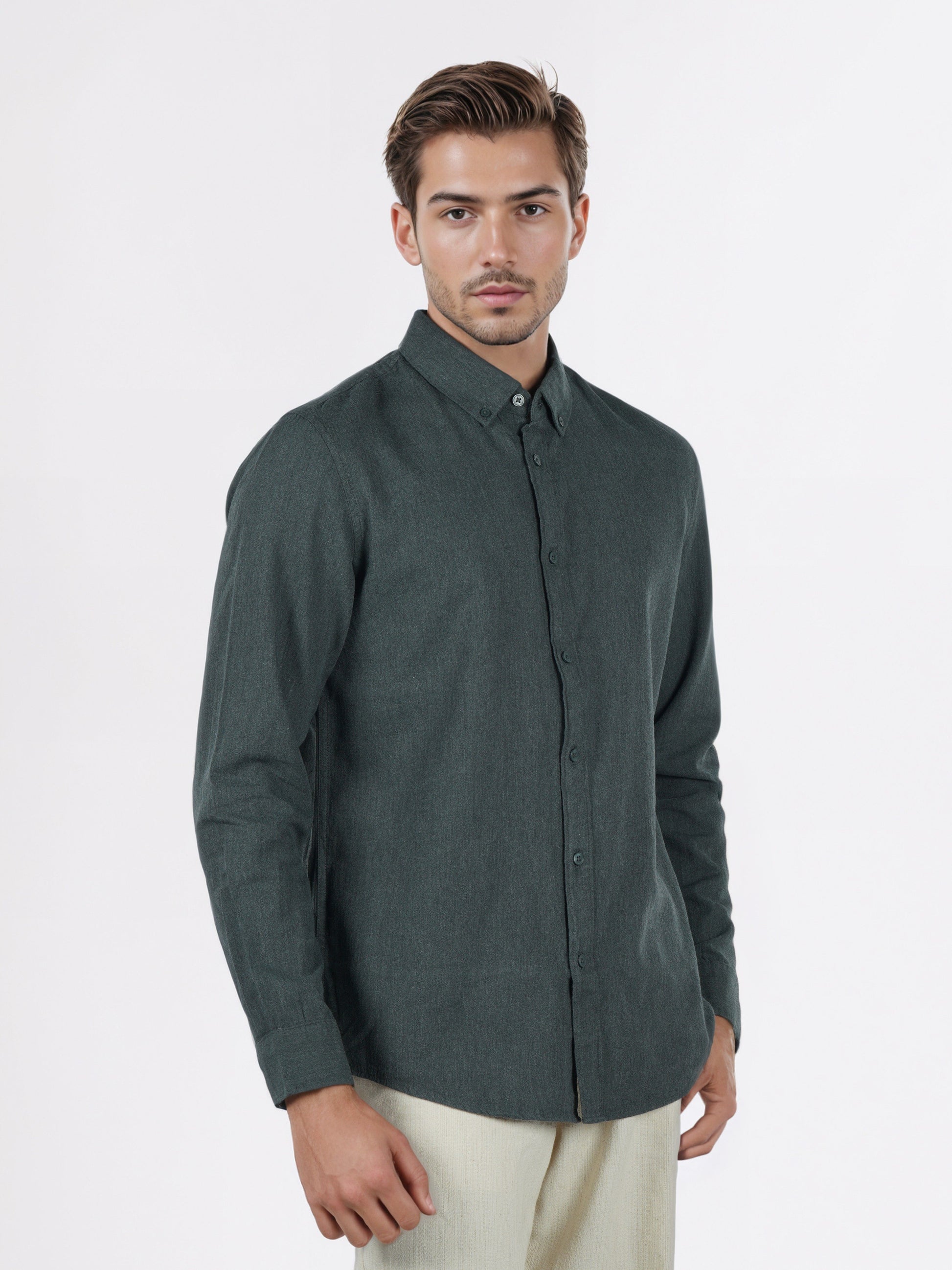 Shop the Celio Men Olive Solid Regular Fit Cotton Casual Shirt, perfect for casual outings. Features long sleeves and a classic design for a stylish look. Disclaimer: All other items in the image are only for display purposes and will not be a part of the delivery content. Product colour may slightly vary due to photographic lighting sources. Country of Origin - India.