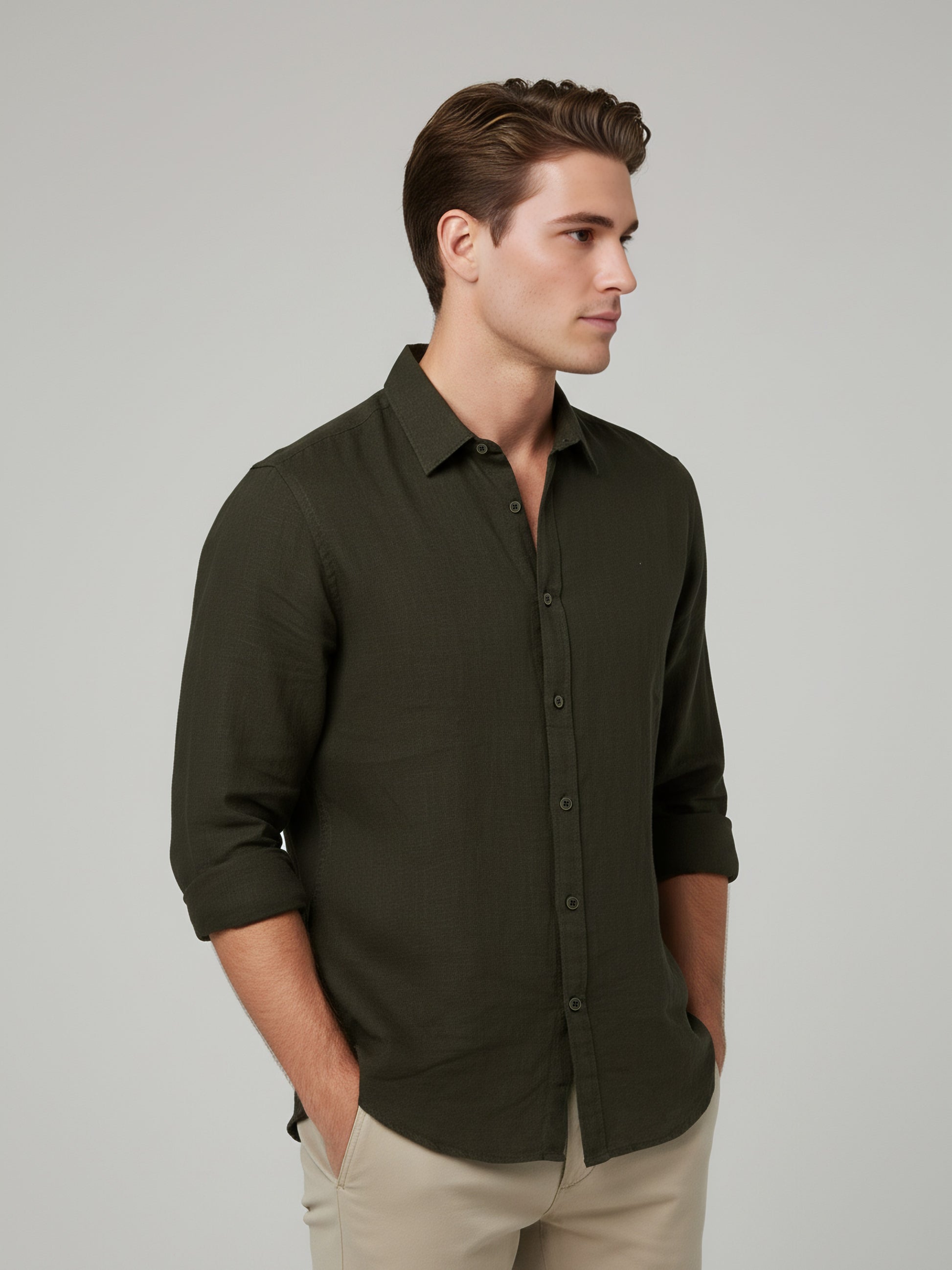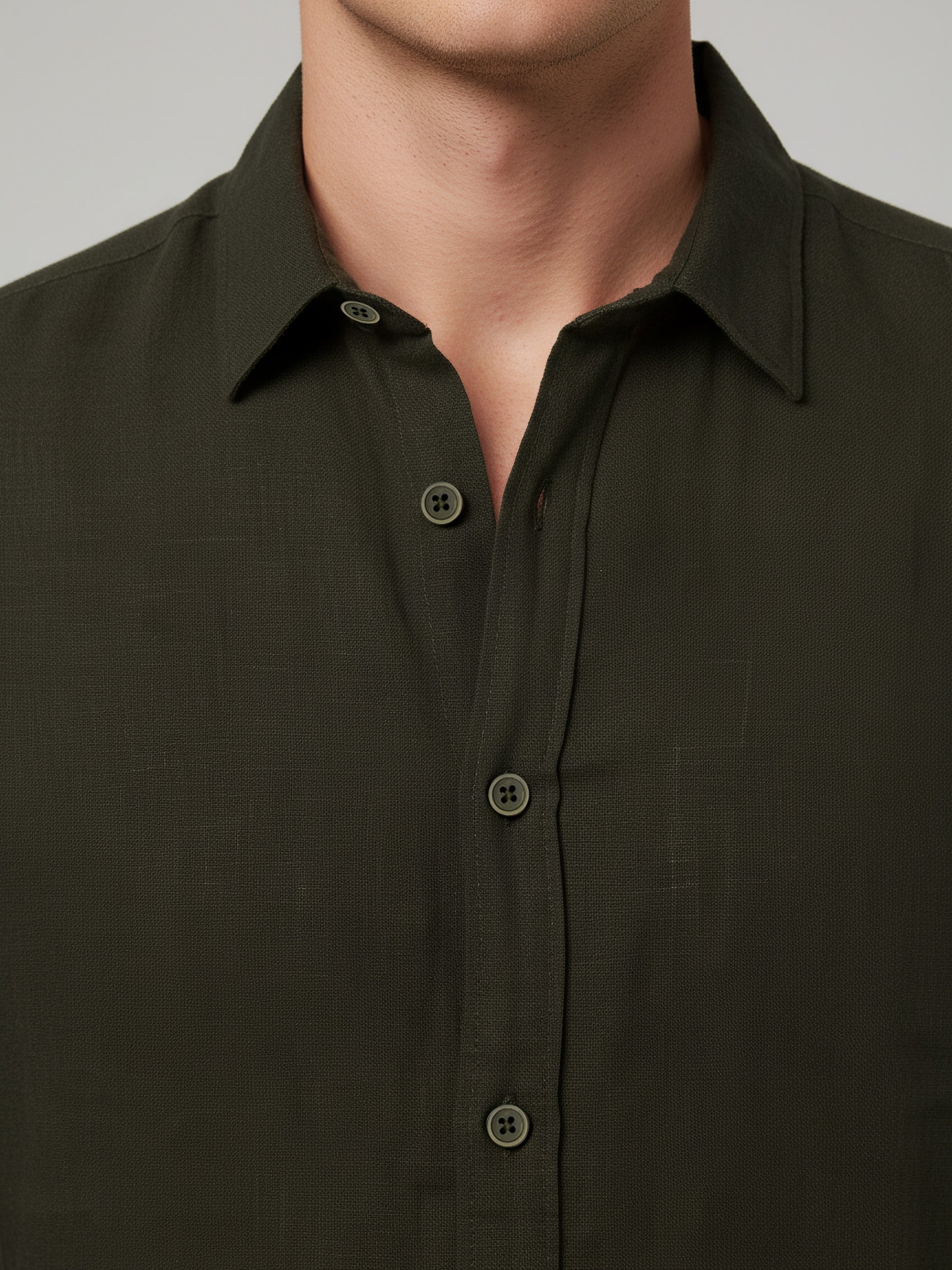*Celio Men Olive Solid Regular Fit Cotton Shirts