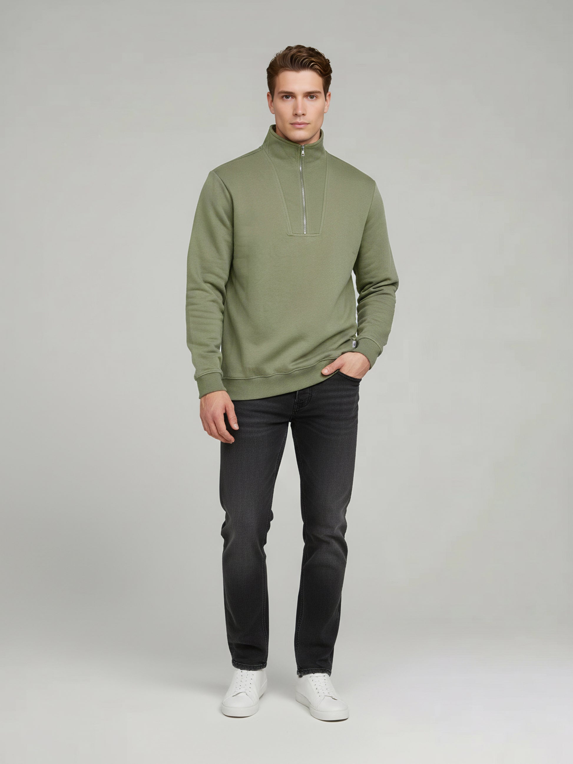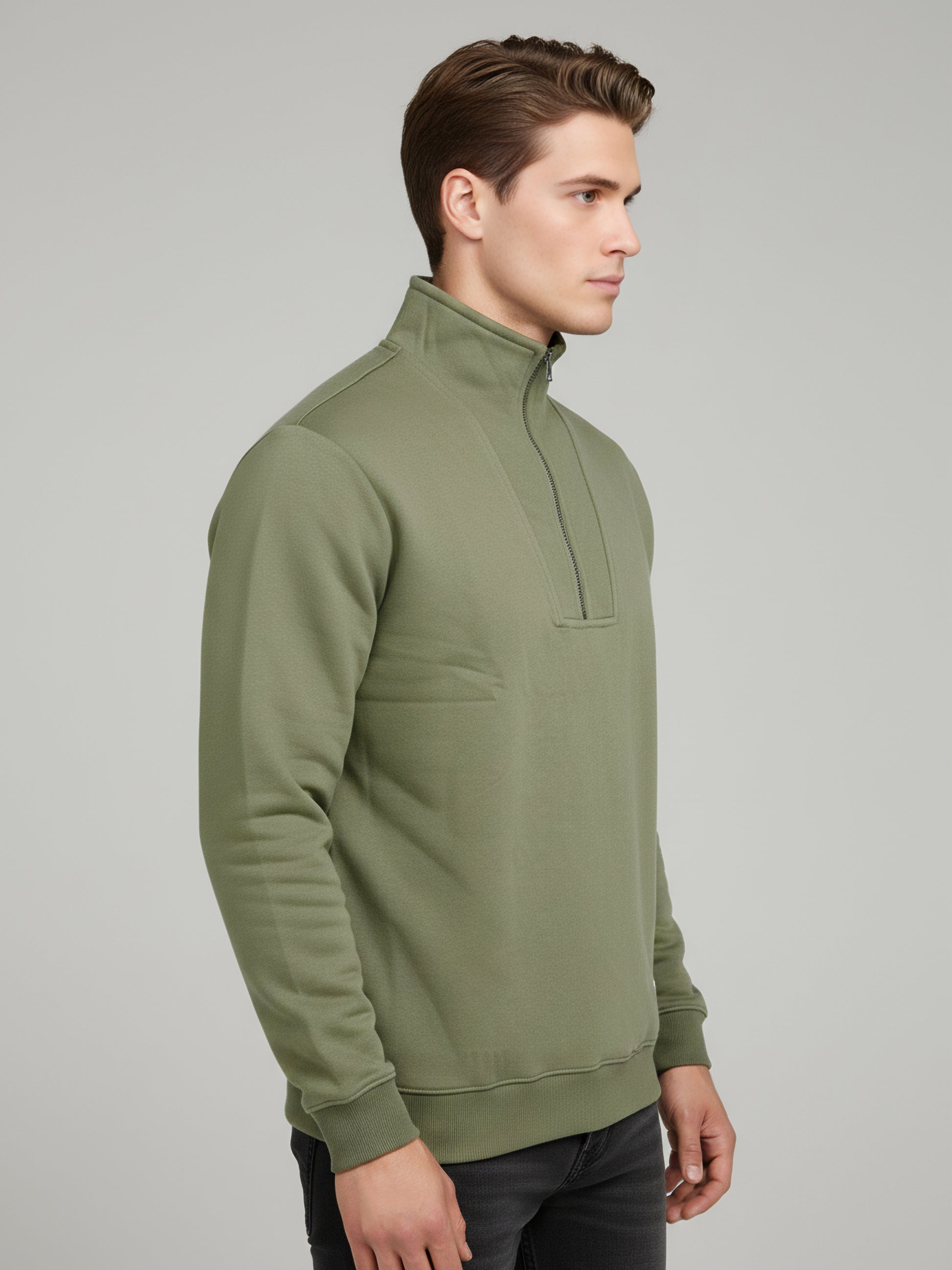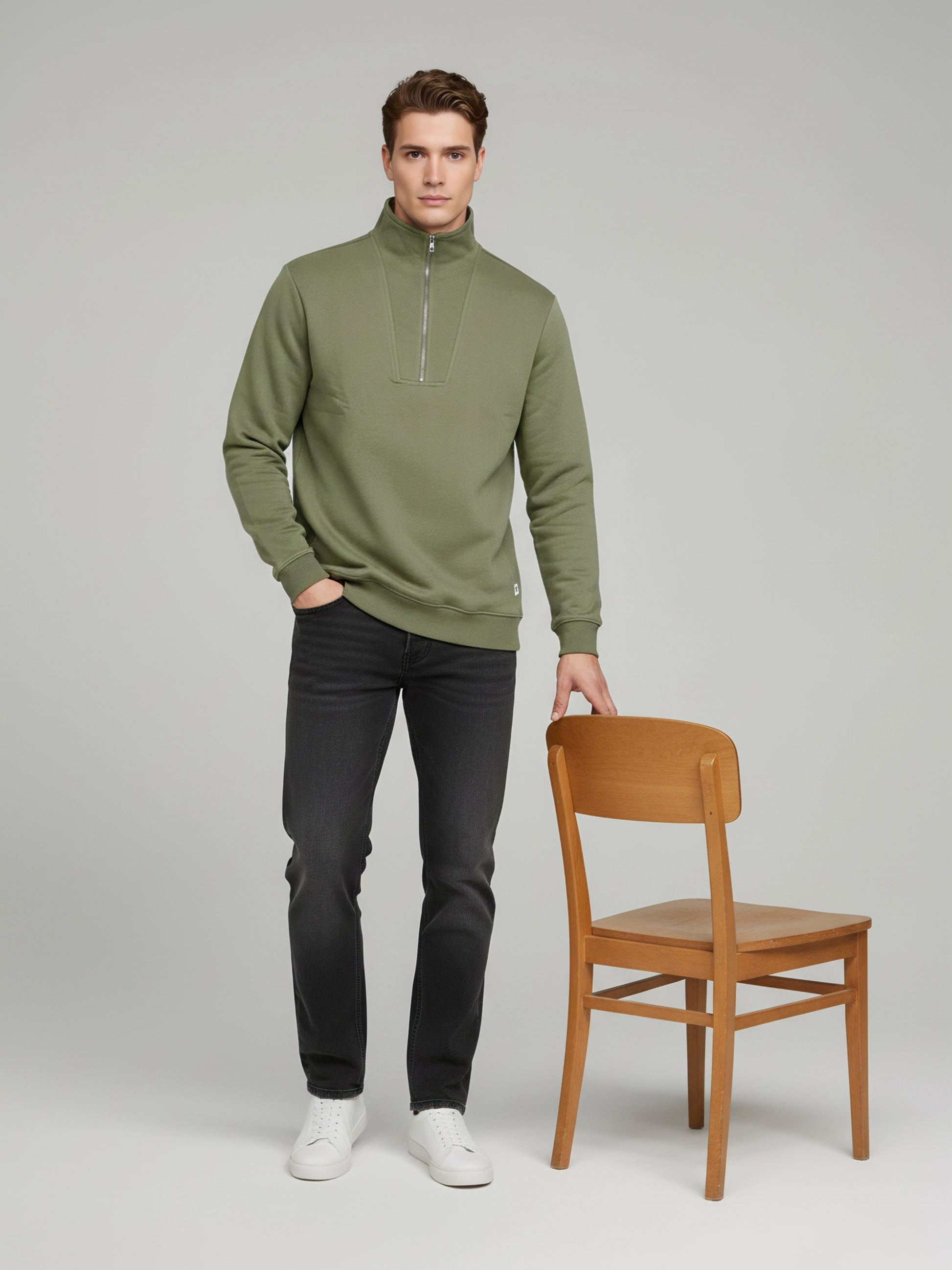 Celio Men Olive Solid Regular Fit Cotton Sweatshirts