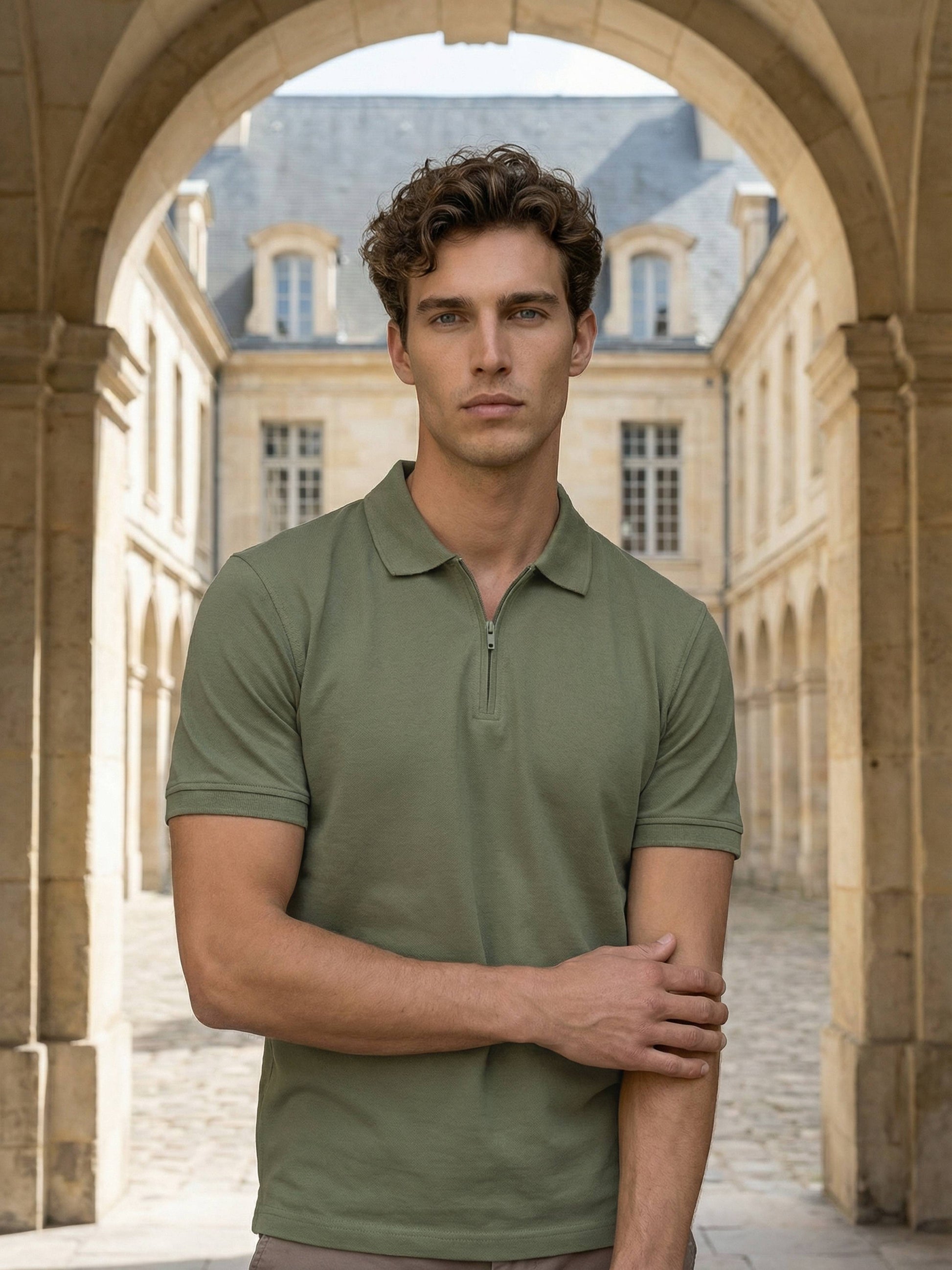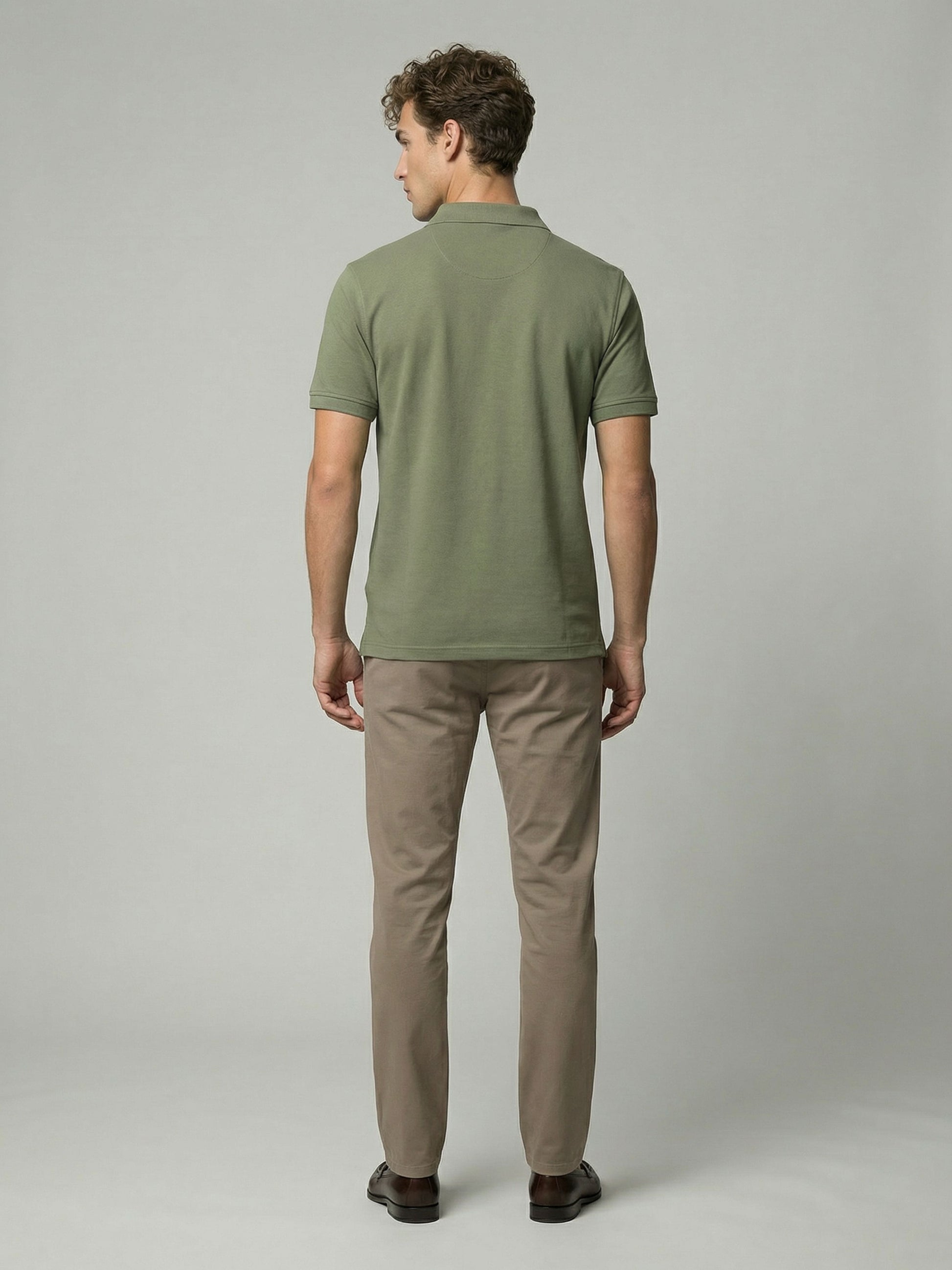 Elevate your casual wardrobe with the Celio Men Olive Solid Polo T-Shirt. Crafted from soft cotton, it features short sleeves, making it perfect for everyday wear. Disclaimer: All other items in the image are only for display purposes and will not be a part of the delivery content. Product colour may slightly vary due to photographic lighting sources. Country of Origin - India.