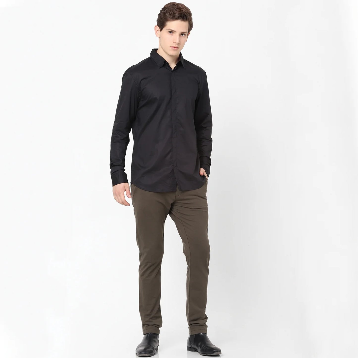 Elevate your casual wardrobe with Celio's Solid Regular Fit Trouser in Dark Olive. Crafted from soft cotton, these men's Trouser combine comfort with style. Disclaimer: All other items in the image are only for display purposes and will not be a part of the delivery content. Product colour may slightly vary due to photographic lighting sources. Country of Origin - India.