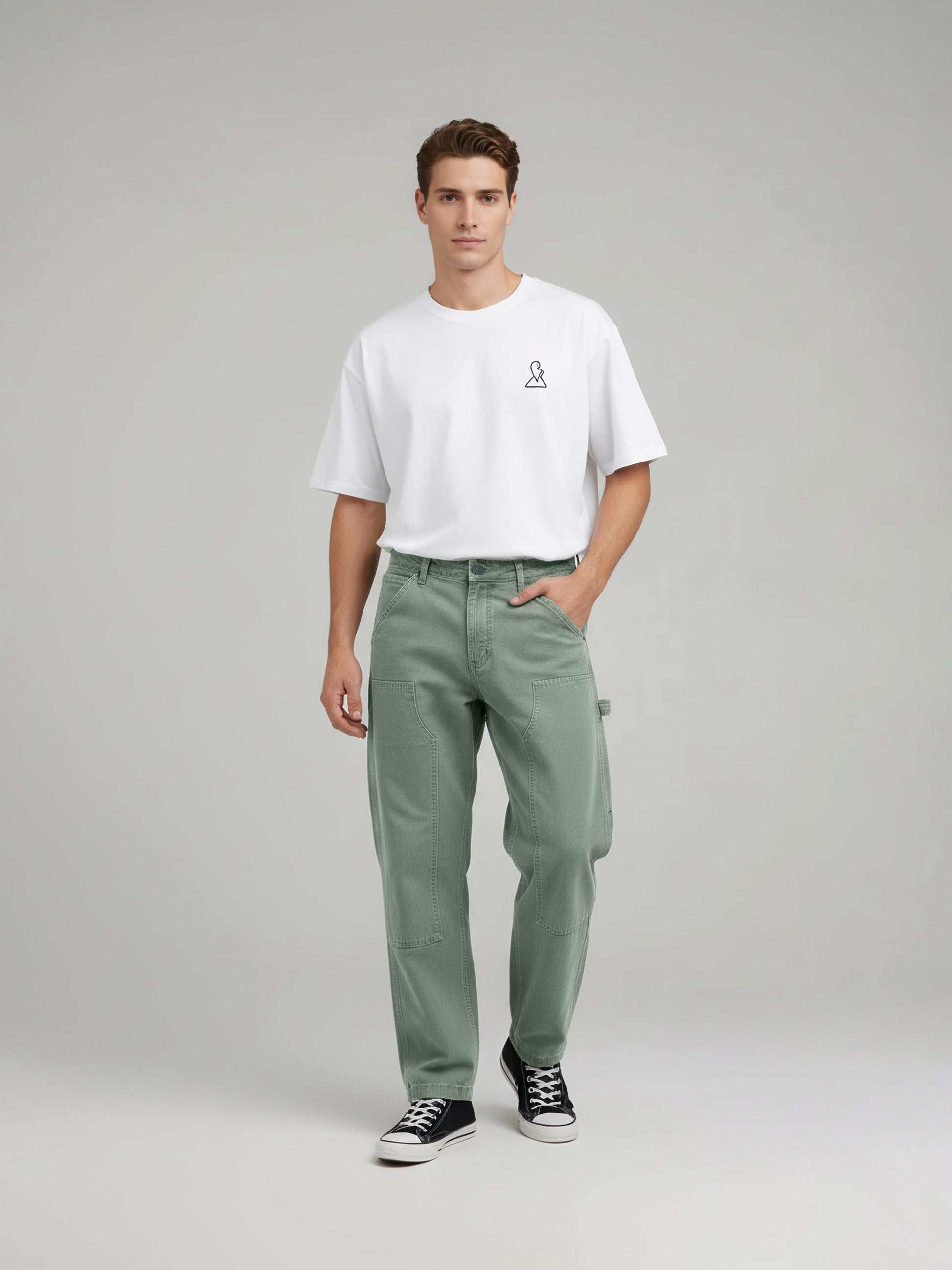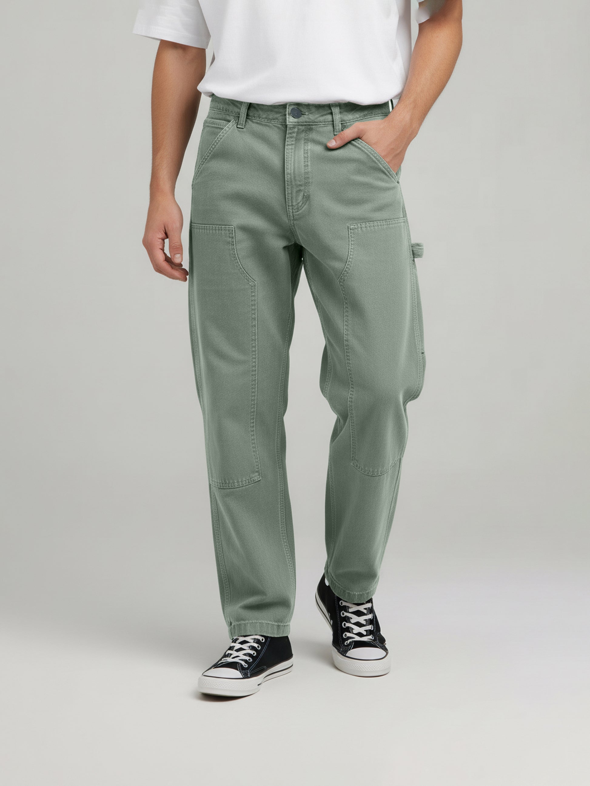Explore comfort and style with Celio's Olive Cotton Cargo Trousers for men. Perfect for casual occasions, these relaxed-fit trousers combine practicality with a trendy look. Disclaimer: All other items in the image are only for display purposes and will not be a part of the delivery content. Product colour may slightly vary due to photographic lighting sources. Country of Origin - India.