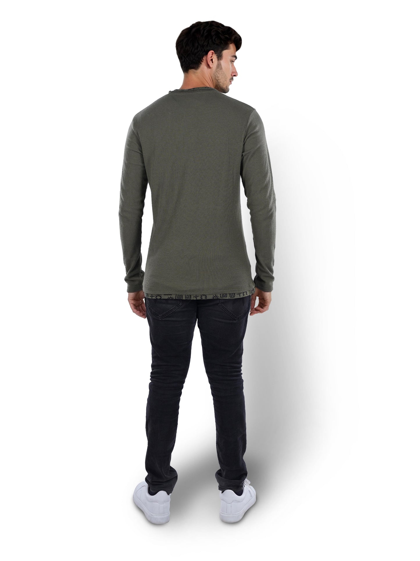 Elevate your casual wardrobe with the Celio Men's Olive Round Neck T-shirt. Made from soft cotton, it features long sleeves for comfort and a regular fit. Disclaimer: All other items in the image are only for display purposes and will not be a part of the delivery content. Product colour may slightly vary due to photographic lighting sources. Country of Origin - India.