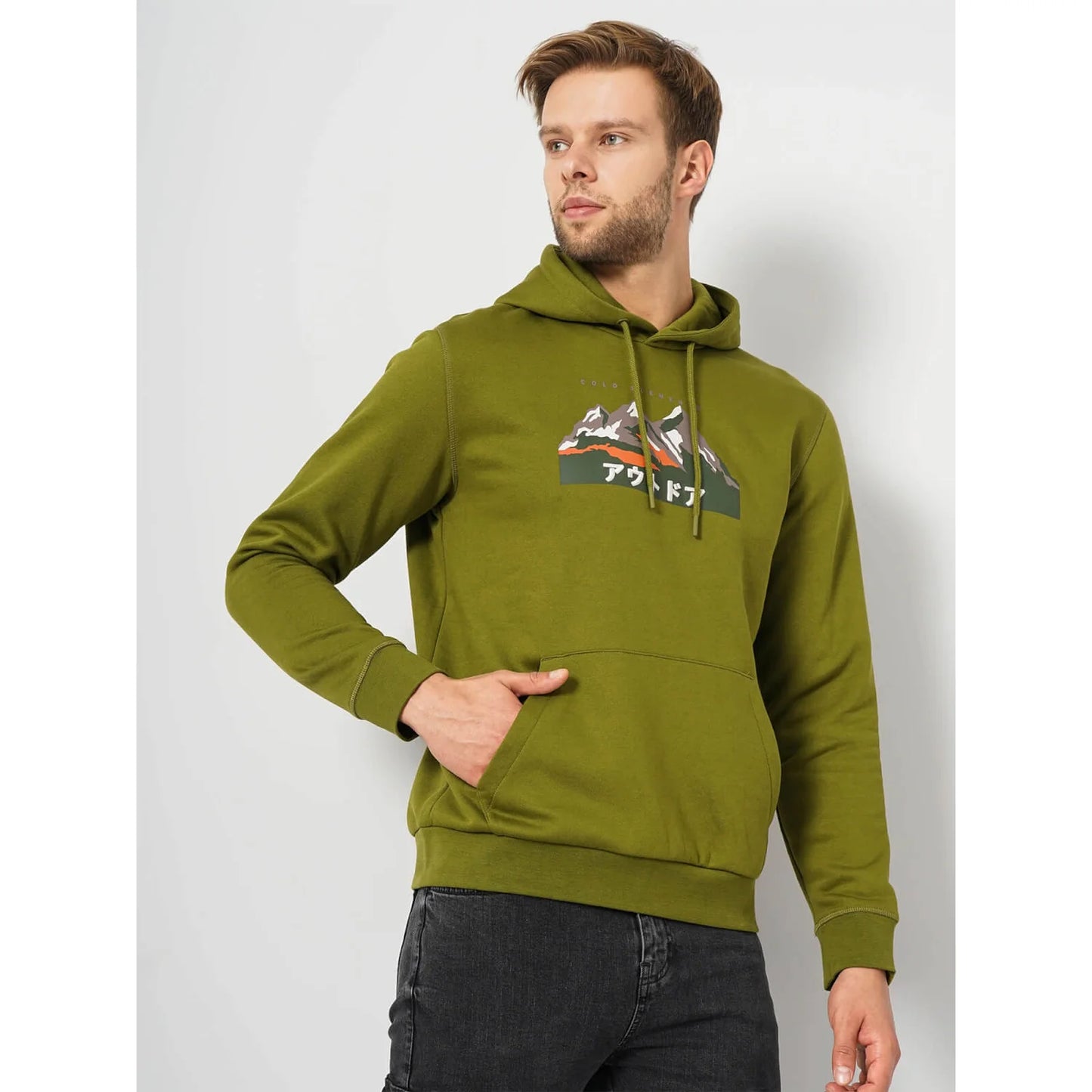 Celio* Graphics Regular Fit Cotton-Blend Olive Sweatshirt