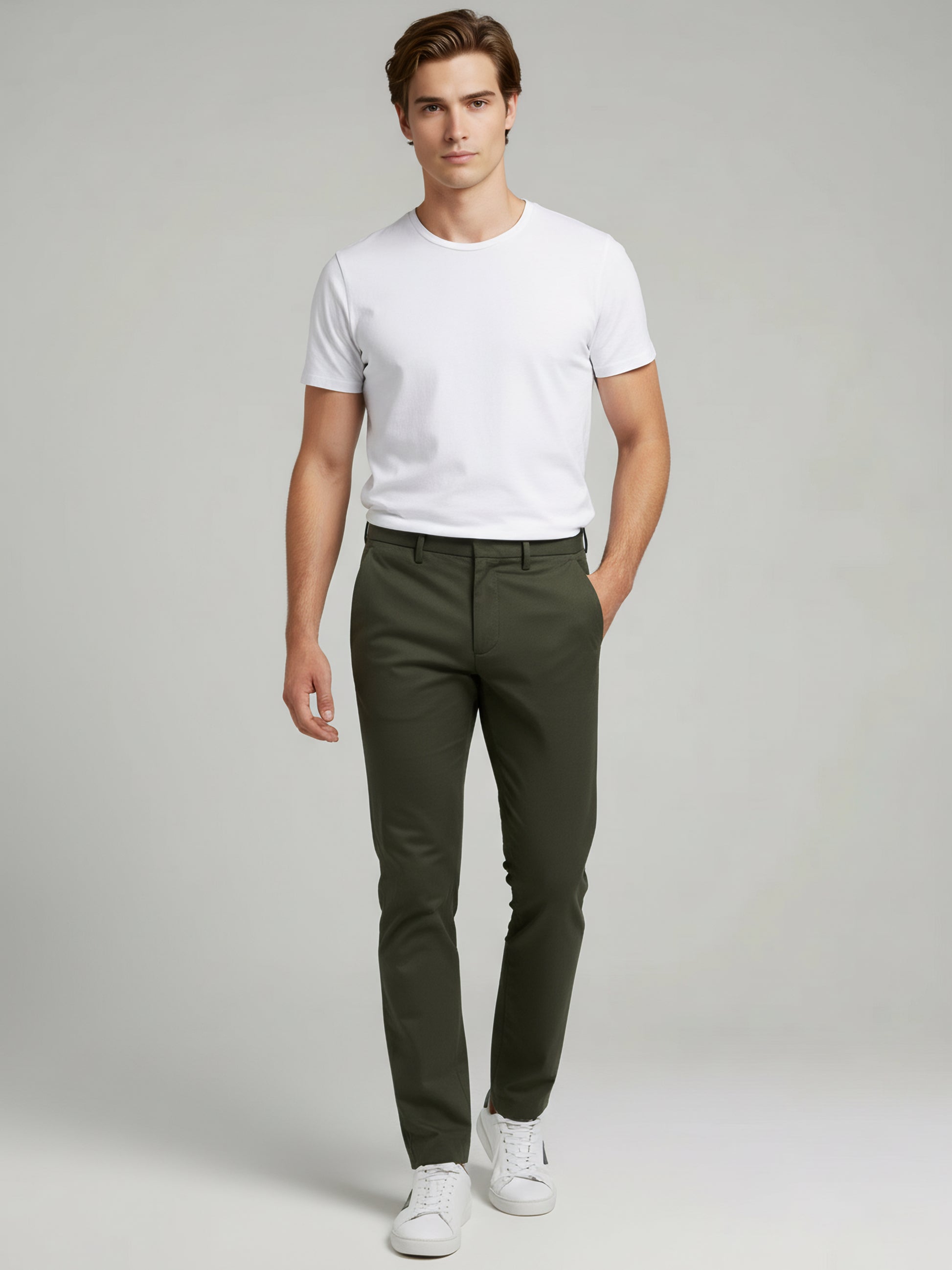 Discover Celio's olive solid formal trousers for men, crafted from durable polyester. Ideal for casual occasions, they offer a regular fit to keep you looking sharp and stylish. Disclaimer: All other items in the image are only for display purposes and will not be a part of the delivery content. Product colour may slightly vary due to photographic lighting sources. Country of Origin - India.