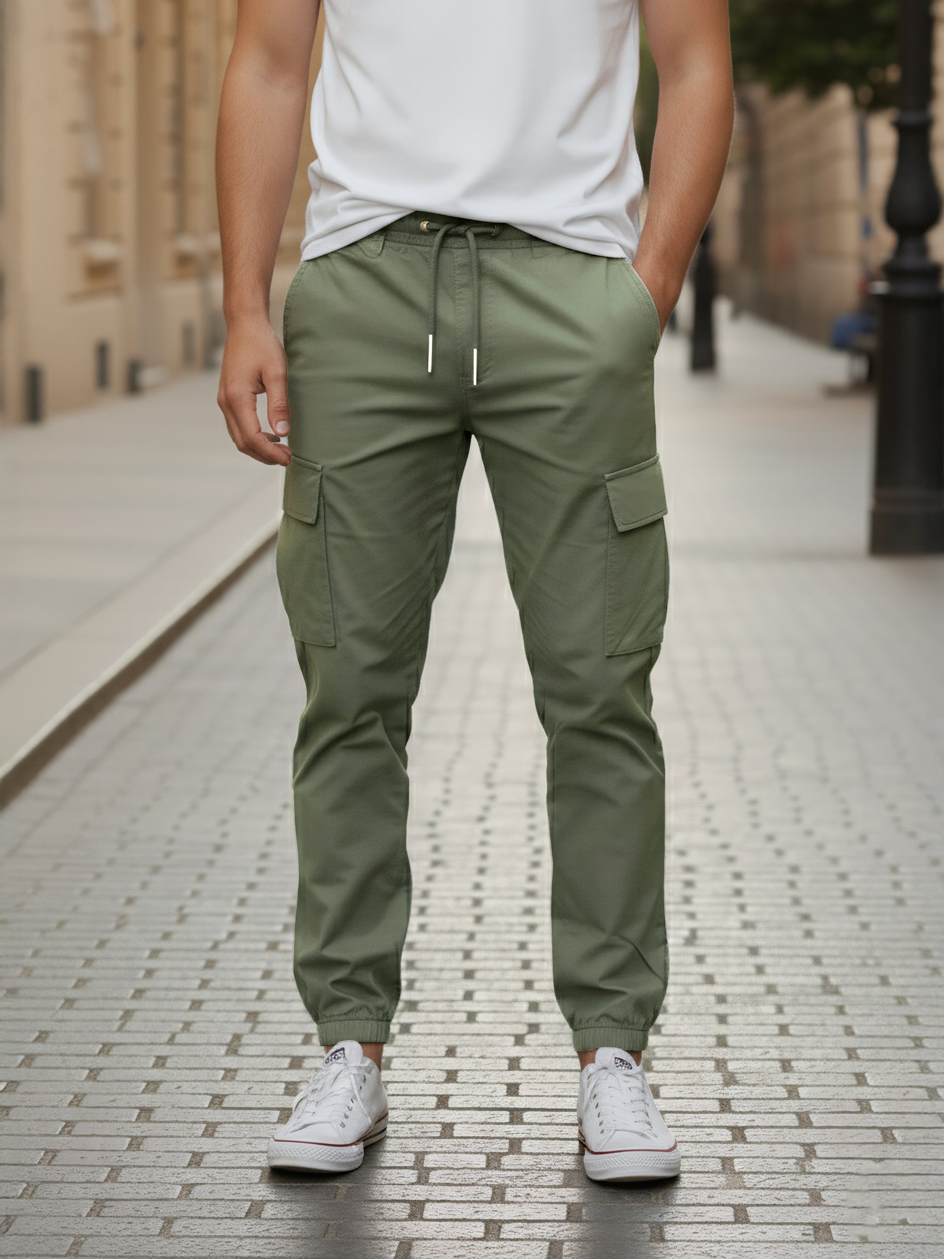 Stylish Celio Men Olive Solid Slim Fit Trousers crafted from comfortable polyester, ideal for casual occasions. Elevate your wardrobe with this chic and versatile fashion piece. Disclaimer: All other items in the image are only for display purposes and will not be a part of the delivery content. Product colour may slightly vary due to photographic lighting sources. Country of Origin - India.
