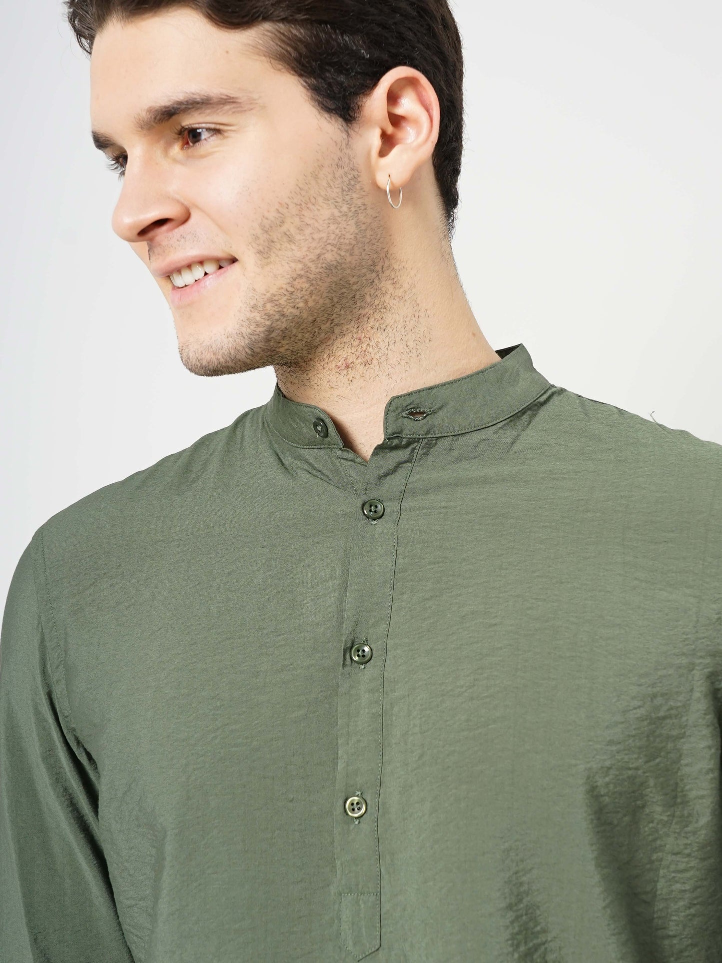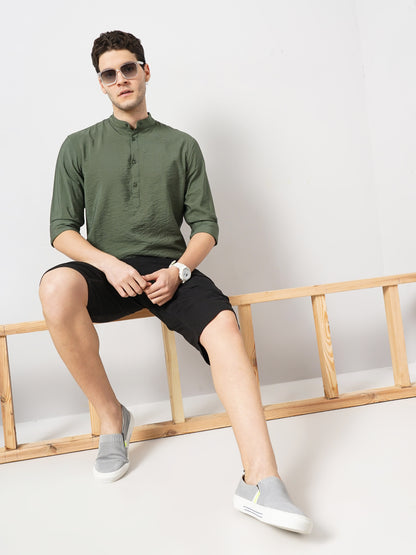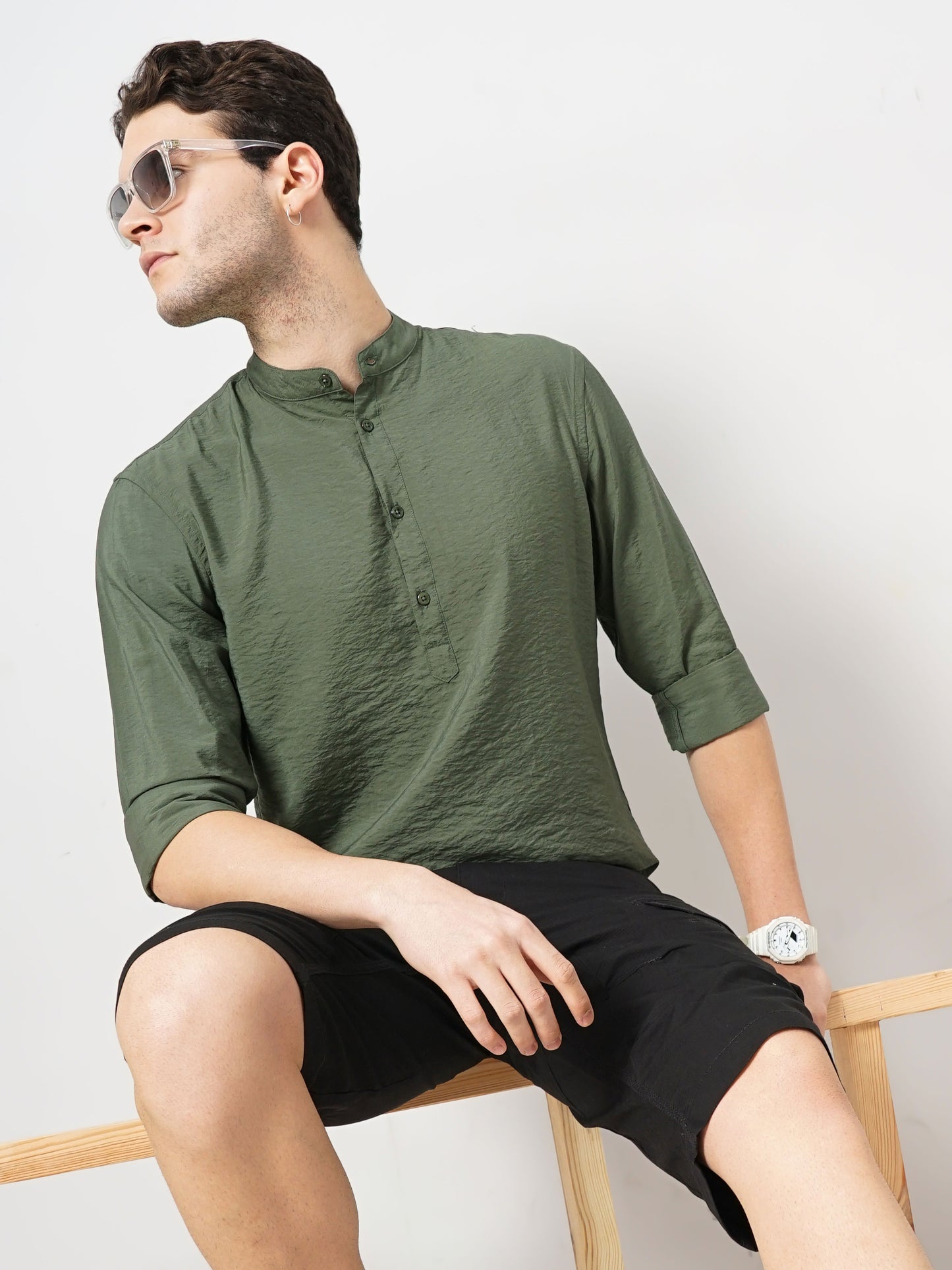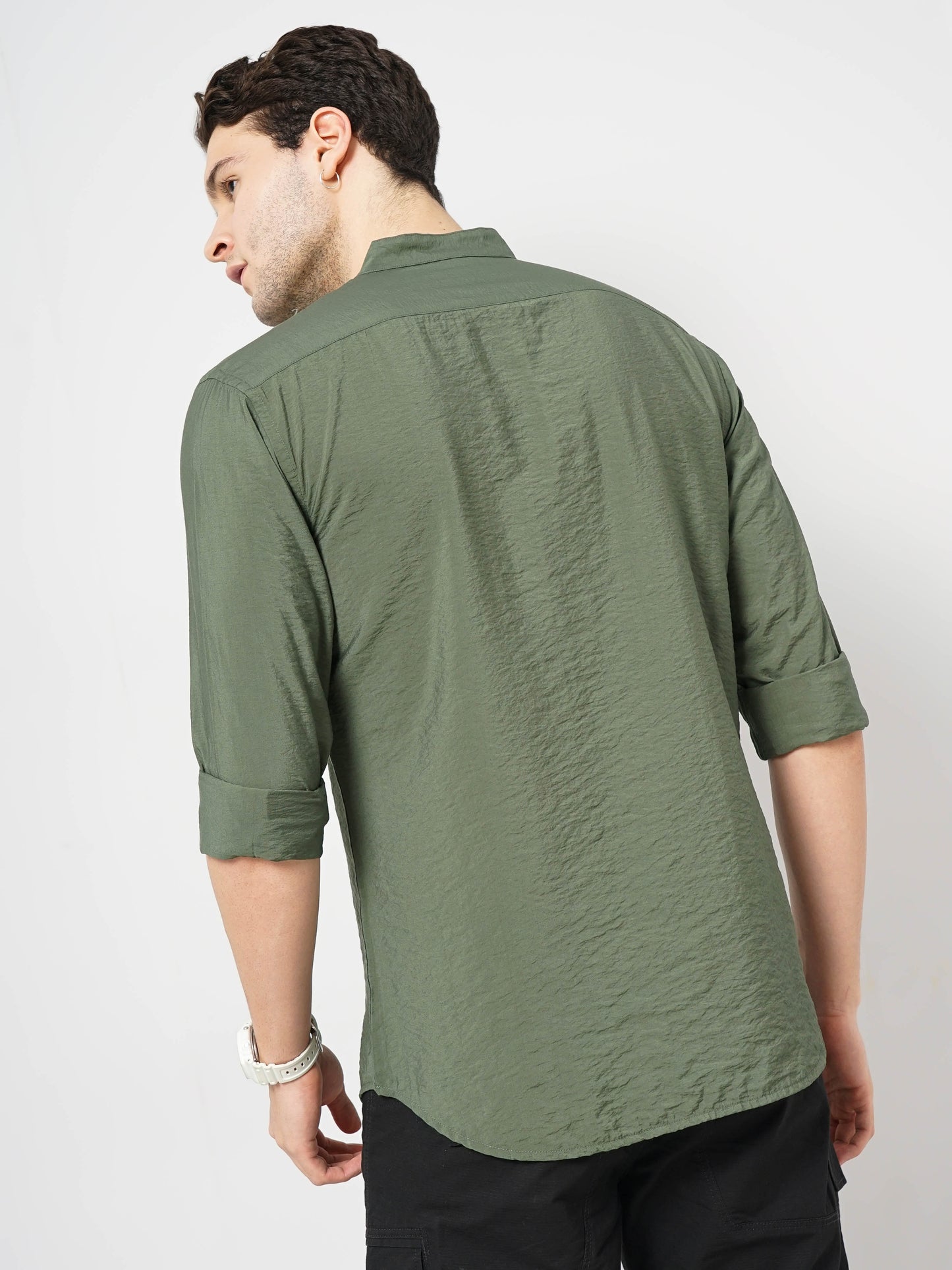 Celio* Solid Regular Fit Viscose Olive Shirt