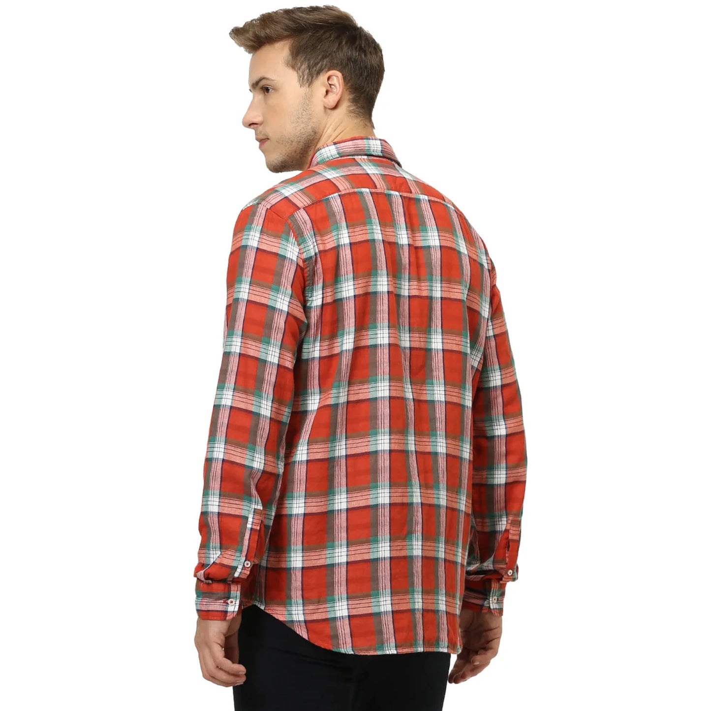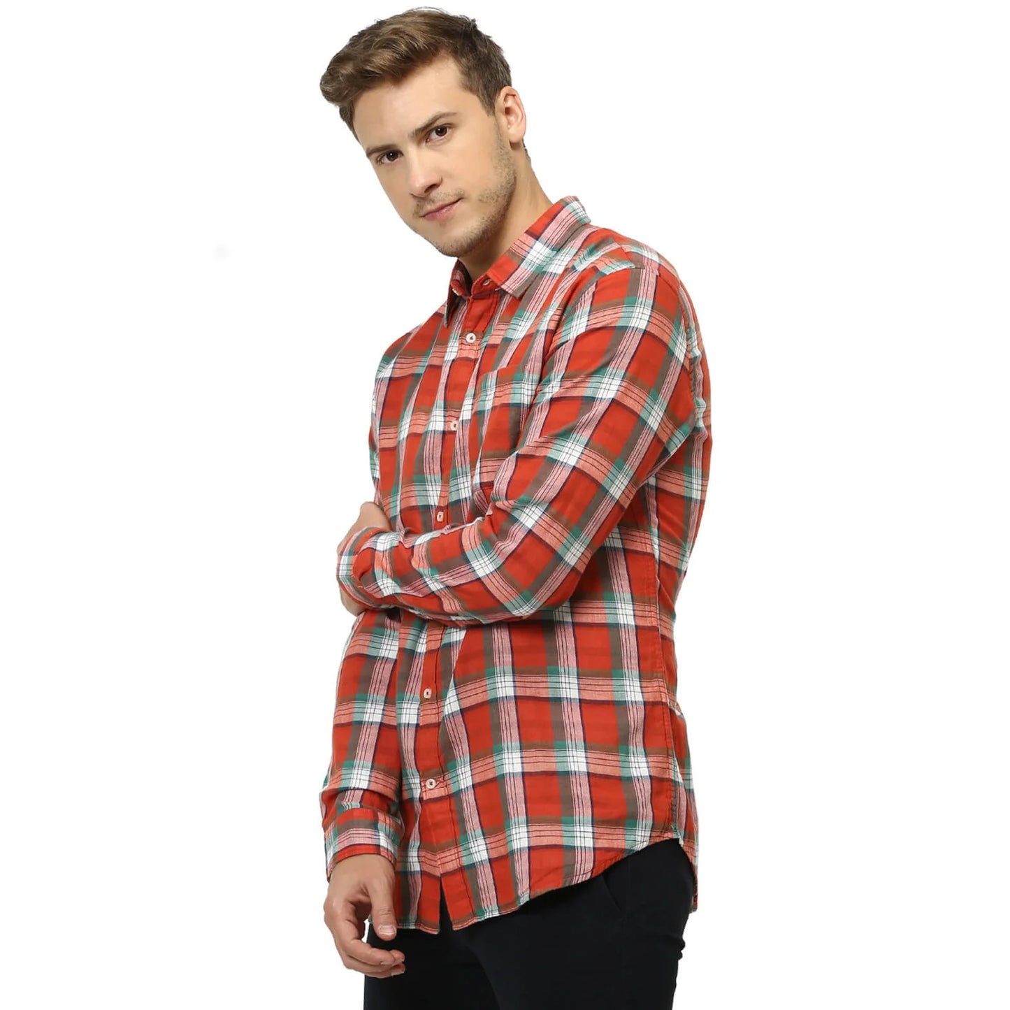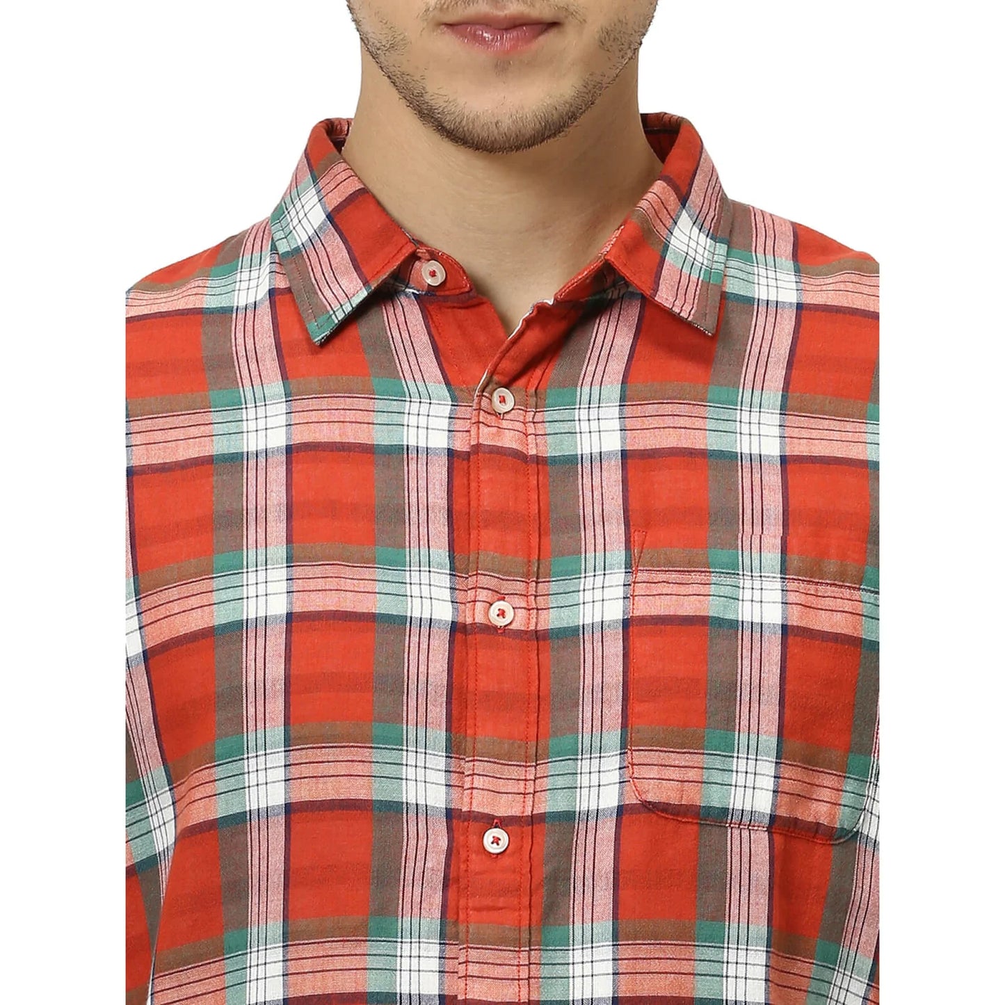 Celio* Checked Regular Fit Cotton Orange Shirt