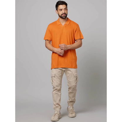 Elevate your casual style with the Celio Men's Orange Linen Polo. Crafted from soft cotton, this half-sleeve polo is perfect for any laid-back occasion. Disclaimer: All other items in the image are only for display purposes and will not be a part of the delivery content. Product colour may slightly vary due to photographic lighting sources. Country of Origin - India.