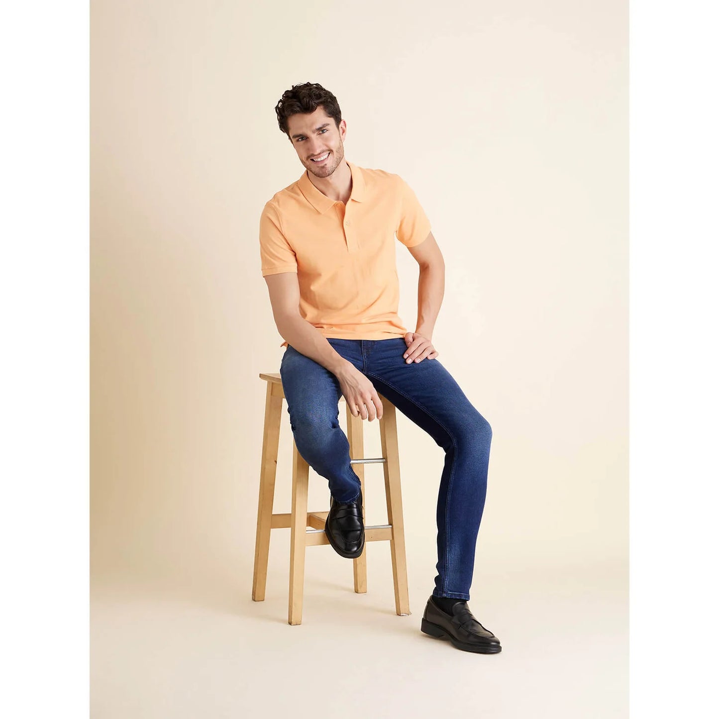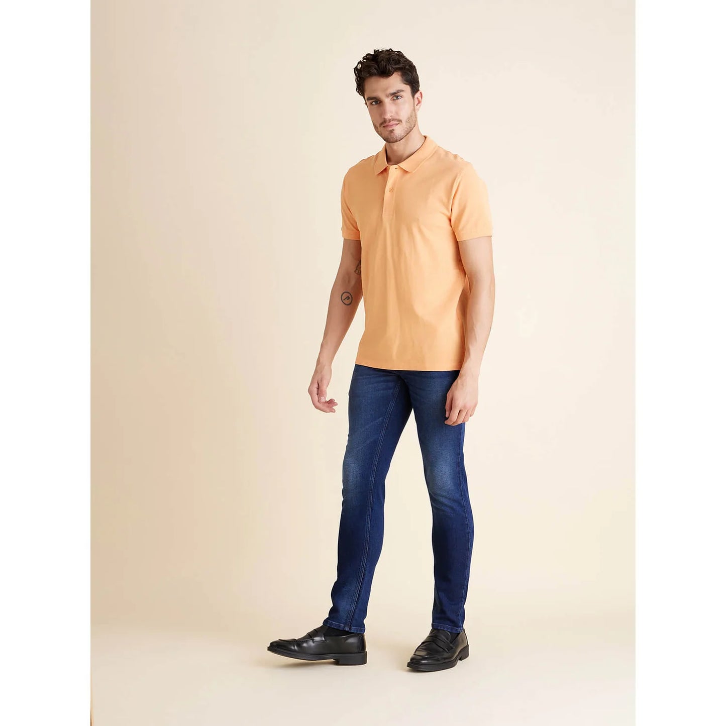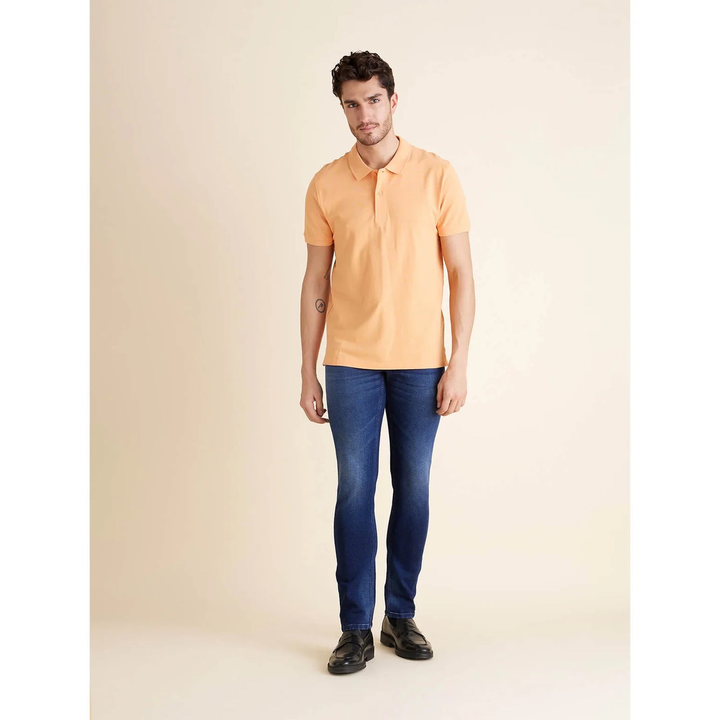 Stylish Celio men's polo in vibrant orange, made from comfortable cotton fabric. Perfect for casual occasions with its half sleeves, adding flair to your wardrobe. Disclaimer: All other items in the image are only for display purposes and will not be a part of the delivery content. Product colour may slightly vary due to photographic lighting sources. Country of Origin - India.
