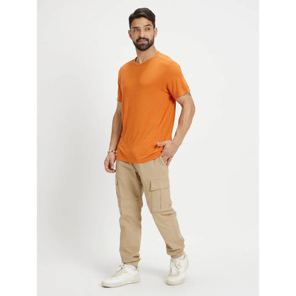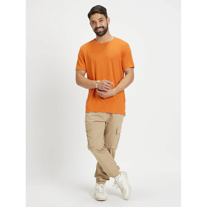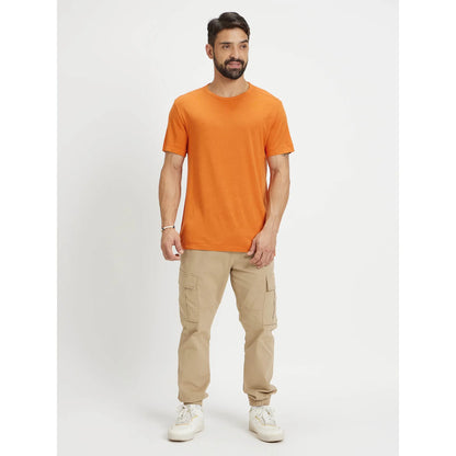 Celio* Solid Regular Fit Linen-Blend Orange T-Shirt