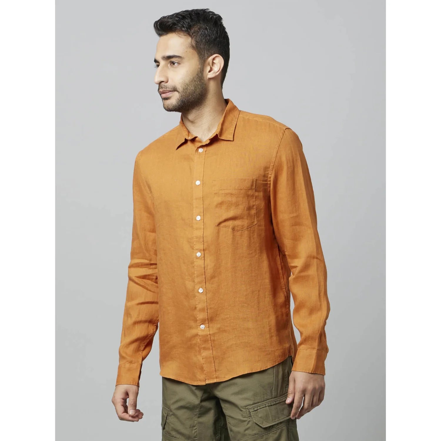 Elevate your casual wardrobe with the Celio Linen Solid Orange Long Sleeves Shirt. Made from soft linen, this stylish shirt is perfect for men seeking comfort and style. Disclaimer: All other items in the image are only for display purposes and will not be a part of the delivery content. Product colour may slightly vary due to photographic lighting sources. Country of Origin - India.